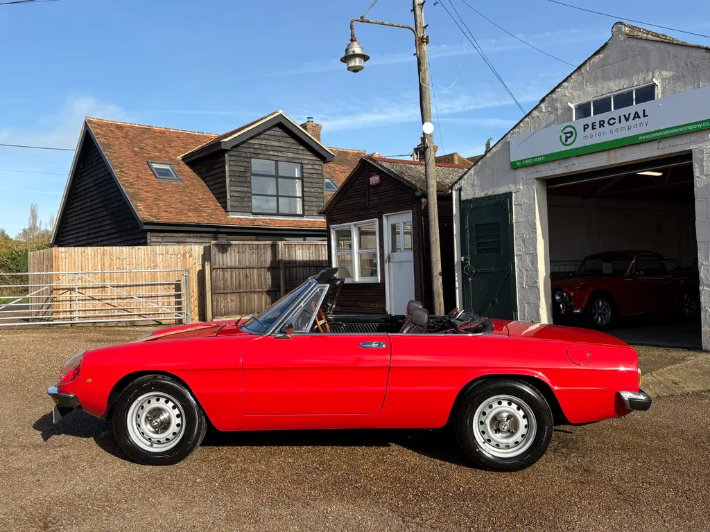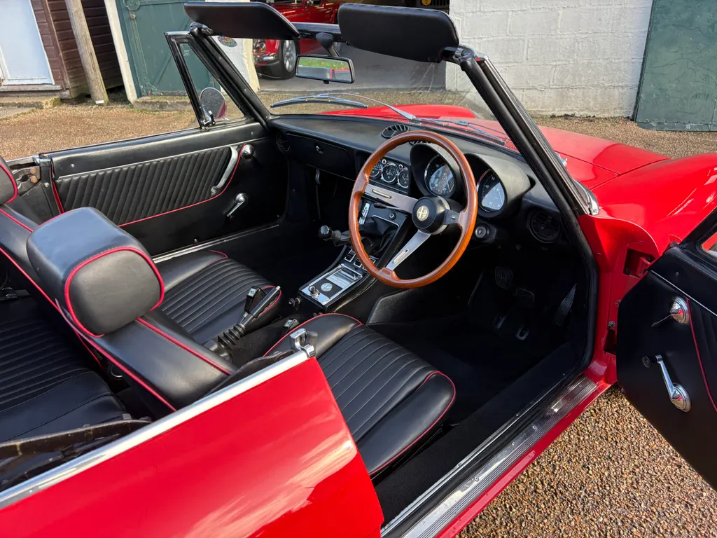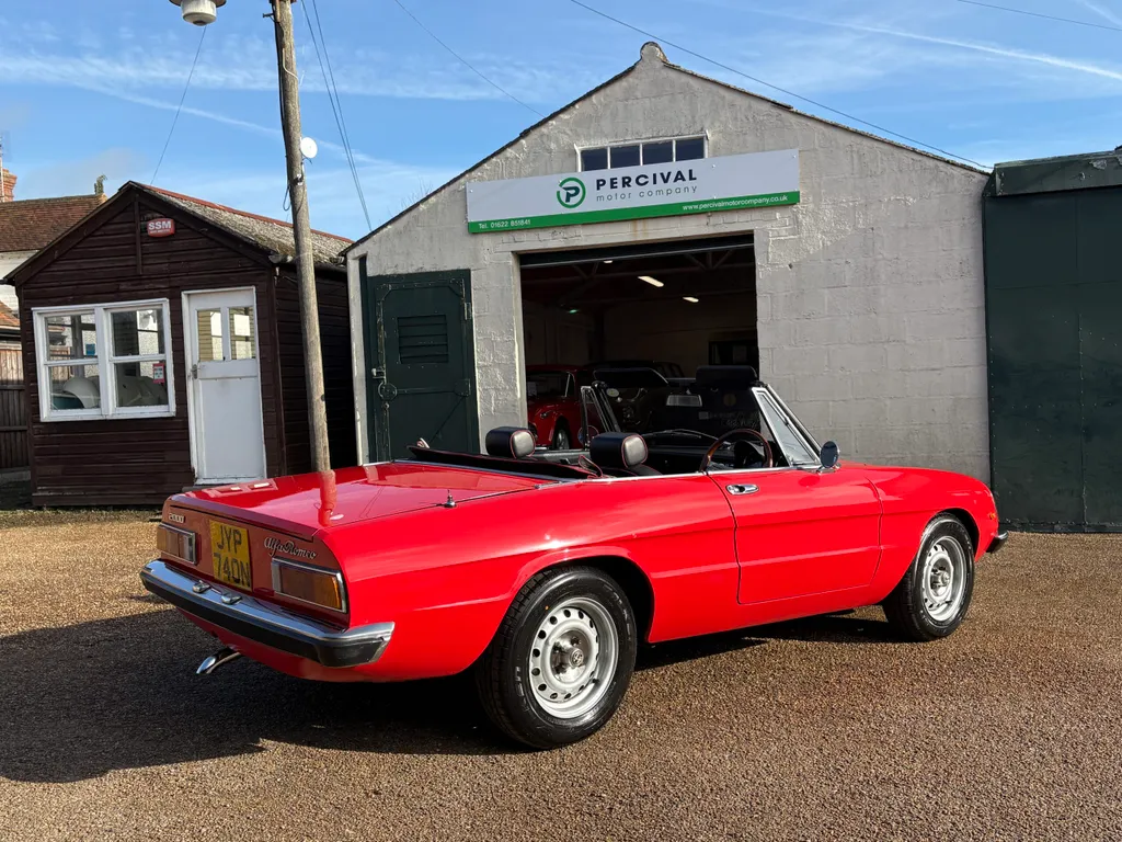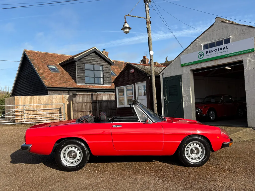 In red with a black interior. A pretty righthand drive, Kamm tail 2,000 Alfa Spider that comes to us from a long time customer. The Alfa was restored a good time ago and remains in very good, rustfree condition. The bodywork is excellent with very good panel gaps and clean straight panels. The paintwork is smooth and even but does have to odd touch-in. Underneath is smart and shows no signs of deterioration. Inside, the seats are unworn and the carpets virtually unmarked, and the dashboard is unmarked. This is one of the more powerful Spiders that we've driven. The engine is strong and very willing and definitely pulls better than most. It was completely rebuilt by Benalfa a long time ago and appears very healthy. The Alfa has had last a thorough re-commission by a specialist which included a new radiator, new brake calipers all round, new brake servos, and various bushes, seals and gaiters have been changed. The water pump has been replaced and there are new tyres all round. This is a really smart, straight Alfa Spider which drives very well and can be enjoyed without being too precious. Percival Motor Company can recommend transport companies and finance providers.