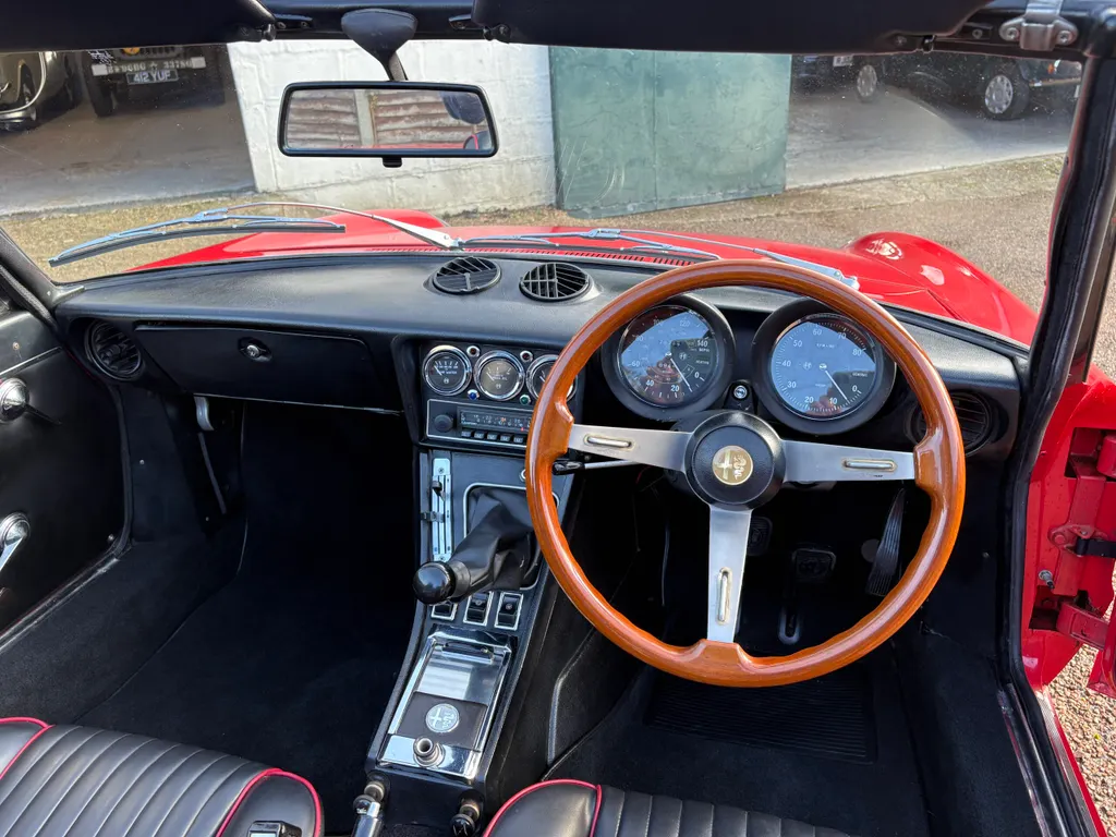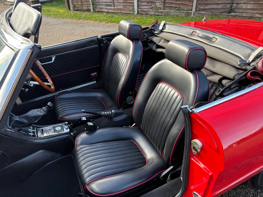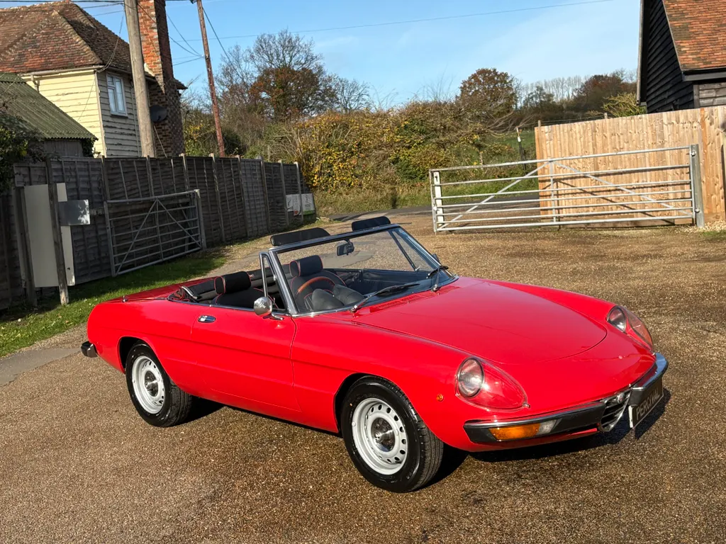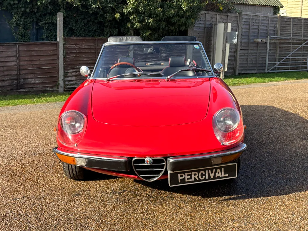 In red with a black interior. A pretty righthand drive, Kamm tail 2,000 Alfa Spider that comes to us from a long time customer. The Alfa was restored a good time ago and remains in very good, rustfree condition. The bodywork is excellent with very good panel gaps and clean straight panels. The paintwork is smooth and even but does have to odd touch-in. Underneath is smart and shows no signs of deterioration. Inside, the seats are unworn and the carpets virtually unmarked, and the dashboard is unmarked. This is one of the more powerful Spiders that we've driven. The engine is strong and very willing and definitely pulls better than most. It was completely rebuilt by Benalfa a long time ago and appears very healthy. The Alfa has had last a thorough re-commission by a specialist which included a new radiator, new brake calipers all round, new brake servos, and various bushes, seals and gaiters have been changed. The water pump has been replaced and there are new tyres all round. This is a really smart, straight Alfa Spider which drives very well and can be enjoyed without being too precious. Percival Motor Company can recommend transport companies and finance providers.