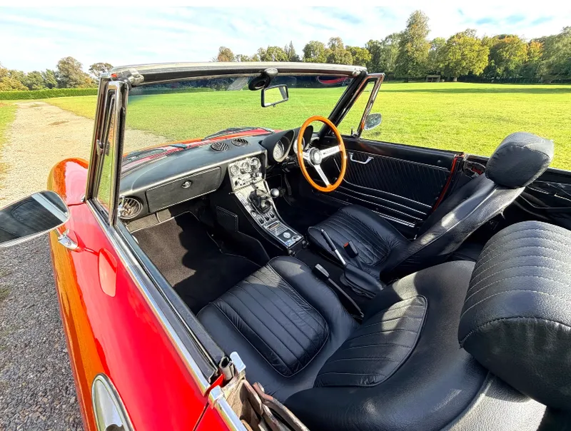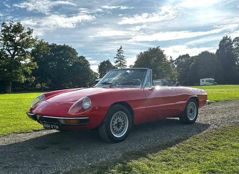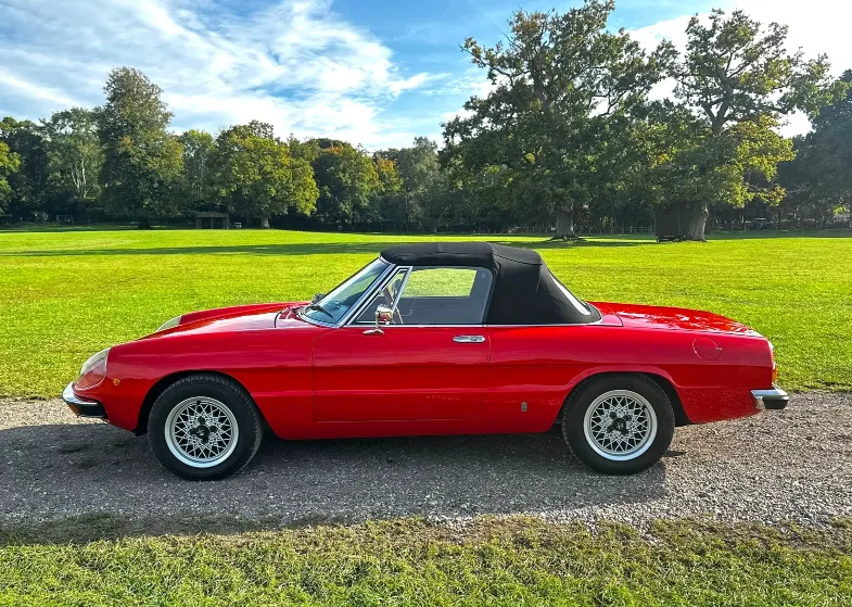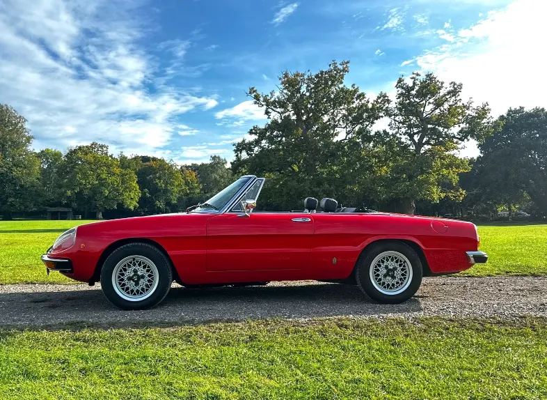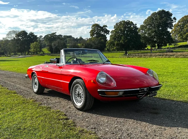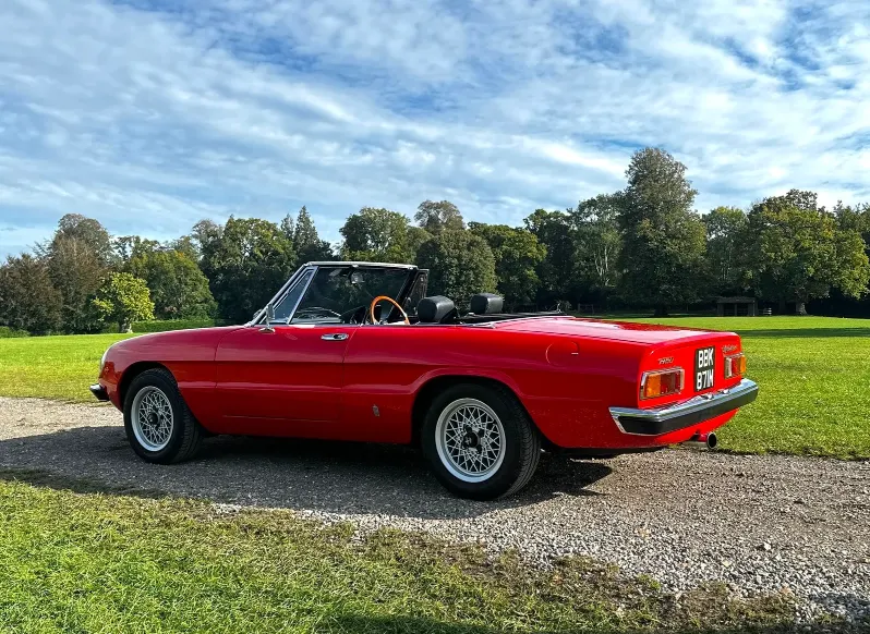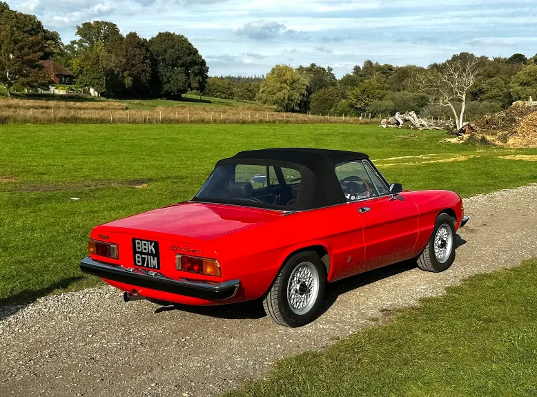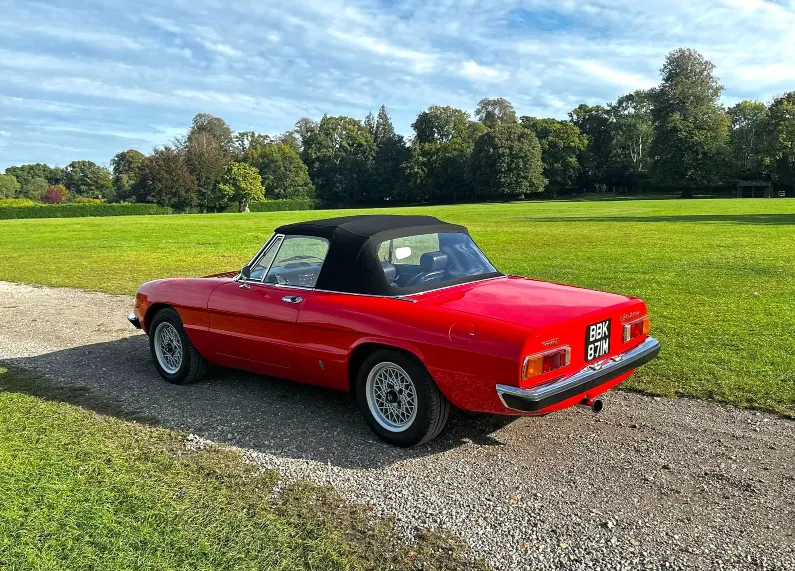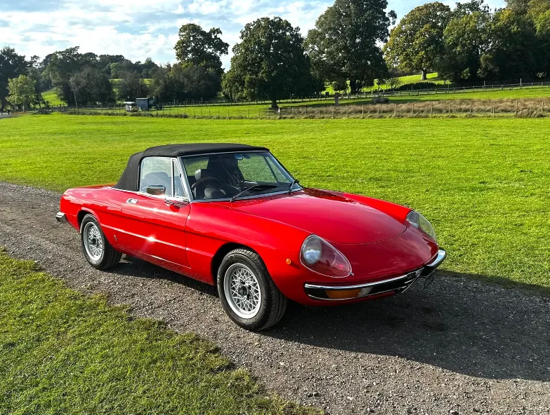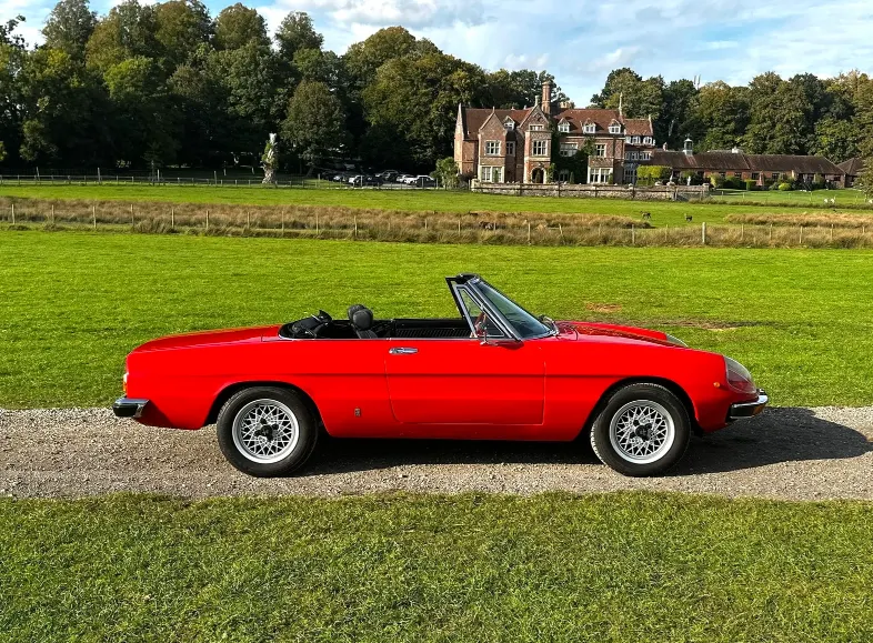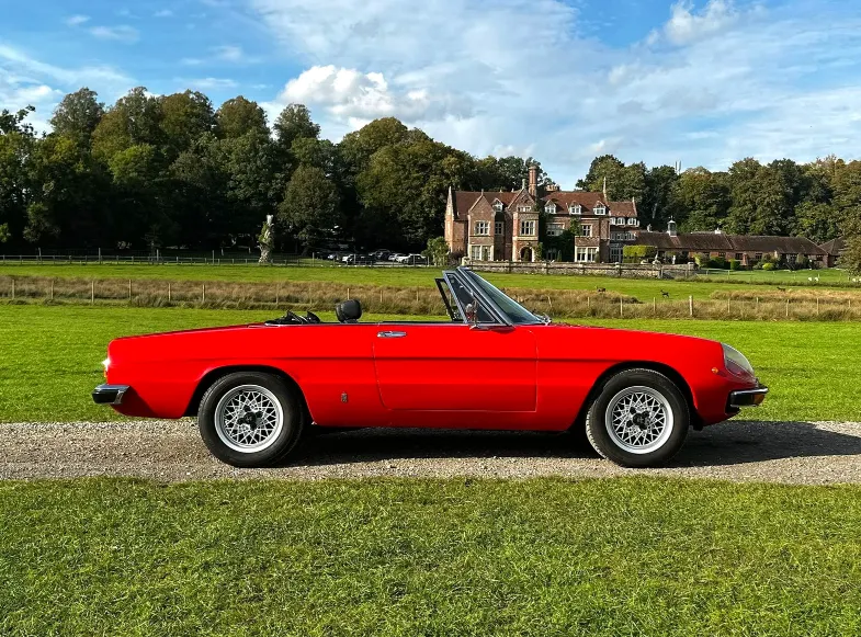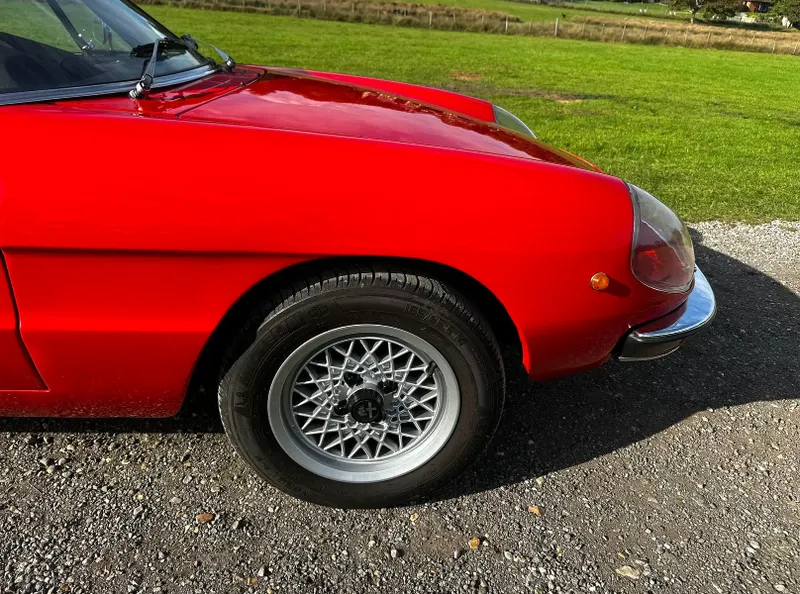 A true Italian classic — this 1971 Alfa Romeo 1750 Spider features the desirable Kamm tail design and has been registered later in its life. Finished in red with a black interior, it boasts a period-correct wooden steering wheel that looks stunning. This Alfa is in lovely condition throughout. The 1750cc engine pulls lovely and the manual gearbox is smooth. Some of the features include a new Softtop roof, Tuned Weber Carburettor, Carello Headlamp lenses, Spare Keys and more. A new clutch has been fitted. The history file is made up of previous invoices, current V5, receipts etc. This is a very rare car, making it the perfect example for any collector or enthusiast. It is a joy to drive and turns heads wherever it goes. For further information or to arrange a viewing, contact our sales department on 01425489575 or Sales@classicconnection.co.uk. £21,995 any inspection welcome and delivery available.
