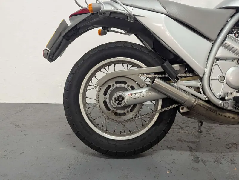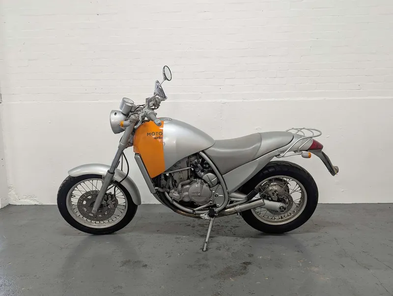 650cc. This smart looking Aprilia 650 Moto has formed part of the vendor's private collection since 2022. At the time of purchase three years ago, it was subject to the carb being ultrasonically cleaned and the vendor advises that it started first time. A previous owner had the forks ground and re-plated. It is fitted with the rare factory rack. Comes with a history file including 2022 bill of purchase, original sales brochure, MoTs, articles, factory manuals, CD and spare keys. The original tool-kit is also included. Seven owners from new. The odometer records 11,356 miles Not specified