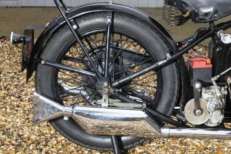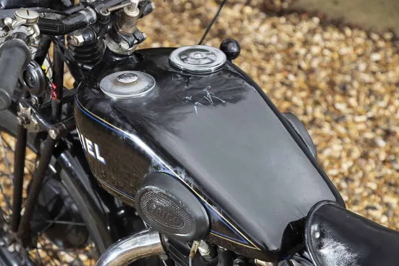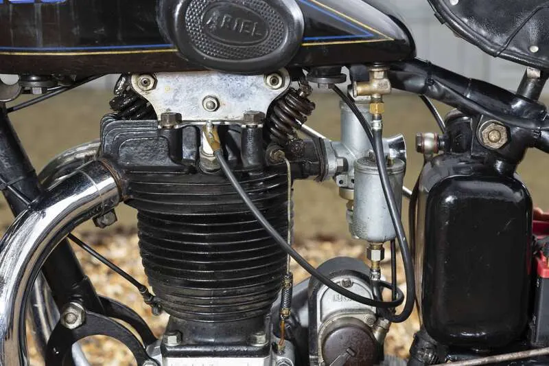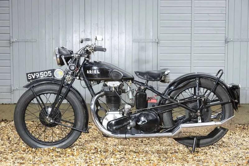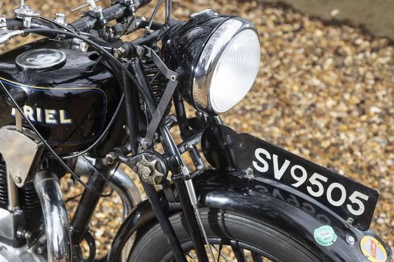 This lot will be auctioned via Iconic Auctioneers, The Iconic Sale at Race Retro 2026 - Motorcycles on Sunday the 22nd of February, Stoneleigh Park, Stoneleigh Rd, Coventry, CV8 2LG. In the late 1920s Ariel was overflowing with expertise, with the likes of Edward Turner and Bert Hopwood on their design team, however, it was Chief Designer, Val Page, who came up with the design for the OHV 500cc in 1926 and the legendary 'Black Ariels' were born The Model E was a 497cc, OHV single with a twin-port head and was the sporting machine in the Ariel line-up This bike has been well looked after by its engineer owner who has kept it in good running condition but now finds it a little heavy The bike benefits from recent wheel refurbishment and new lights and has a new twin-port exhaust system fitted Supplied with a good folder of paperwork, its current V5C (correctly classed as Historic), an MOT valid until May 2026 (even though it's exempt), a Dating Certificate and old invoices .