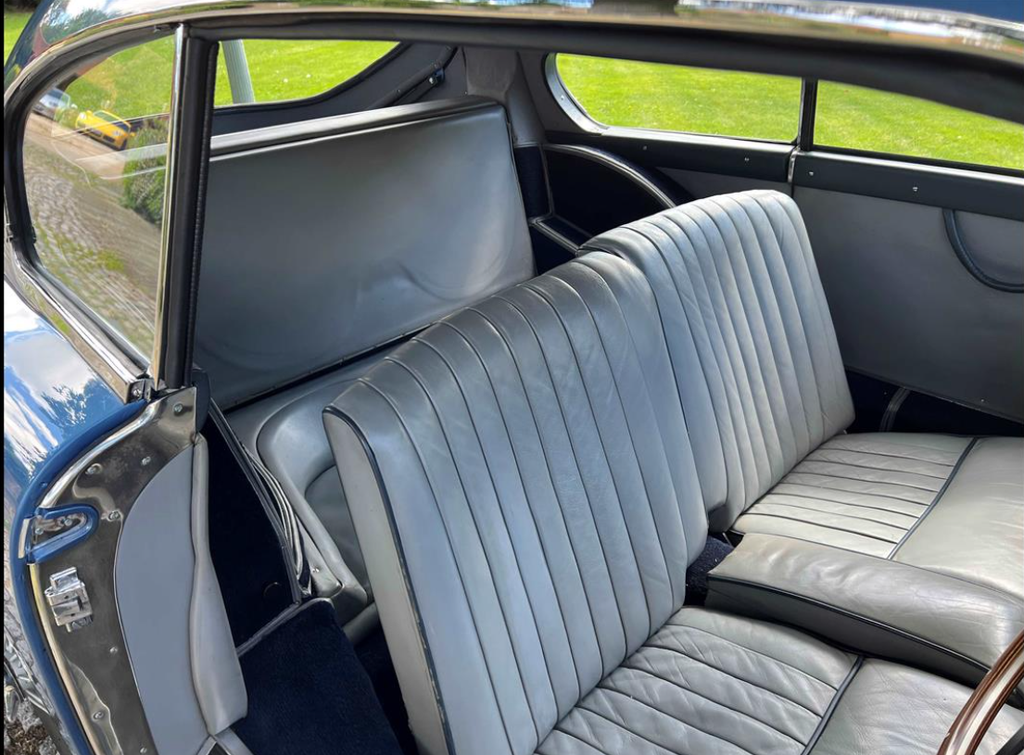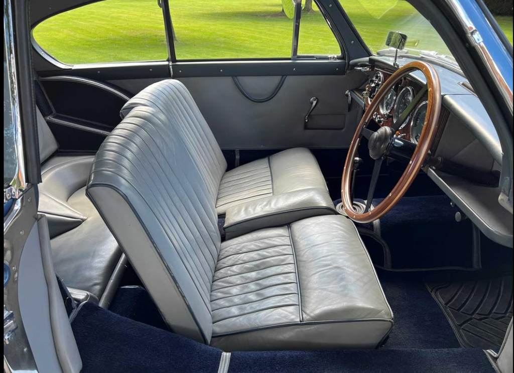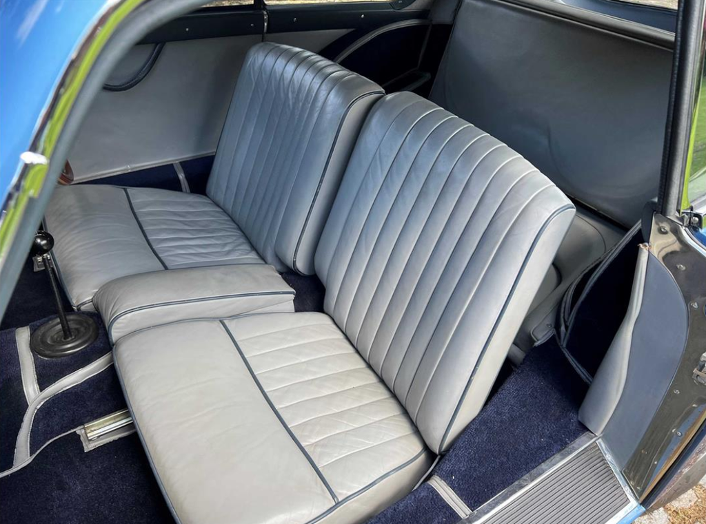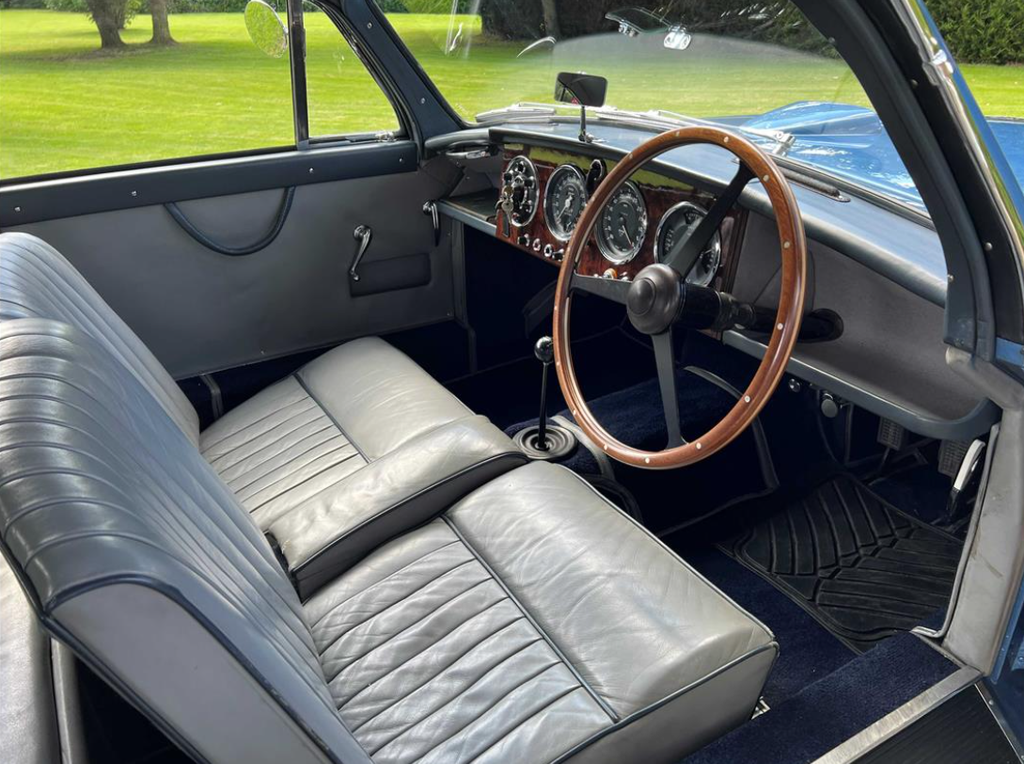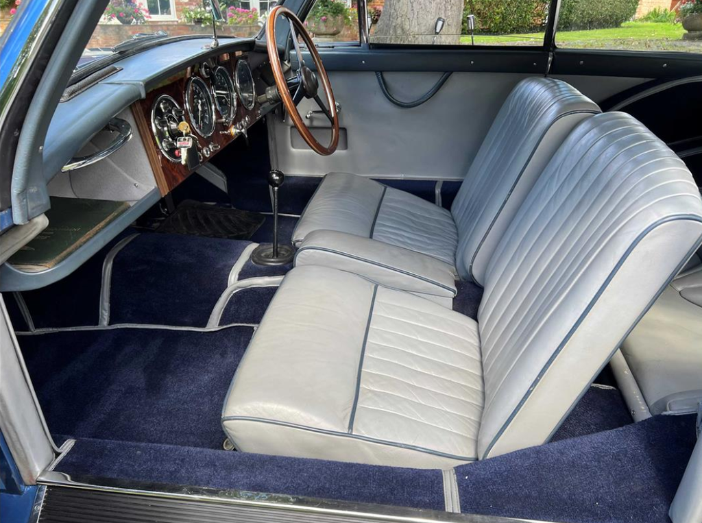 1955 Aston Martin DB2/4 finished in original Blue Haze with an exceptionally good interior, in pale grey hide with a recently re-veneered Walnut dash panel and best quality, dark blue Wilton carpet throughout, edged in blue leather and recently re-trimmed. It is one of the last of the original DB2/4’s to be produced, prior to the MkII arriving in late 1956 and hence has the benefit of the larger 2.9 engine which was then carried over to the MkII. Chassis No LML-881 comes with its original engine No VB6J-353 which according to the file was the subject of a complete rebuild as part of a £120,000 restoration carried out by “The Aston Workshop” prior to being sold to the last owner. Within the accompanying history file, are a good number of recent invoices amounting to over £18,000 on upgrades during the last 3 years. The car has had only 6 owners in 68 years and presents in superb condition and is a pleasure to drive.