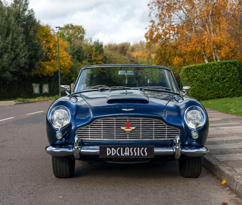 Beautiful Deep Metallic Sierra Blue Factory 5-Speed Gearbox An extremely well cared for example Maintained for last 25 years by R.S Williams One of only 84 such cars built A superb Great British Grand Tourer Few cars capture the grace and confidence of 1960s Britain quite like the Aston Martin DB5 Convertible. Elegant, understated and wonderfully proportioned, it was the car that cemented Aston Martin’s reputation as a maker of truly world-class grand tourers. For many, it remains the perfect blend of beauty, craftsmanship and performance. Chassis DB5C/1298/R is one of only 84 right-hand-drive convertibles produced, making it a very special example of an already rare model. Finished in Deep Metallic Sierra Blue, the colour shows off the Touring-designed aluminium bodywork beautifully, giving the car a calm, confident presence without being ostentatious. Inside, the Grey Connolly leather has softened attractively with age, providing the right balance between originality and comfort, the sort of interior you’d happily spend a day in. This DB5 has led a careful and well-documented life. It has been looked after by R.S. Williams for the last 25 years, during which time it received a comprehensive mechanical rebuild in the mid-1990s. Engine, gearbox, suspension, axle and braking systems were all restored to proper Aston Martin standards, and the car has seen only light use since. It starts easily, pulls cleanly and feels exactly as it should: smooth, solid and full of character. The factory 5-speed gearbox makes this car particularly enjoyable on the open road, transforming it from a showpiece into a genuinely capable tourer. The driving experience is everything you’d hope for, relaxed when you want it to be, yet with enough power and response to remind you why the DB5 became such a legend. Presented today in beautiful order, DB5C/1298/R strikes the perfect balance between preservation and presentation. The paintwork retains its depth and lustre, the chrome is bright and every detail speaks of long-term, conscientious ownership. For collectors who appreciate authenticity, provenance and proper maintenance history, this is a DB5 Convertible that stands out for all the right reasons. A car to drive, to enjoy and to be proud of, a superb Great British Grand Tourer ready for the next chapter of its life. Now available for viewing at the DD Classics Dealership in London, please call 0208 878 33 55 to book an appointment. Every effort has been made to ensure the accuracy of the above information but errors may occur. Please check with a salesperson.
