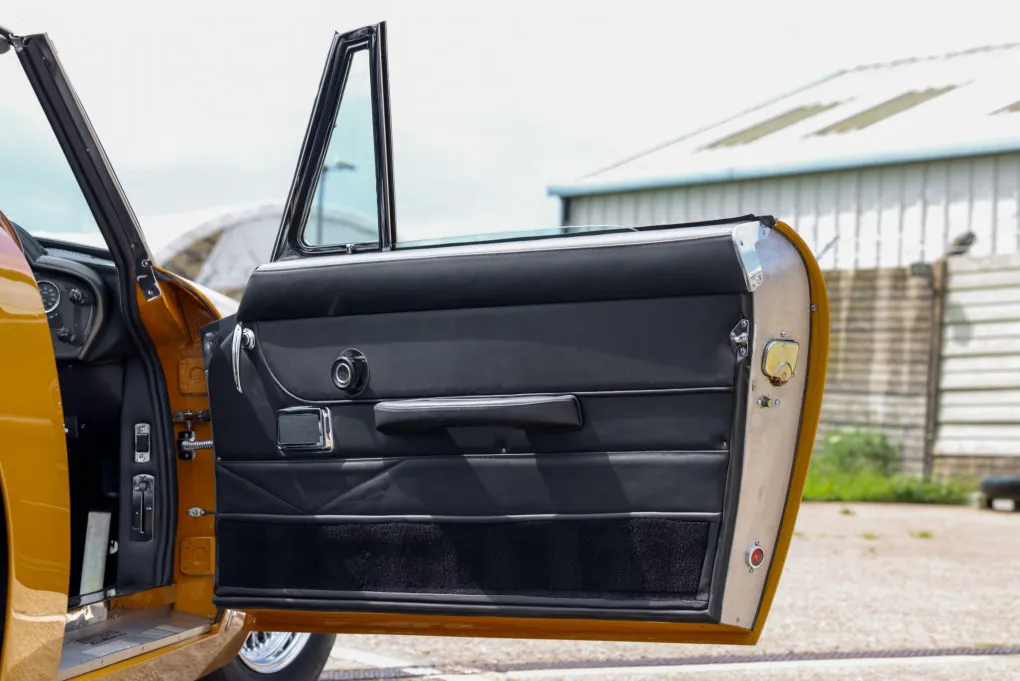 In 2016, the car was acquired by Roger Bennington of Stratton Motor Company, who undertook a meticulous and exhaustive body-off restoration. Originally dressed in Dubonnet Red with a Natural leather interior, the car now dazzles with its period-correct Bahama Yellow coachwork, famously featured in the TV series The Persuaders, complemented by a luxurious new black leather interior and hood.