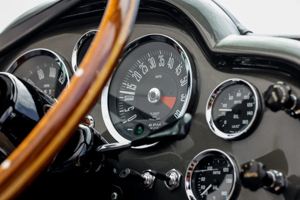 This particular car, WMF38G, is among the final DB6 Mk1 Volantes produced before the launch of the MkII. Sold new in 1969 by H.R. Owen in London, it initially belonged to a Greek businessman before being relocated to Greece in 1972. It returned to the UK in 1979, joining the private collection of a Suffolk entrepreneur who ensured its preservation in a heated garage.