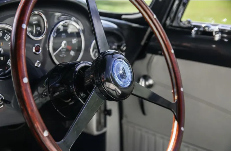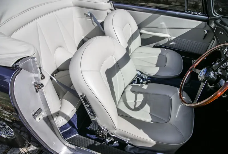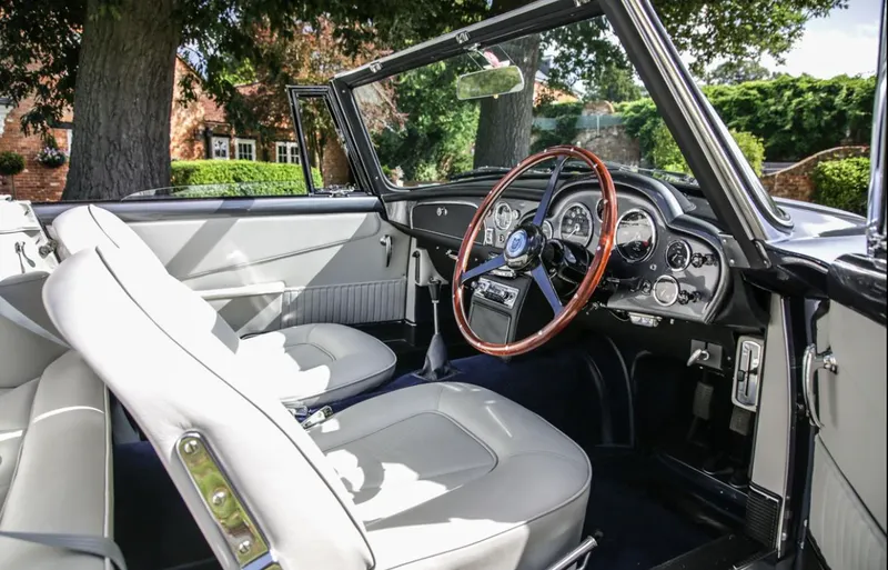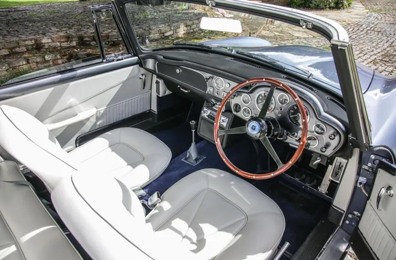1967 Aston Martin DB6 completely restored and re-modelled to concours standard by Goldsmith & Young to closely resemble the specification of a short Chassis Volante, of which only 37 original car were built. The new bodywork was built by Bodylines in Olney using original bucks and is finished in Steel Blue with contrasting Portland Grey hide interior by Piper Trimming in Yeovil. The car is fitted with a dark blue mohair hood and best quality blue Boyriven carpet has been used throughout. All of the mechanical moving parts have either been replaced with new AM parts or rebuilt to the highest standard. This car has covered less than 500 miles since the rebuild so the engine which has been uprated to 4.2 is barely “Run-in”. The 5 speed ZF gearbox was completely rebuilt by BPA and the car is a delight to drive. The whole car is an outstanding example of exceptional craftsmanship by everyone involved in its reconstruction. An original Short Chassis Volante in this condition would today be priced at well over £750,000 and we are being very realistic with our price structure. Any inspection welcomed.