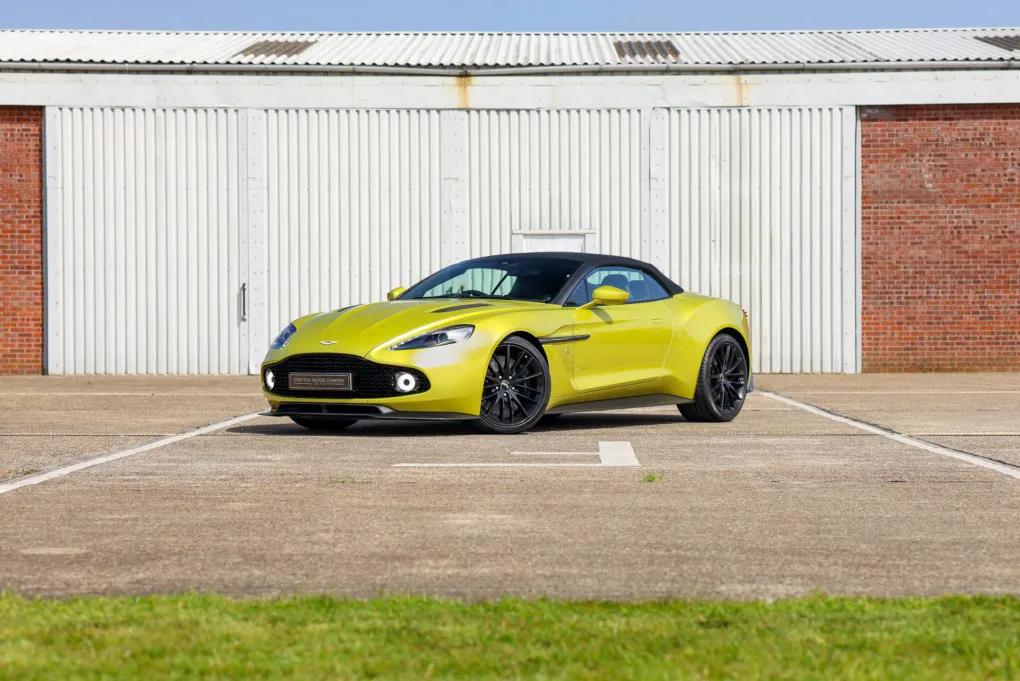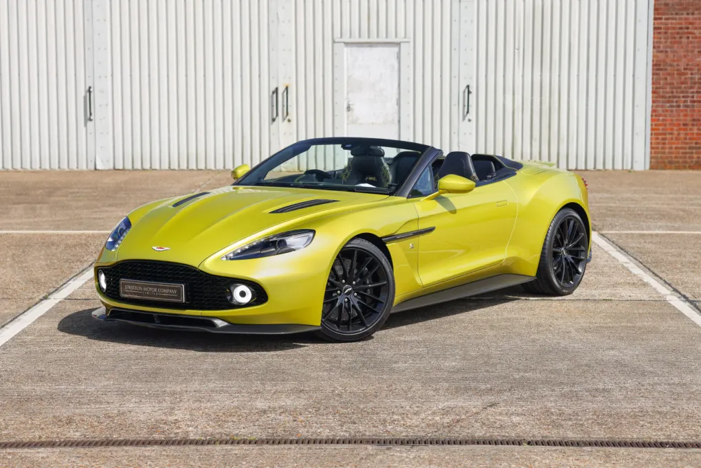 Stratton Motor Company is thrilled to present this extraordinary and exceptionally rare 2017 Aston Martin Vanquish Zagato Volante, showcasing ultra-low mileage and a breathtaking finish in Q Cosmopolitan Yellow.