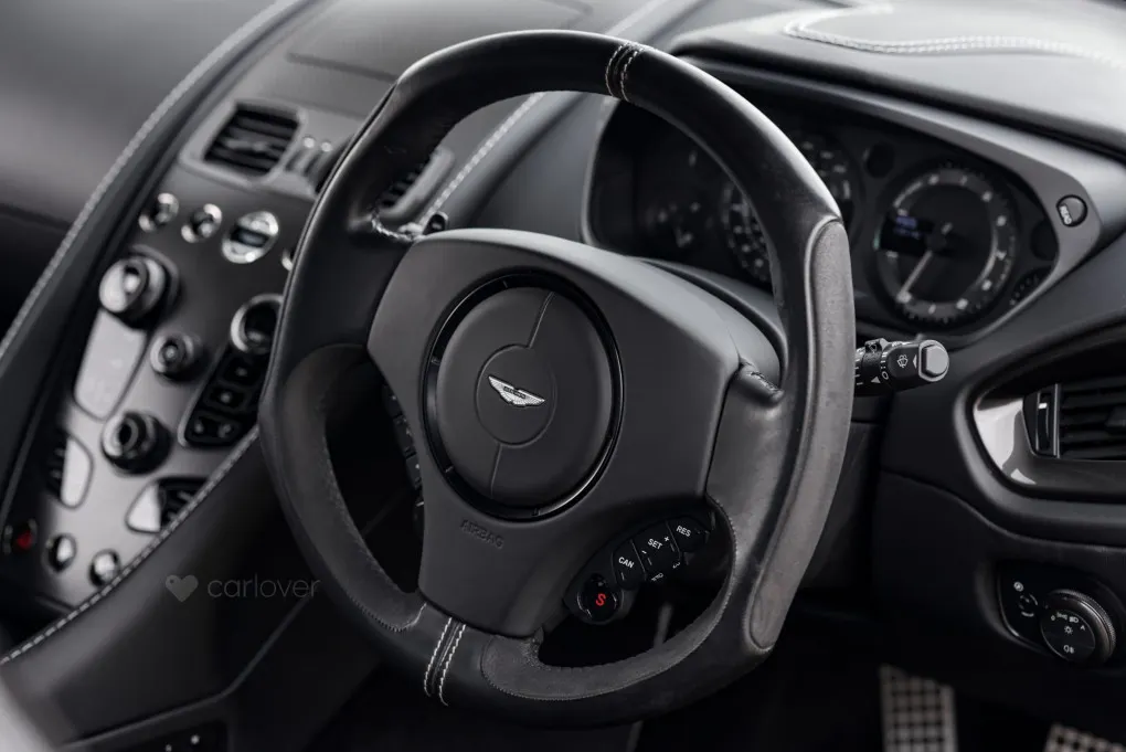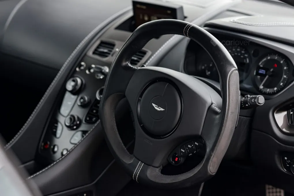 The car is powered by the Aston Martin 6.0 litre V12 engine producing some 565bhp and 465 lbft of torque which is fed through the Touchtronic 2 semi-auto gearbox with paddle controls. This gives the car a top speed of 183mph and a 0-62mph time of 4.3 seconds.