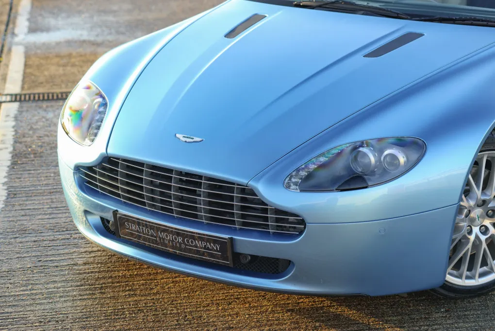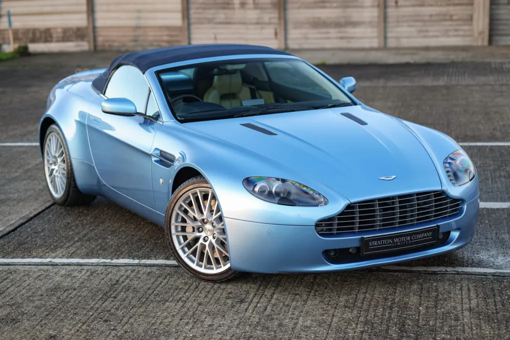 Stratton Motor Company is delighted to present this exceptional 2009 Aston Martin V8 Vantage Roadster, a standout example finished in a stunning colour combination in a bespoke and special order paint finish. For the 2009 model year, the Vantage received a significant upgrade: a 4.7L naturally aspirated V8 producing an improved 420 bhp and delivering 060 mph in just 4.7 seconds. This example features the 6-speed Sportshift gearbox, newly updated that year with revised mapping to offer both a default Sport mode and a more relaxed Comfort mode, providing smoother shifts and effortless drivability. The 2009 model year also benefited from a suspension enhancement, including Bilstein dampers and refined geometry. Also benefitting from a new design of alloy wheels, new interior centre console design along with the glass ignition key.