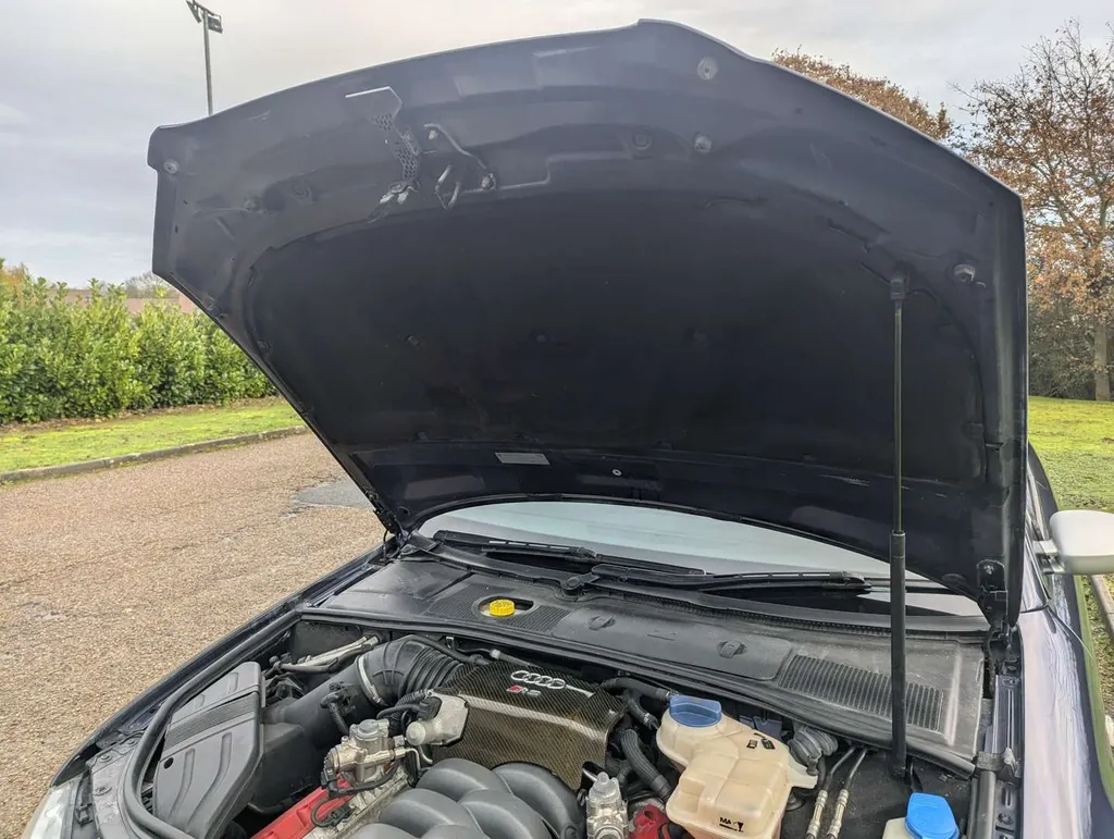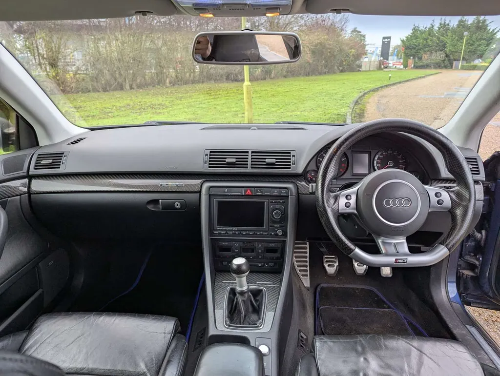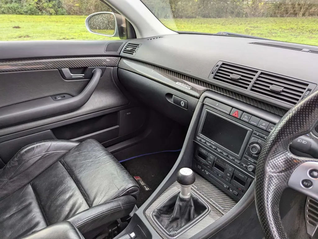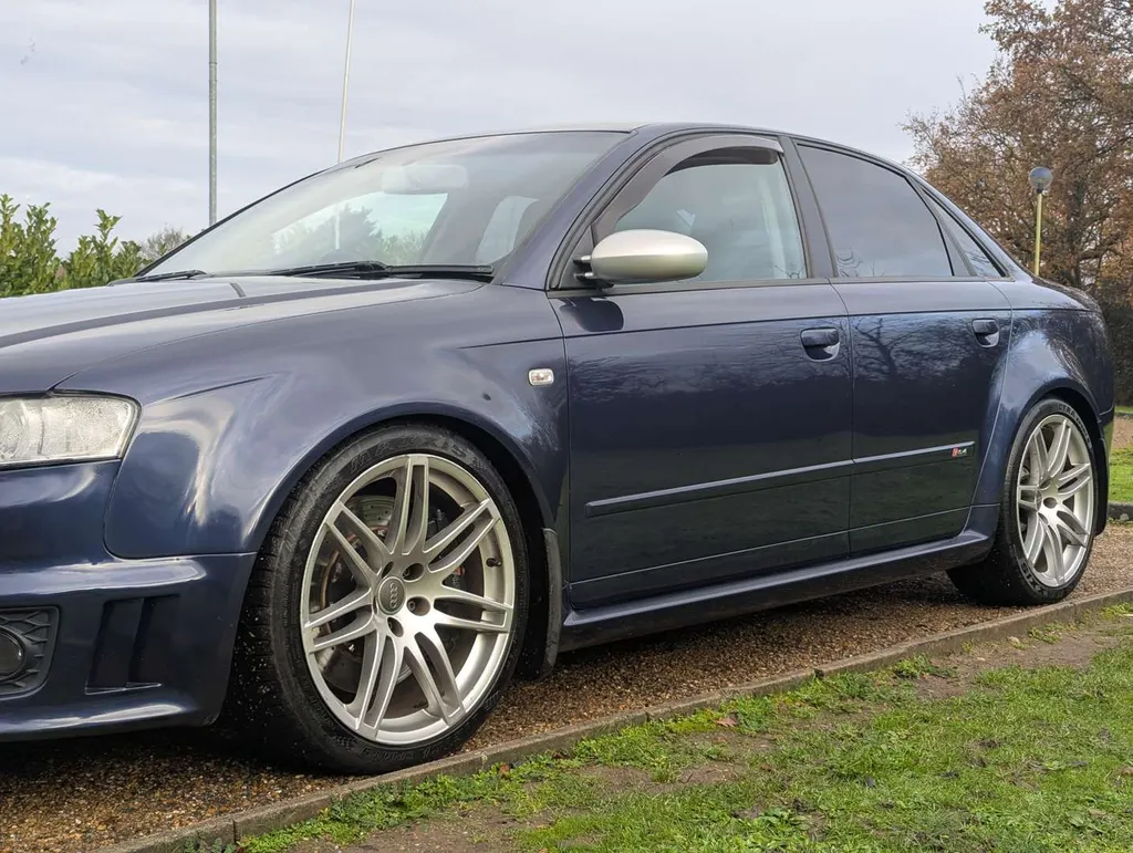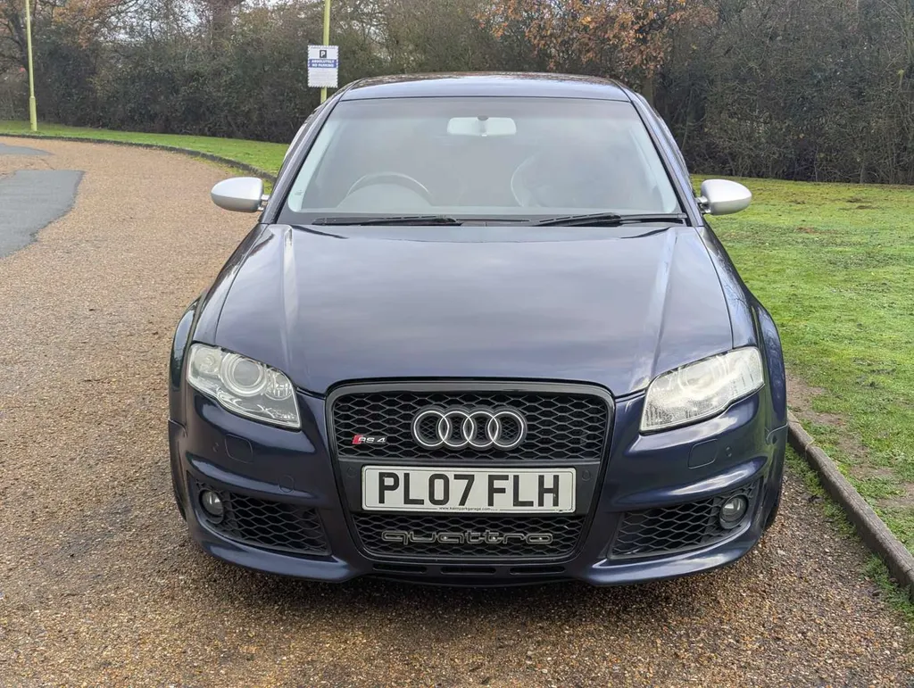 This dark metallic blue 4.2-litre V8 Audi RS4 Quattro features a black leather interior with sports seats and carbon fibre trim. Its odometer shows 122,571 miles, and the car is accompanied by a book pack including a service book with 14 stamps up to 120,000 miles in June 2024. Parts and maintenance invoices totalling £6354 are also present.The car has benefited from significant ongoing expenditure, including a full set of Bilstein adjustable suspension (2021), new front discs and pads (2022), new oil sump and sensor (2022), and replacement catalytic converters (2019). More recently, the front and rear pads have been renewed (2025), the rear calipers were refurbished (2025), and a new battery was fitted (Sept 2025).The car was driven 80 miles to our sale and the vendor describes it as "all good and ready to enjoy".Two keys come with the Audi, although the spare is not working. The MoT is valid until 19th October 2026 and the car was first registered on 27th June 2007.The B7-generation RS4's high-revving naturally aspirated V8 – later adapted for the Audi R8 – is widely regarded as one of the finest engines of its era, and examples with thorough service histories are increasingly sought after. Not specified