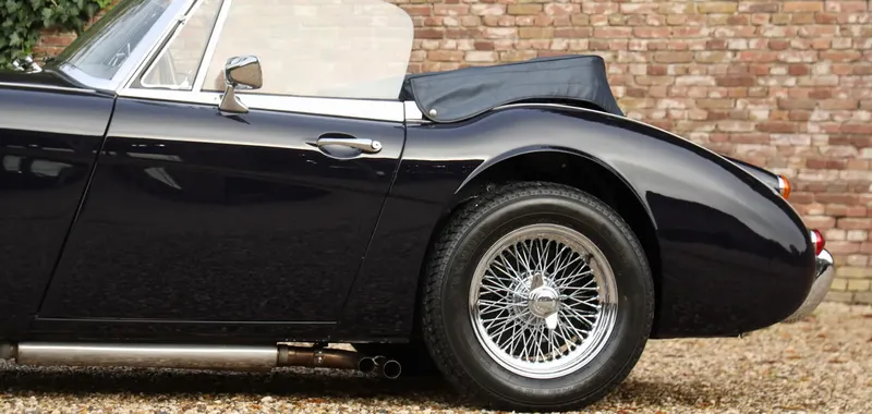 Austin-Healey 3000 MK3: body-off restored The Austin-Healey 3000 MK3 from 1965. What a car, what charisma. The moment you see it, you understand why this British sports car still sets hearts racing today. This example has been completely body-off, nut & bolt restored, down to the finest detail. The restoration work has been fully documented with invoices and photographs, clear proof of the care and dedication invested in this Healey. Matching numbers This particular car proudly retains its matching numbers, confirmed by a Heritage Certificate. At the same time, it has been refined with subtle “Works” modifications such as a triple-carburettor setup, improved cooling, and delicate adjustments to the bodywork. The result? More smoothness, more breath, more character. And just look at the colour: Basilica Blue with grey interior. A shade that seems to capture the light and return it in a silvery-blue glow. In this colour, the Healey is not only elegant but also bold – as if it could set off at any moment towards the rolling English hills. The most refined Austin-Healey In 1965, the MK3 represented the crown of Donald Healey’s work. With its 148 bhp straight-six engine and its gear lever finally positioned at the centre of the tunnel, it was faster, stronger, and more refined than ever before. It accelerates from 0 to 100 km/h in under ten seconds, and with a top speed of around 195 km/h, it could easily compete with the greats of its era. But a Healey is not about numbers – it is about feeling. When you start the engine, you don’t just hear a sound; you experience pure emotion. The deep growl, the mechanical rhythm, the perfect driving position — this is the quintessential British sports car: rugged and gentlemanly at the same time. Although production ended in 1967, the 3000 MK3 remained an icon. This particular example, professionally maintained (with a recent €4,000 service by a specialist), is living proof of that. Its paintwork shines, its interior strikes the perfect balance between authenticity and professional restoration quality, and its driving experience — that blend of muscle and charm — reminds you why this car is adored worldwide. Contact Gallery Aaldering The Austin-Healey 3000 MK3 is not just a classic car. It is an experience, a time machine, a symbol of British elegance and power at its best. And once you have driven it, you will know: some cars are not possessions — they are privileges. Contact Gallery Aaldering today and experience this Austin-Healey for yourself. We export our vehicles worldwide — please inquire about the possibilities.