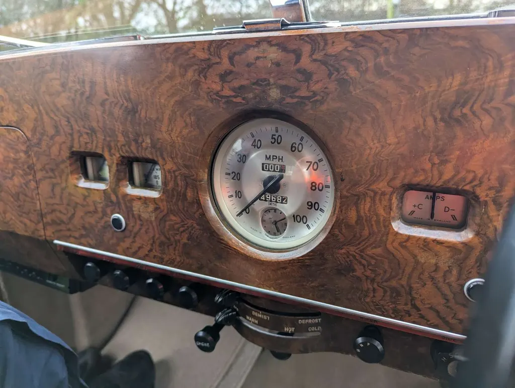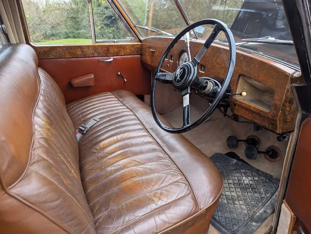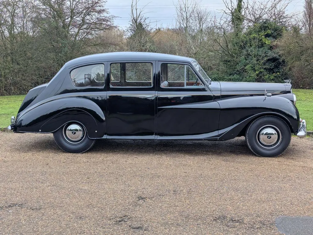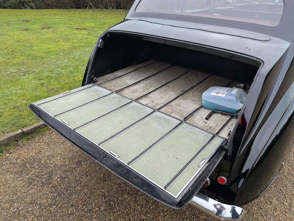 The second owner of this impressive Austin A135 Princess Limousine ('DM4') purchased it in 1972 and cared for it for 53 years until 2025. Despite being MoT exempt, the car has a voluntary, advisory-free MoT to 14th September 2026, and its odometer displays 49,682 miles.The car is accompanied by a good history file of maintenance and repair invoices, and a meticulous written record of work carried out, plus old tax discs back to 1978, a sales invoice from 1972 and an original owner's maintenance handbook. Also present is the original buff logbook, revealing that the Princess was first registered on 23rd September 1955 in Southend. Much mechanical and cosmetic work has been invested in the car over the years, and the vendor tells us that everything is working, including the onboard jacking system – although the heater has recently been isolated at the engine valve due to a perished hose. ("Easy fix, 6 inches hose and 2 Jubilee clips," says our vendor.) The latest V5C is present, recording just two former keepers. Not specified