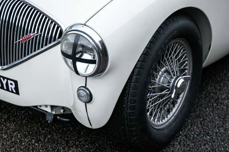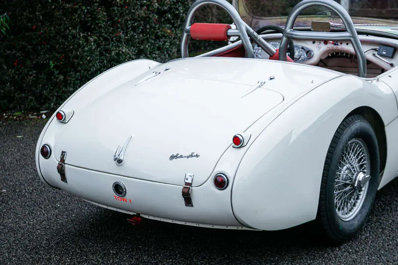 This lot will be auctioned via Iconic Auctioneers, The Iconic Sale at Race Retro 2026 - Competition Cars on Saturday the 21st of February, Stoneleigh Park, Stoneleigh Rd, Coventry, CV8 2LG. Donald Healey's eponymous company built a prototype two-seater sports car for display at the 1952 London Motor Show based on Austin A90 Atlantic mechanicals and sporting a notably sleek body designed by Gerry Coker and built by Tickford. It was dubbed the 'Healey Hundred' (a moniker chosen to reflect the car's ability to reach the magic 100mph), and, subject to a suitably encouraging response, Healey planned to build production versions in-house at his factory in Warwick. As things transpired, not only did the Ice Blue prototype more than impress the public, but also so excited Austin's Managing Director, Leonard Lord, that he struck a deal to build the car in volume at Longbridge which became known as the Austin-Healey 100/4 (BN1) The 100/4's chassis was a departure from the company's previous backbone designs and comprised a pair of three-inch square box-section side members running the length of the car, some 17 inches apart. These were braced by parallel and cruciform cross-members to which the steel floor pressings were attached. After the first 25 cars had been constructed at Healey's own premises in Warwick, the production of the mainstream bodyshells was turned over to Jensen. Once complete, the shells were transported to Longbridge, where the Healeys were assembled alongside the A90. Introduced in 1955, the second generation of the Healey 100/4, the BN2, offered several updates over its BN1 predecessor, including a proper four-speed gearbox and subtle styling changes to the wheel arches whilst still retaining the 90bhp, 2660cc four-cylinder, push-rod OHV engine. Few British sports cars carry the competition credibility of the Austin-Healey 100, and fewer still are presented in genuinely front-line historic specification. This 1955 BN2L (left-hand drive) represents exactly that — a professionally prepared and highly eligible entry into the upper tiers of historic motorsport. It has been subject to a full body-off restoration/race preparation by MRM Motorsports to a very high standard including numerous Jeremy Welch race components, underlining the quality and intent of the build, and is accompanied by a current FIA Historic Technical Passport (HTP), ensuring eligibility for a wide variety of leading international historic race series and tours. Sitting on competition-ready wire wheels, the Healey is finished in Old English White with a striking interior in Tartan Red leather and remains in excellent condition. As with any competition car, it's best to establish the currency and suitability of any safety-related equipment (cage, seats, harnesses, fuel tank etc.) We understand that the car has recently benefitted from an engine and gearbox service with a brake inspection. Crucially, this Healey offers true versatility. Fully competition prepared yet retaining road registration, it is equally suited to circuit racing, historic tours or fast road events on both sides of the Channel, making it an ideal choice for the enthusiast seeking one car to unlock multiple experiences. It's been a regular entrant in the Woodcote Trophy race, run by Motor Racing Legends, other highlights include the Portimao and the Silverstone Pall Mall Cup events, and we understand that it is potentially Mille Miglia eligible. When one considers the cost, time and expertise required to replicate such a build today, this BN2 represents simply superb value for money, offering access to some of the very best historic motorsport available. We invite and encourage your close inspection at Race Retro, where the quality and attention to detail can be fully appreciated.