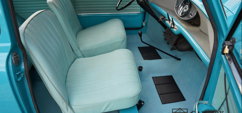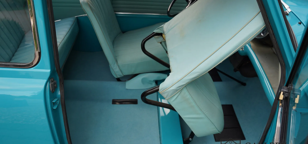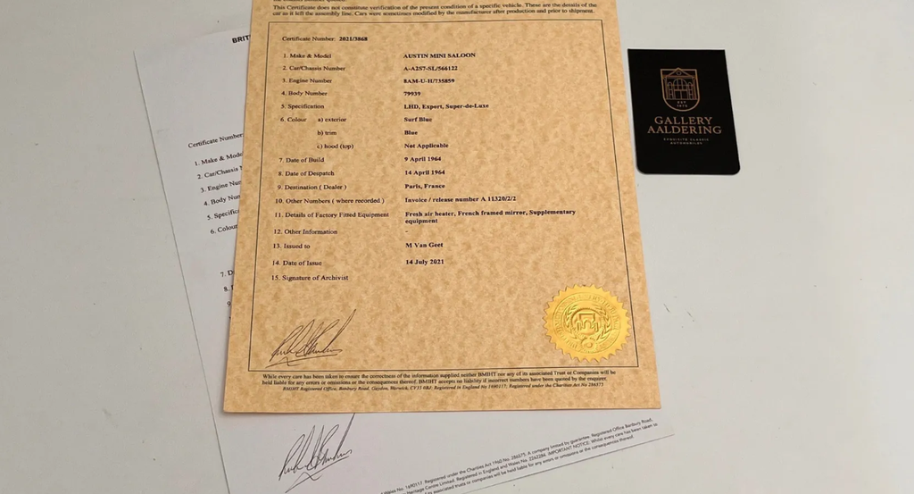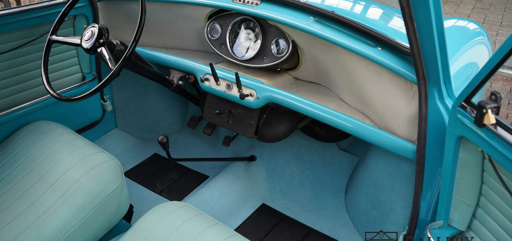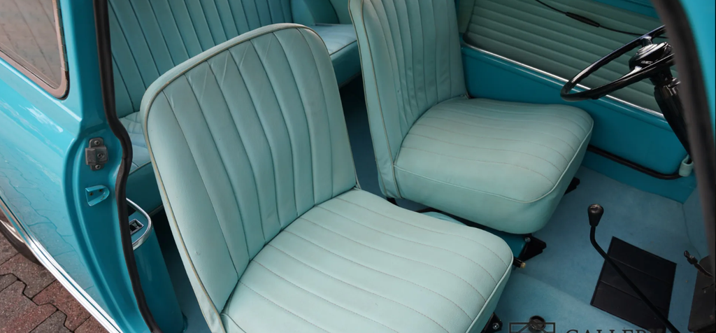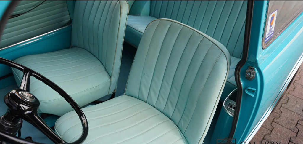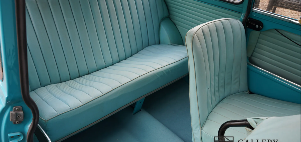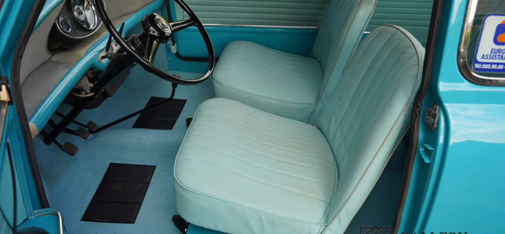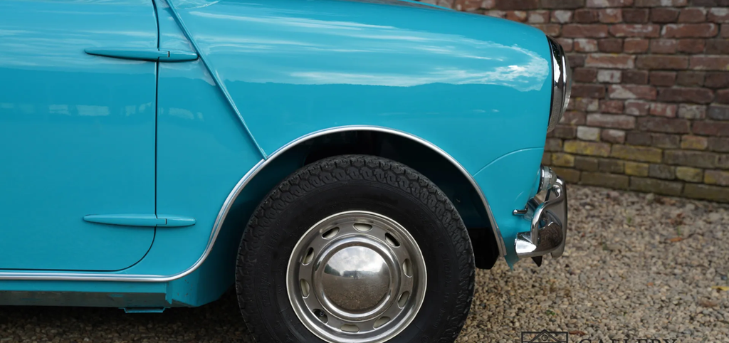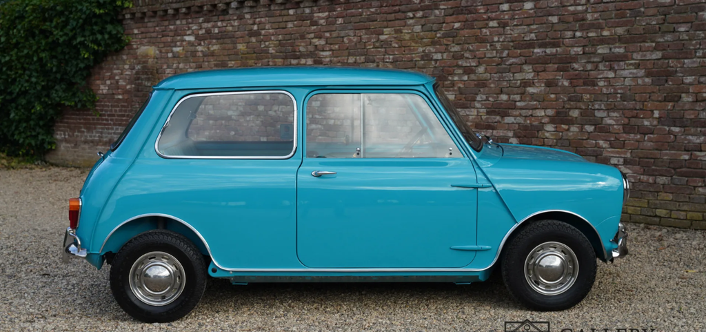 Price reduction!! from €33.950,- now €26.500,- This vehicle is part of Gallery Aaldering’s temporary Price Reduction Campaign. For a limited time, a carefully curated selection of our most distinguished classic and collector cars is being offered at specially reduced prices. Each vehicle embodies the spirit of motoring excellence chosen for its authenticity, heritage, and character. This campaign offers a unique opportunity for enthusiasts and collectors to acquire their next timeless automobile at an exceptional value, while enjoying the uncompromising quality and passion that define Gallery Aaldering since 1975. Don’t wait too long! This sale is only valid for one month and ends on December 15. Contact our team now and discover how this (classic) car could be yours. Your dream car is waiting. This beautiful Gulf blue Austin Mini De Luxe left the factory in January 1964 and went straight to France. There the car was eventually completely and very professionally restored. The restoration was so professional that he made it to the Swedish car magazines with the Mini. An extensive restoration which, years later, can still be determined to have been expertly carried out. The paint is still beautiful, and measures these wonderful values. In addition, the body and underside of the Mini are in very good condition. The Mark I Mini (built 1959-1967) was the first version of the British Motor Corporation (BMC) Mini. The first generation Mini is characterized by its sliding windows, exterior door hinges on the doors and “mustache” grille. In the United Kingdom, the Mark I was produced between 1959 and 1967. The Mini Mark I was sold under the Austin and Morris brand names. This is a light blue Mini De Luxe. The interior has beautiful light blue accents and also beautiful seats and has driven 77,140 kilometers. Not a wolf in sheep’s clothing but an absolute candy in sheep’s clothing, don’t let the high cuddliness factor of the Mini fool you, this car is very suitable to make it difficult for much larger and much more powerful cars. Gallery Aaldering is Europe’s leading Classic Cars specialist since 1975! Always 400 Classic and Sportscars in stock, please visit www.gallery-aaldering.com for the current stock list (all offered cars are available in our showroom) and further information. We are located near the German border, 95 km from Düsseldorf and 90 km from Amsterdam. So easy traveling by plane, train, taxi and car. Transport and worldwide shipping can be arranged. No duties/import costs within Europe. We buy, sell and provide consignment sales (selling on behalf of the owner). We can arrange/provide registration/papers for our German (H-Kennzeichen, TÜV, Fahrzeugbrief, Wertgutachten usw.) and Benelux customers. Gallery Aaldering, Arnhemsestraat 47, 6971 AP Brummen, The Netherlands. Tel: 0031-575-564055. Quality, experience and transparency is what sets us apart. We look forward to welcoming you in our showroom