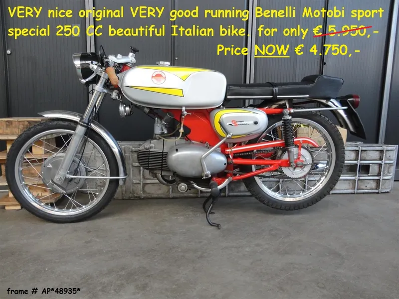 A VERY nice, Original and VERY good running Benelli Motobi Sport Special 250CC. A beautifu...