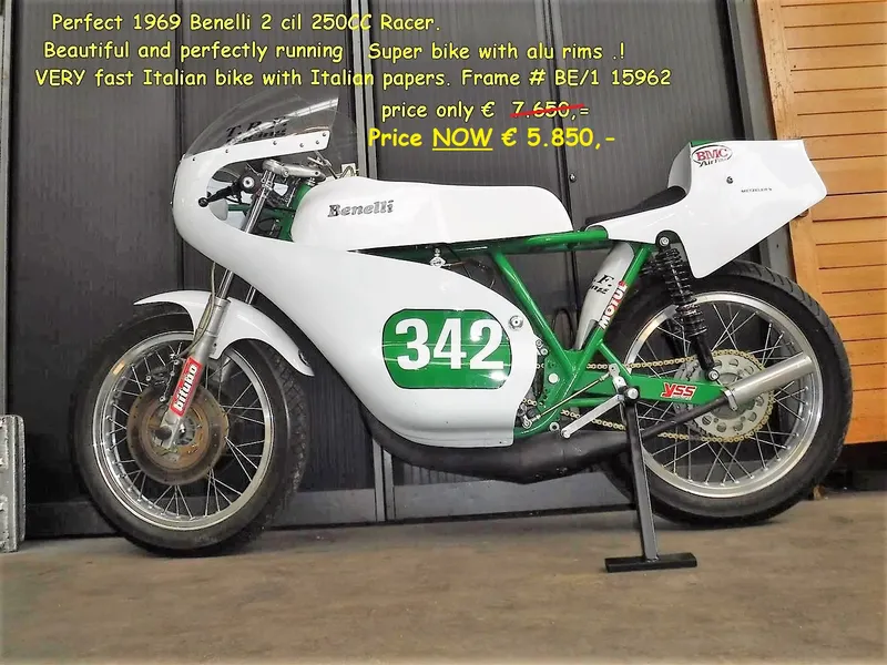 Perfect 1969 Benelli 2 cil 250 cc racer.Beautifull and perfect running super bike with alu...