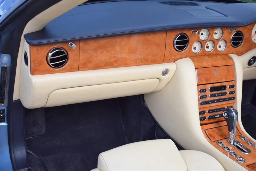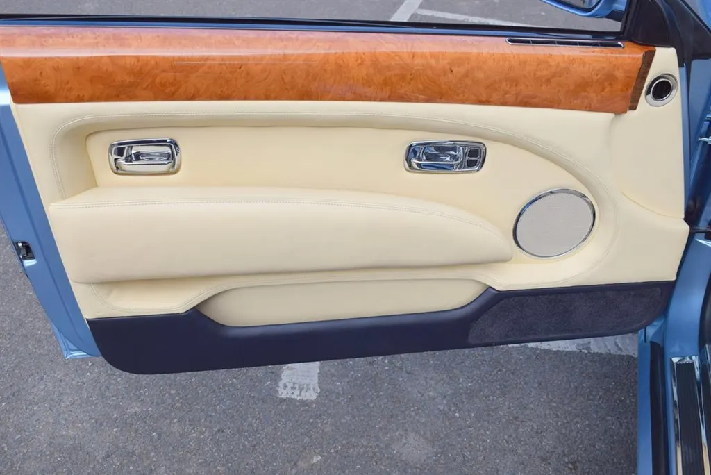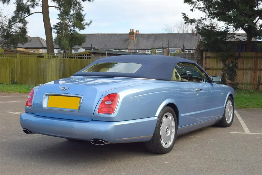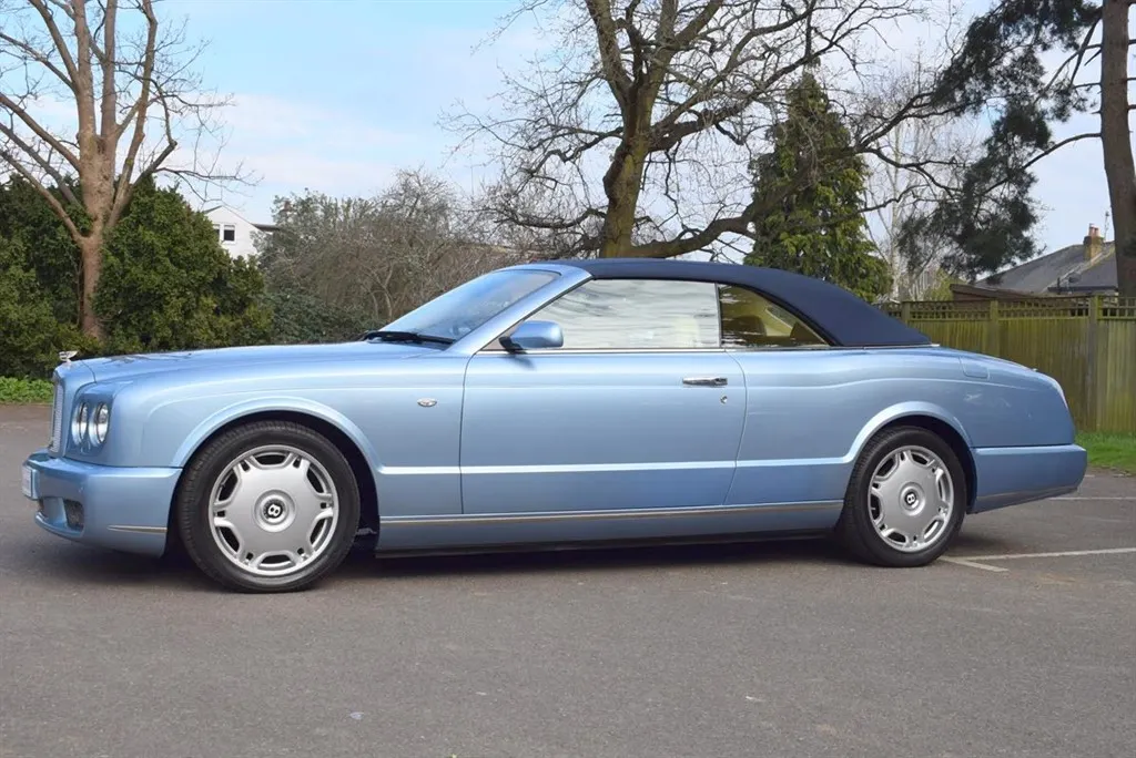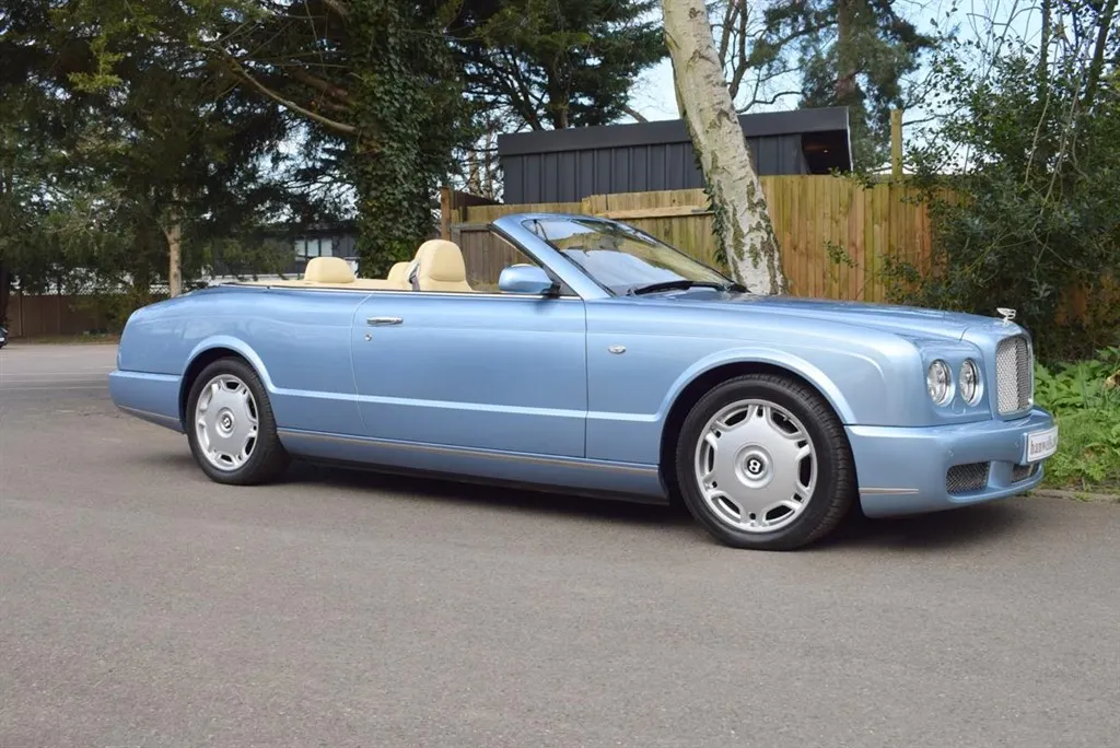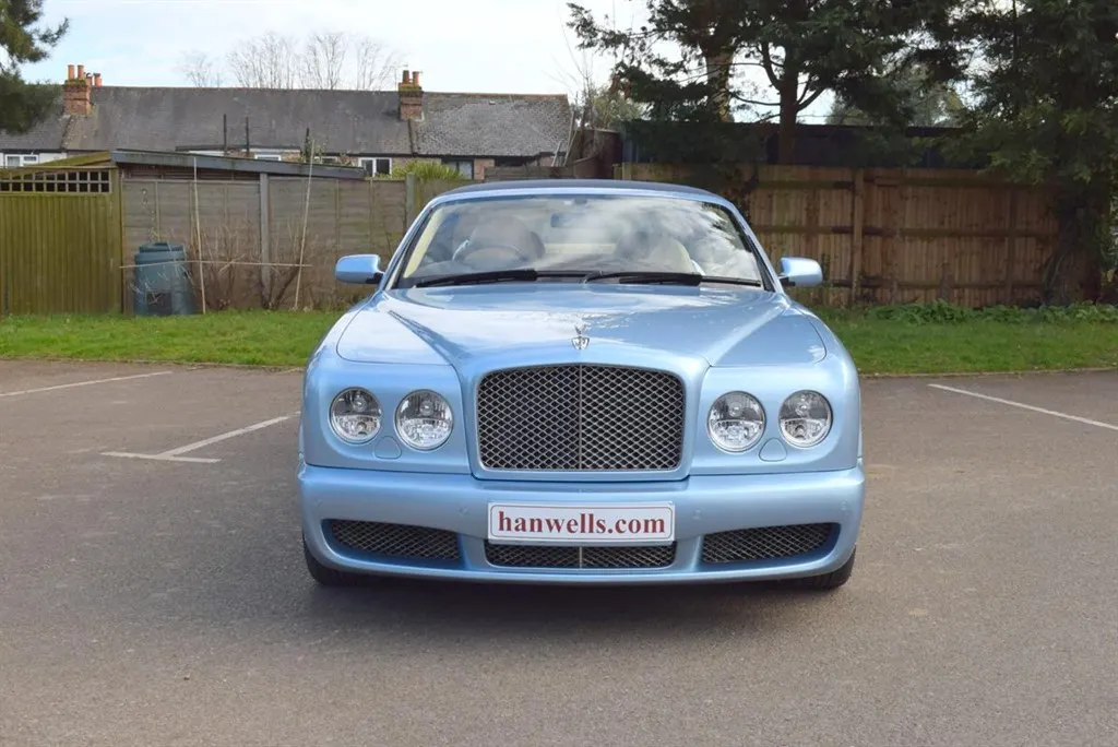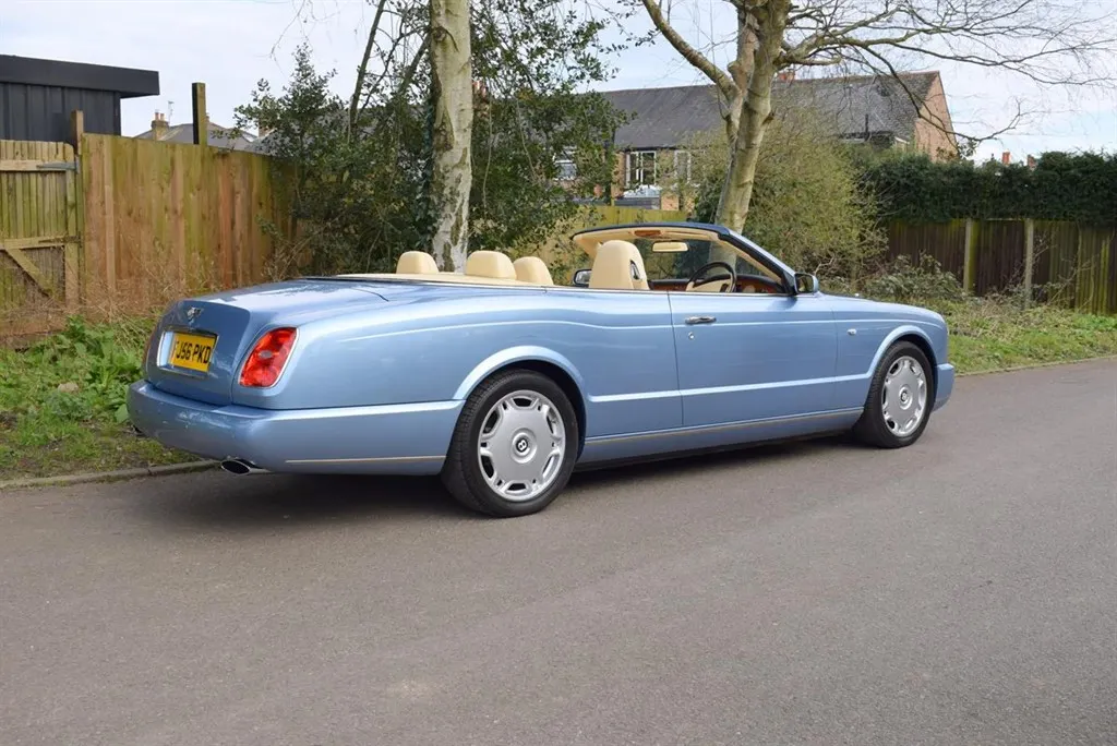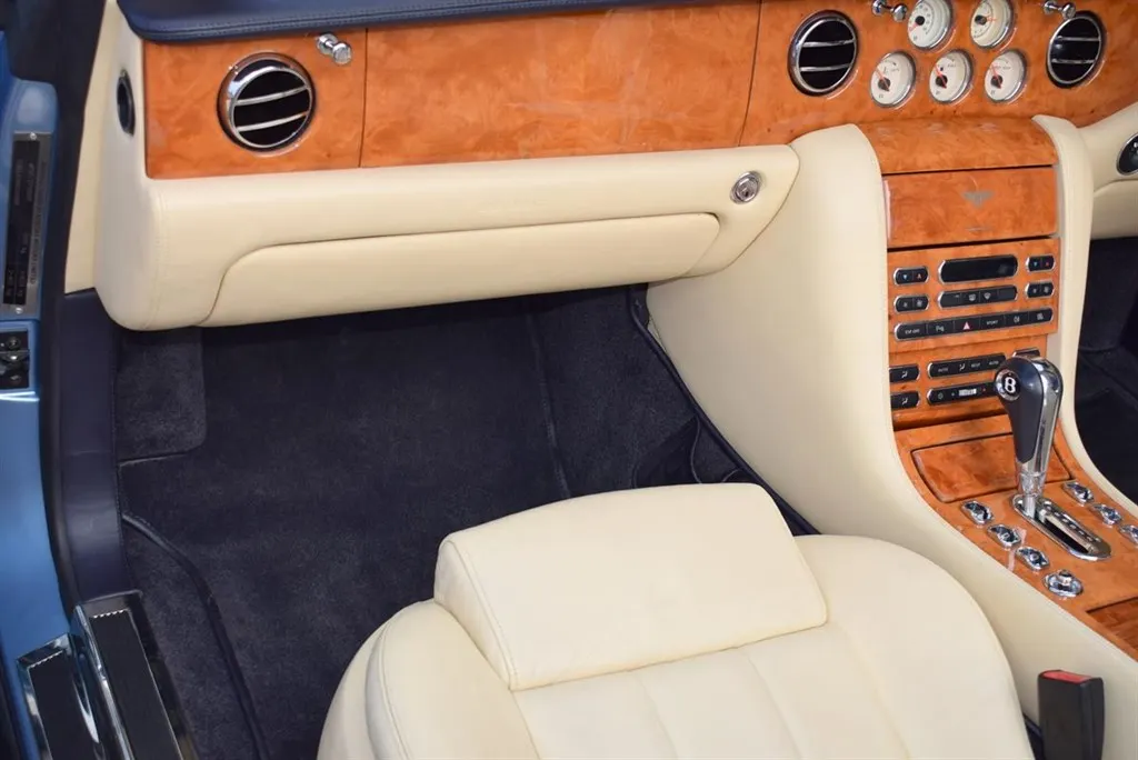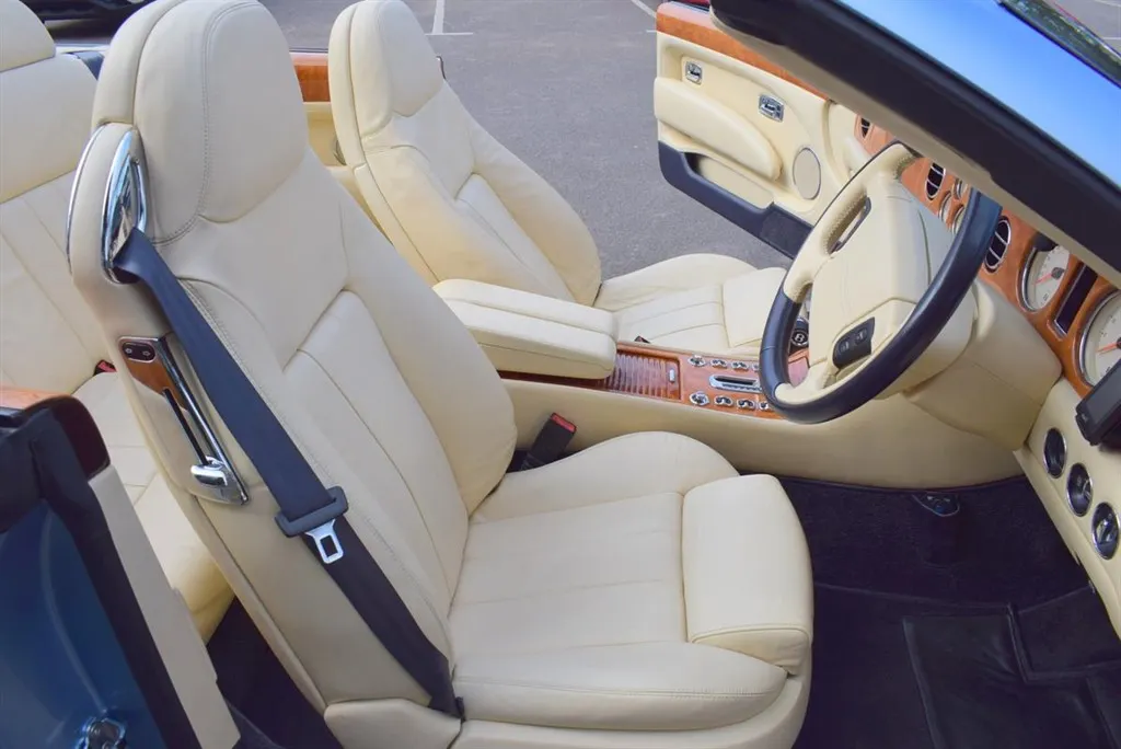 2006/56 Bentley Azure. Finished in unmarked Silverlake with a French Navy mohair hood, Flying B mascot and 19 inch alloys. The interior is in beautiful condition, the leather is perfect, trimmed in Magnolia with Nautic secondary hide, two tone steering wheel and Madrona veneers. Only 39,000 miles with full history and in immaculate condition throughout.