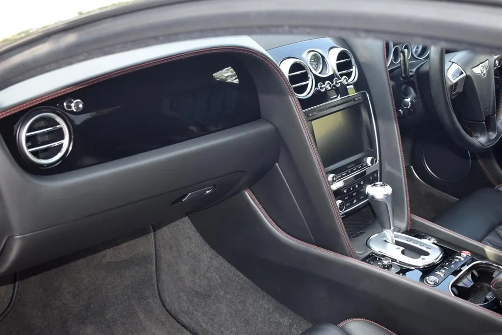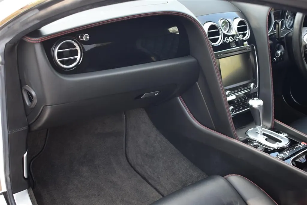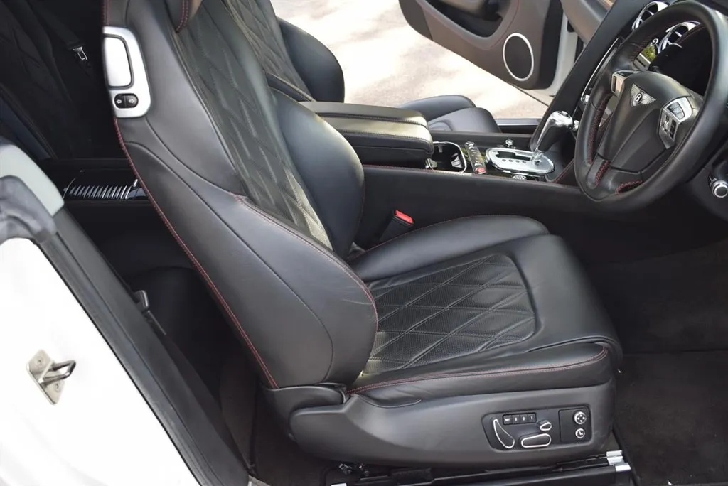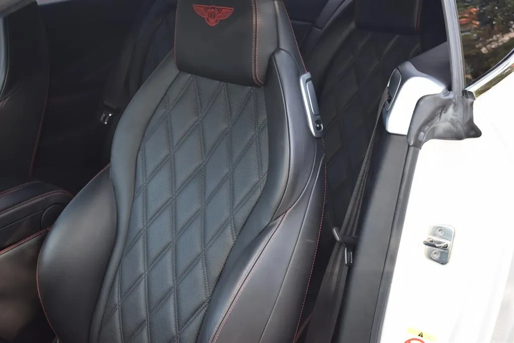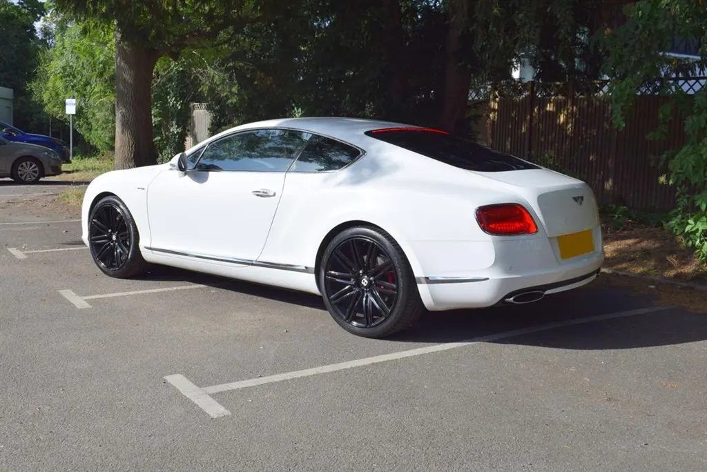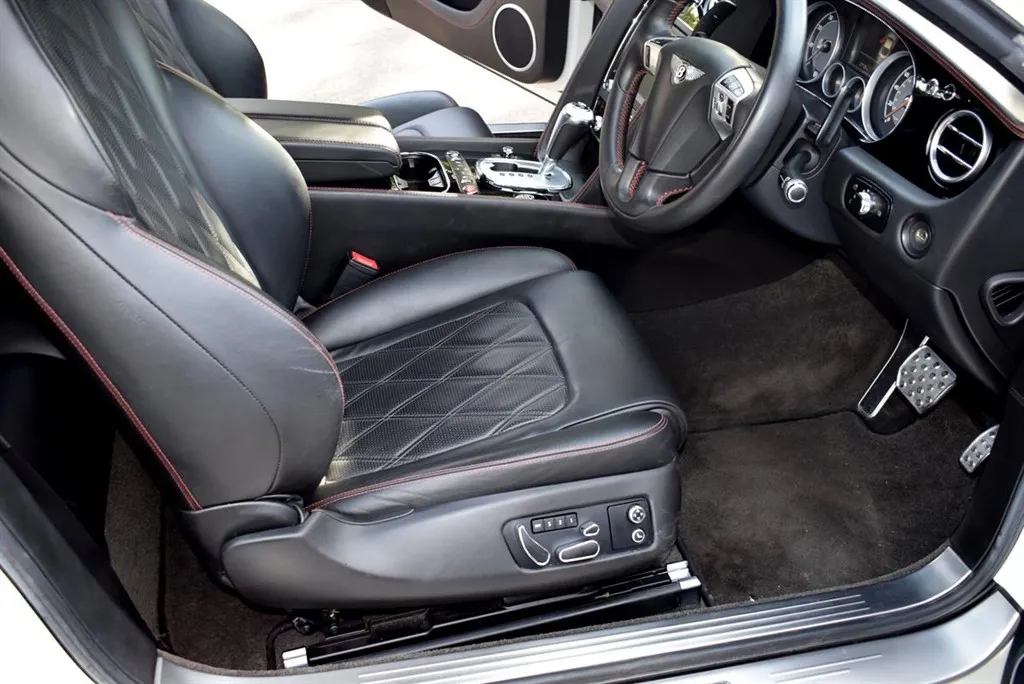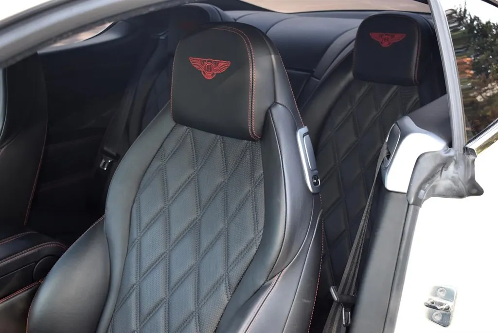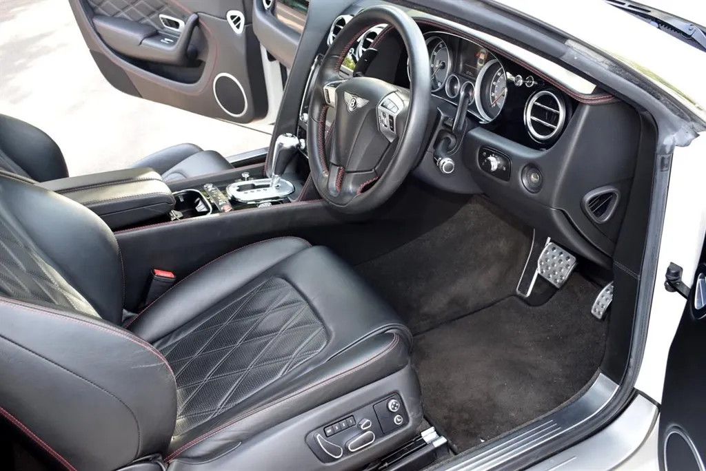 2013/13 Bentley Continental GT Speed. Finished in Glacier White with Black 21 inch Speed wheels with red brake calipers. The interior is trimmed in Beluga hide with Pillar Box Red stitching, with 3 spoke steering wheel in Beluga, stitched in red and Flying B’s on the seats. Massage and ventilated front seats and rear park camera. Immaculate condition throughout. Only 27,000 miles with Full Service History.