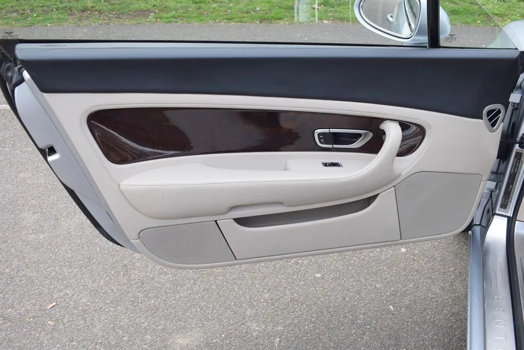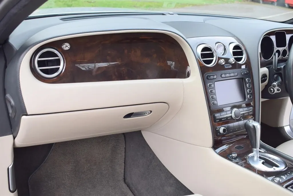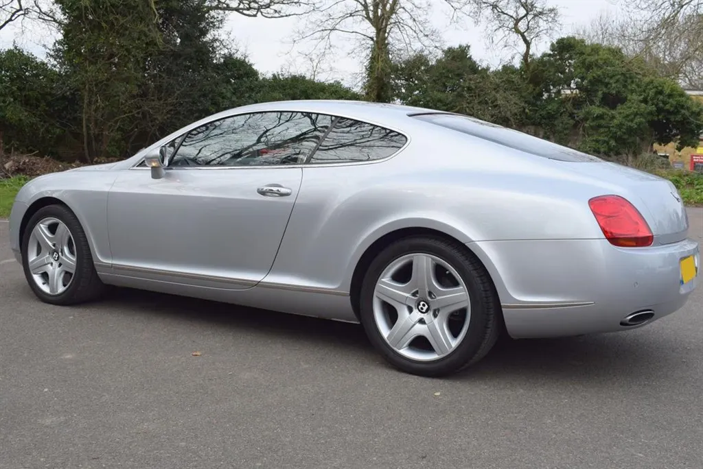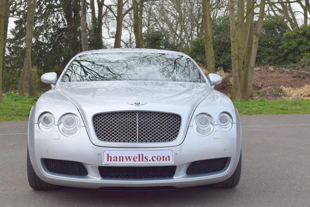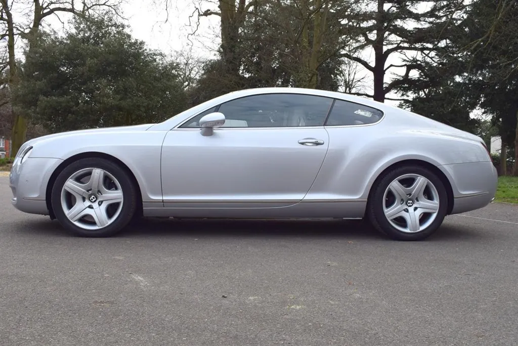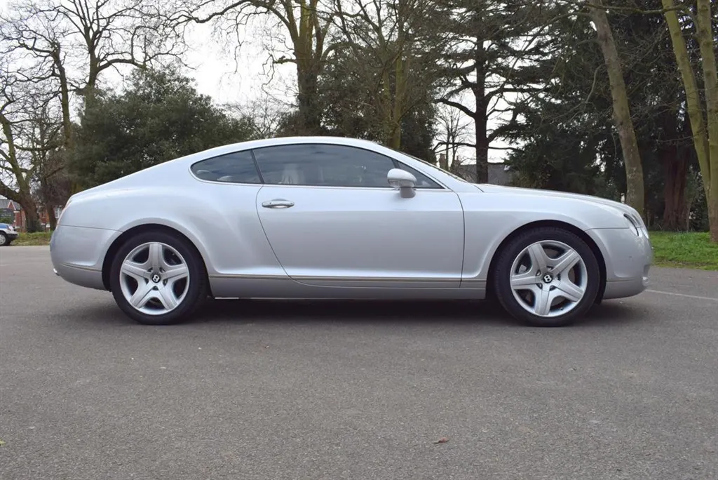 2005/05 Bentley Continental GT. Finished in Moonbeam Silver with Portland hide interior and Beluga carpets. With Dark Burr Walnut veneers including door and rear quarter inlays. Fitted with massage option to the front seats. Only 84,000 miles with Full Service History. Immaculate throughout.