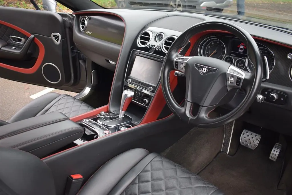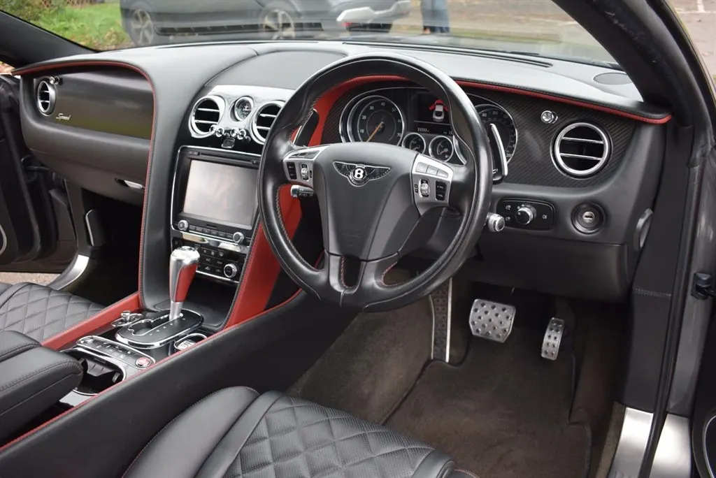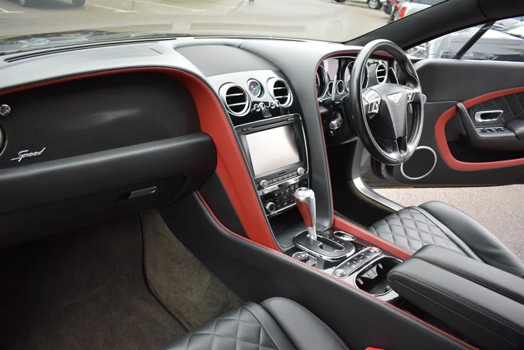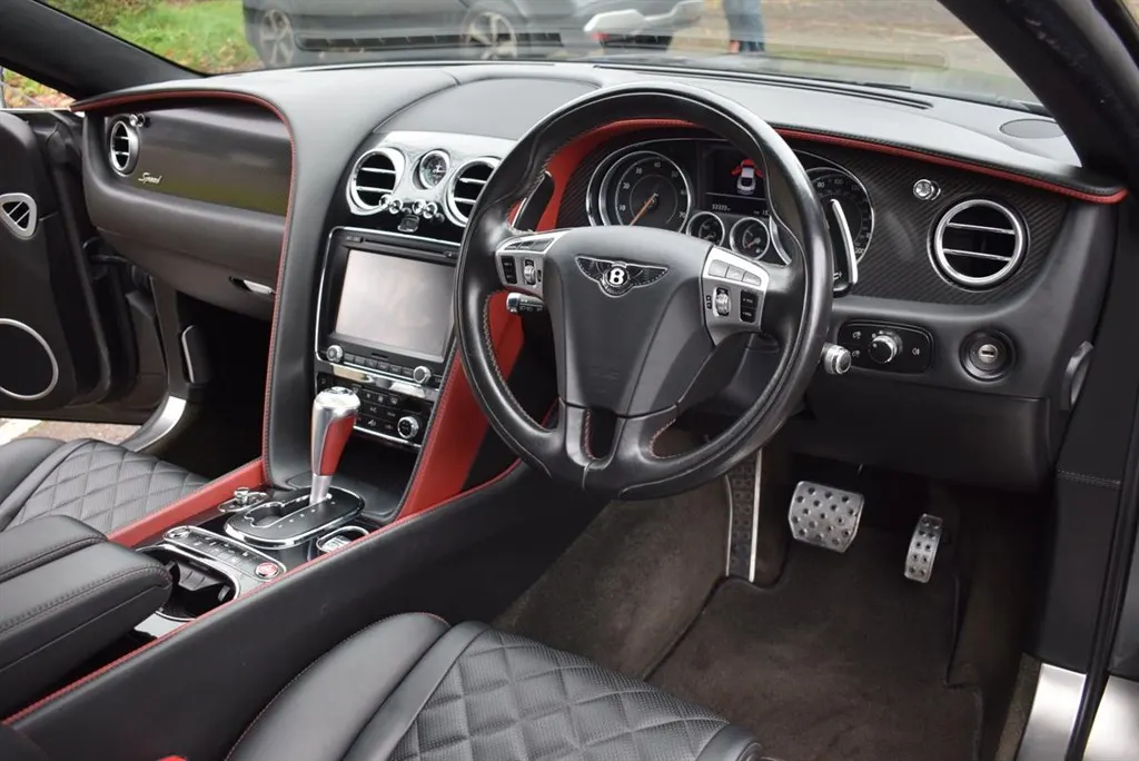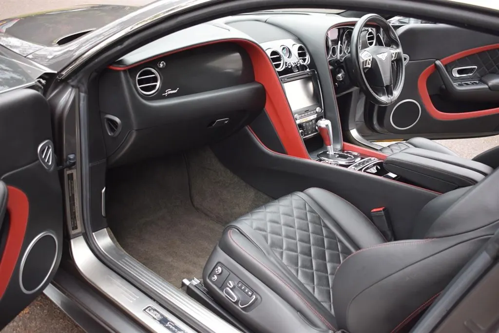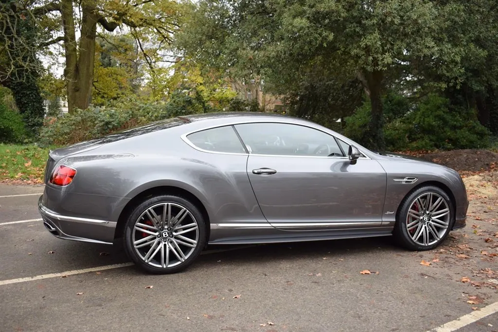 2015/65 (2016 Model) Bentley Continental GT Speed. Finished in unmarked Tungsten with 21 inch Speed alloys in Dark Tint. The interior is trimmed in Beluga with emblems on headrests in Beluga, with secondary hide and contrast stitching in Fireglow and carbon fascia panels. Ventilated front seats and massage function, adaptive cruise, rear view camera and Comfort Sports Equipment. Only two owners and known to ourselves, with only 53,000 miles with full history. Immaculate condition throughout.
