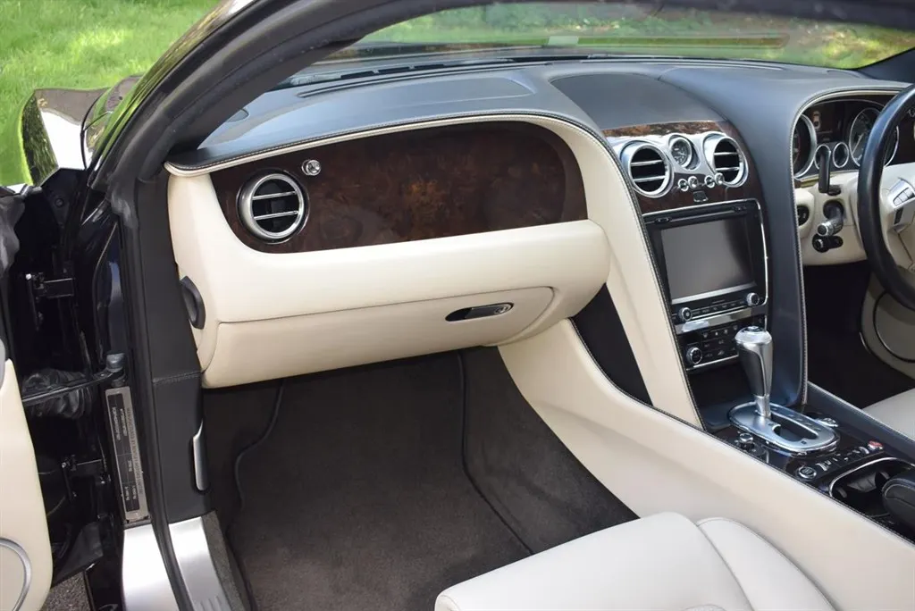 2012/12 Bentley Continental GT 6.0 finished in stunning Onyx with 21 inch Black and polished alloys and de-chromed finish. The interior is in Linen leather with Beluga stitching and embroidered flying B’s, secondary hide in Beluga with dual trimmed steering wheel and Walnut veneers. With just 69,000 miles and full history, not to be missed at £33,950