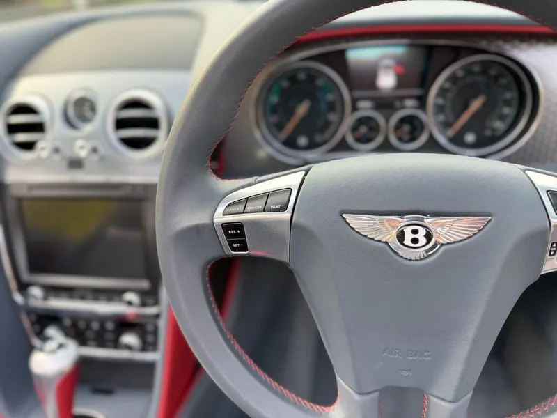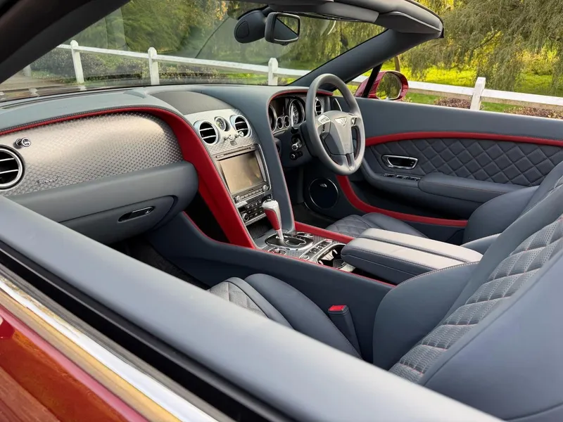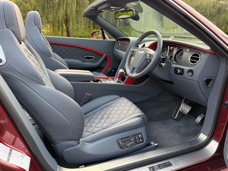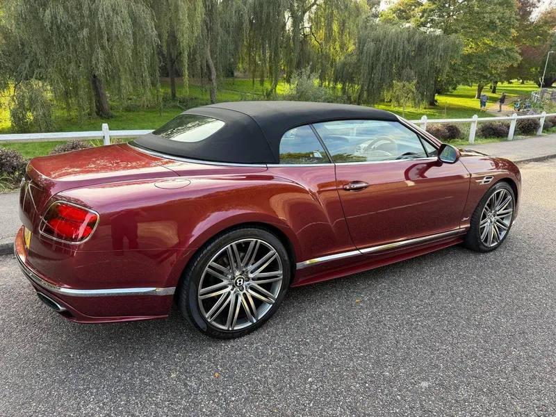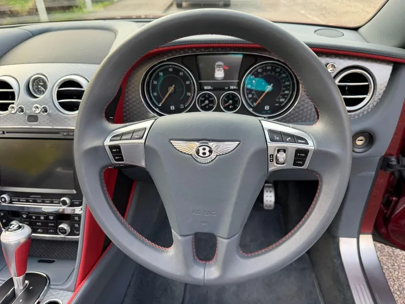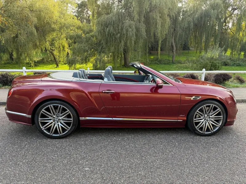 ONLY 8000 MILES HUGE SPEC Finished in Stunning Metallic Rubino Red with a Black Convertible Roof, Main Hide and Secondary Hides in Brunel with Hotspur Accent and Contrast Stitching, Dark Tint Aluminium Fascia Panels, Centre Console and Roof Consoles, Only 8000 Miles From New, 2 Owners, Speed Specification, Premier Specification, All Seasons Specification, Diamond Quilting and Stitching, Heated 3 Spoke Single Tone Steering Wheel with Contrast Stitching, Heated + Cooled + Massage + Memory + Electric Front Seats with Lumbar Support, Neck Warmers Built into Front Seats, Bentley Naim Audio, Front and Rear Parking Sensors, Reverse Camera, Soft Close Doors, Power Opening and Closing Boot, Keyless Start, Keyless Entry/Exit, Dual Climate Control, Touchscreen Infotainment System with Bluetooth and Satellite Navigation, iPod/Telephone Integration, Auto Lights, Auto Wipers, Speed Front Wing Badges, Speed Interior Badges, Heated + Electric Power Folding Mirrors, Bentley Wind Deflector, 21" Speed Alloy Wheels Finished in Dark Tint, Pirelli P Zero Tyres, 2 Keys, Unmarked Throughout and Must Be Seen These are in addition to what this Car typically comes with as standard: CD Changer - 6 Disc Naim for Bentley Premium Audio System Rear View Camera First Aid Kit and Warning Triangle All Seasons Specification Boot Carpet - Match to Secondary Hide Dark Tint Aluminium Fascia Panels-Centre Console and Roof Console Contrast Stitching Contrast Stitching to Diamond Quilted Areas Dark Tint Aluminium Fascia Panels Neck Warmer Interior Style Specification with Contrast Stitching Premier Specification Seat Ventilation and Massage Function to Front Seats Steering Wheel - 3 Spoke Single Tone - Hide Trimmed Rubino Red Space Saving Spare Wheel Bentley GPS Tracking System - Full Fitment Standard Brakes with Black Calipers Wind Deflector 21in Alloy Wheels - Speed - Painted When New This Car Came With: 21in Alloy Wheels - 10 Twin-Spoke - Painted 8 Channel and 8 Speaker Audio System 8in High-Resolution Colour Screen to Display Infotainment and Vehicle Systems Information ABS - Anti Lock Braking System Acoustic Interlayer to Side and Front Glass Acoustic Interlayer to Side and Rear Glass Airbag - Driver Airbag - Front Passenger Deactivation Airbag - Front and Rear Thorax Airbag - Passenger Airbags - Front Side Airbags - Rear Side Automatic Seat Belt Presenter BMR - Balanced Mode Radiator Speakers Bentley Branded T Piece Engine Cover Bentley GPS Tracking System Provision Bi-Xenon Projector Headlights Boot Carpet in Black - Beluga Breitling Clock Bulls-Eyes Air Vents with Chrome Organ Stop Controls CDC - Continuous Damping Control Concealed Rear Aerofoil with Automatic Deployment DAB Radio Dark Tint Front and Rear Lights Dark Tint Radiator Shell Matrix and Lower Bumper Grilles Daytime Running Lights - LED Door Area Lighting in Lower Edge of Exterior Mirrors and Entrance Lighting in Lower Edge of Door Door Mirrors - Colour Coded Door Mirrors - Electronically Adjustable with Heating - Power Folding and Memory Functions Drilled Alloy Sports Foot Pedals EBD - Electronic Brake Force Distribution ESP - Electronic Stability Programme Electric Front and Rear Windows Electric Tilt and Reach Adjustment Steering Column with Memory and Easy Entry and Exit Functions Electronic Cruise Control Electronic Parking Brake with Drive Away Assist Electronic Parking Brake with Move Off Assist Electronically Adjustable Front Seats with Memory Functions External Media Interface Foot Pedals with Bentley B Emblem Footwell and Centre Console Stowage Illumination Front Parking Sensors HBA - Hydraulic Brake Assistance HDD Satellite Navigation Headlight Washer Jets Hide and Chrome Trimmed Gear Lever with Manual Shift Change Facility High Level Rear Brake light ISOFIX Rear Seat Fixings Integrated HVAC Controls Jewel Fuel Filler Cap Keyless Entry and Ignition Knurled Sports Gear Lever LED Rear Lights with Jewellery-Effect Inner Light Treatment MSR - Motor Slip Regulation Main Beam Supplementation - LED Mirror-Matched Unbleached Burr Walnut Veneer to Fascia Panels and Console Multi-Function Steering Wheel Multi-zone Automatic Climate Control System Park Distance Control - Graphic on Infotaintment Screen Works in Conjuntion with Audible Warning Passengers Seat 14 Way Adjustment and Memory Including Lumbar Power Boot Opening and Closing Power Latching to Driver and Passenger Doors for Easy Entry and Exit Quilted Perforated Hide to Door Panels and Rear Quarter Panels Rain Sensing Windscreen Wipers Rear Diffuser Rear Parking Sensors Rifled Exhaust Tailpipe Finisher Seat Belt and Leather-Bound Carpets to Match all Hide Colours Seats - Heated Front Seats - Lumbar Support for Front Seats - Lumbar Support for Rear Single DVD/CD Slot Single SD Card Slot Ski Hatch Speed Sensitive Power Steering Speed Treadplate Badge Spoiler Integrated Into Boot Lid Standard Brakes with Red Calipers Steering Wheel - 3 Spoke Single Tone Hide Trimmed TPMS - Electronic Tyre Pressure Monitoring System Telephone System with Bluetooth Wireless Connectivity Touch Screen Infotainment System with 8inch High Resolution Screen AM/FM Radio Single CD/DVD Slot Twilight Sensor Control and Tunnel Detection for Lighting Twin Front Armrests Veneer - Piano Black Voice Activation on Infotainment System Volumetric Ultrasonic Alarm W12 Badge to Front Fender Wheel Bolts with Thatcham Security Bolt i-Tunes Tagging