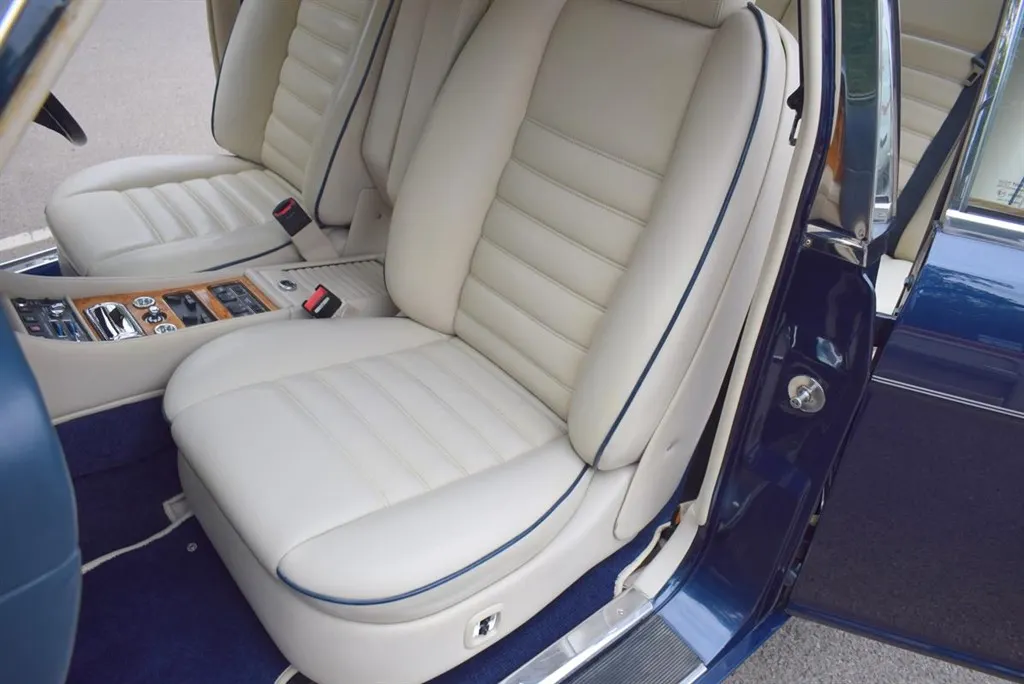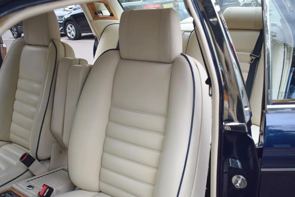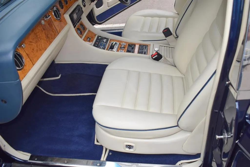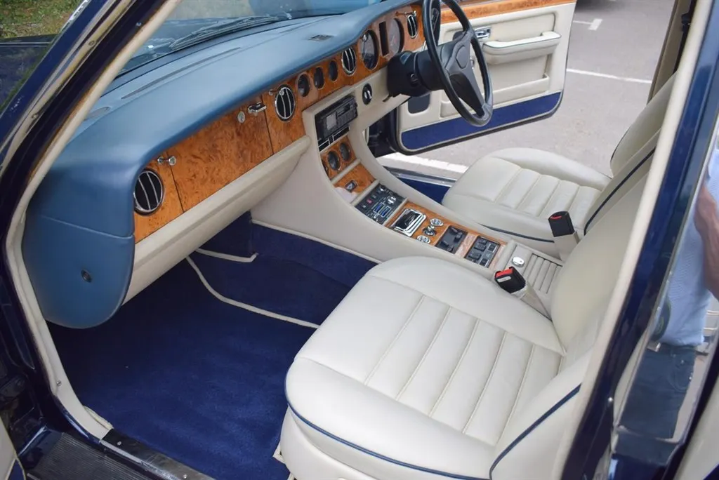 1991 H Bentley Turbo R MK II Active Ride. Finished in unmarked Royal Blue with standard 15 inch alloys, with a Cream coachline. The interior is trimmed in Parchment leather piped in French Navy and French Navy carpets piped in Parchment. Lots of history, outstanding condition, only £13,999