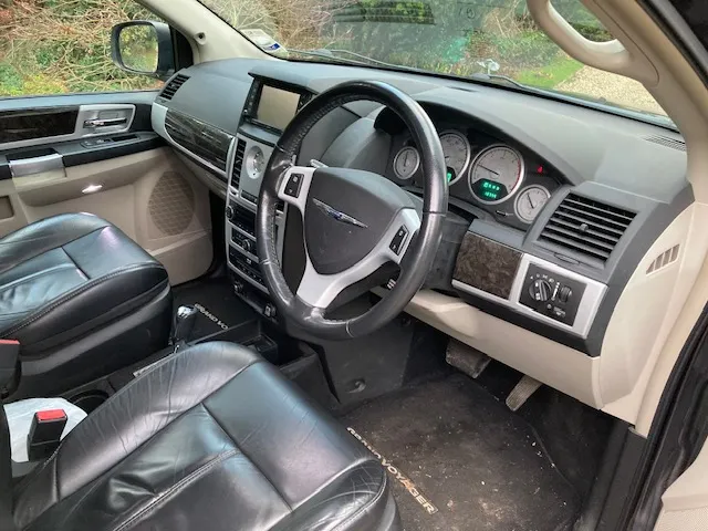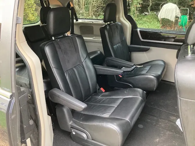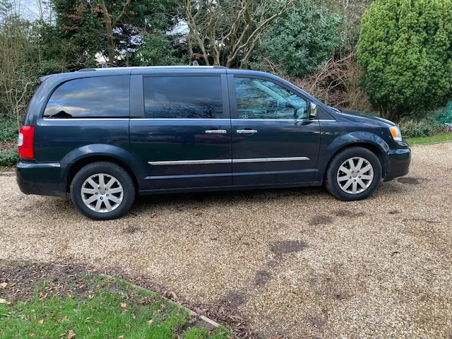 2014 Chrysler Grand Voyager 2.8 CRD Limited. Metallic Grey with Black leather. The usual fantastic equipment levels including automatic, power steering, power brakes, ABS braking, cruise control, front and rear climate control, onboard computer, heated front seats, heated middle row seats, electric memory driver seat and electric passenger seat, electric front and rear windows and electric rear quarter vents, electric and folding mirrors including overtaking indicator, ‘stow and go’ hideaway seating system including electric folding rear seat, extra 12V power points, USB outlets, headlamp wash system, U-connect entertainment stereo system including satellite navigation, bluetooth phone system, CD and DVD players with dual rear TV screens and remote control, reversing camera and front and rear parking sensors, steering wheel stereo controls, electric side and rear doors, retractable side sun screens, alloy wheels, remote central-locking and alarm with 2 keys. In addition this car has only covered under 19,000 miles from new with full service history which is incredibly low mileage for one of these. Only 2 owners from new. Very economical in the diesel variant and with so much space the ideal car for larger families. £ 13,950