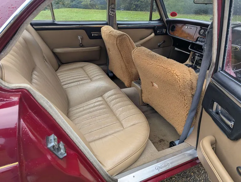 This appealing Daimler 2.8 Sovereign was first registered in June 1971 and its odometer is showing 49,028 miles. Finished in red with a light brown leather interior, it had been a one-owner car until the vendor purchased it in September this year. We're told that it had been dry stored since 1998, and that it is “running and driving like new”.Paperwork includes the current V5C and owner's handbook pack with lubrication chart. Spare keys are also with the car, and the original toolkit and jack are in the boot.  Not specified