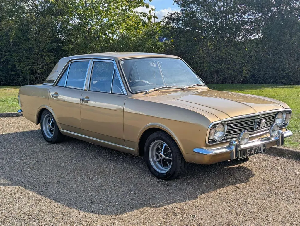 1598cc. This gold Mk2 Ford Cortina 1600E four-door saloon is showing only 29,040 miles on ...
