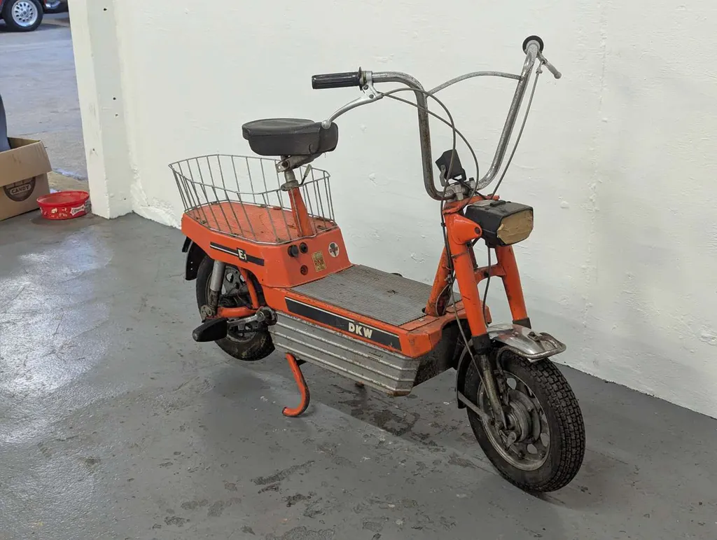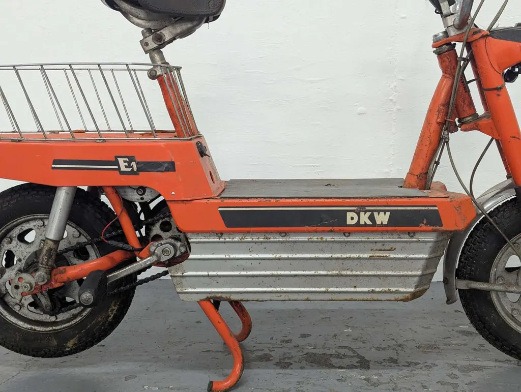 This electric DKW Accubike E1 registers two owners from new on the V5 although little is known about it. It appears to have been in storage for many years recording only 907 kilometres. Comes only with V5. The vendor has had the bike running but it currently doesn't start, requiring the correct battery and is offered as a project Not specified