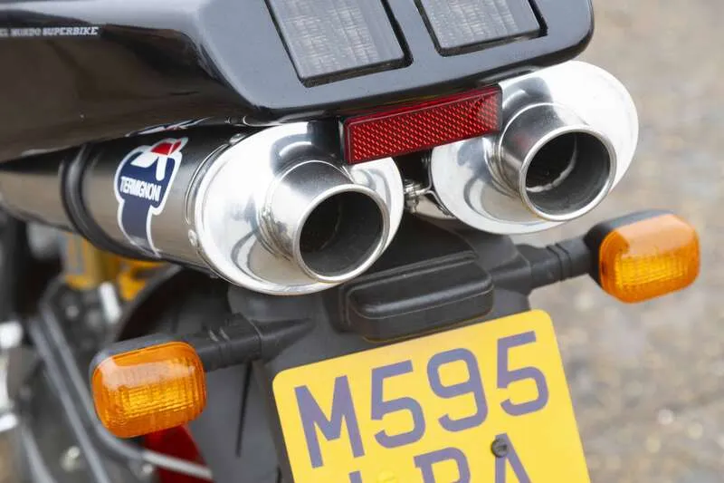 This lot will be auctioned via Iconic Auctioneers, The Iconic Sale at Race Retro 2026 - Motorcycles on Sunday the 22nd of February, Stoneleigh Park, Stoneleigh Rd, Coventry, CV8 2LG. The 916 was a masterpiece penned by Massimo Tamburini, universally regarded as one of the most beautiful and influential motorcycles ever made Powered by a 916cc, liquid-cooled, Desmodromic L-twin engine producing around 109bhp with a distinctive exhaust note Used Ducati’s signature lightweight and stiff tubular steel trellis frame for exceptional handling and a pure sport riding experience Featured an innovative, stylish and race-derived single-sided swingarm to allow for quicker rear wheel changes Introduced the revolutionary underseat dual exhaust system, a design feature copied by nearly every subsequent superbike This early 1994 example Biposto is finished in a Senna III livery, completed to a good standard and in good running order Engine was blueprinted by Luigi Moto for the previous owner Also fitted with a 50mm Termignoni exhaust, Ohlins rear shock absorber, Brembo racing master cylinder and 'wavy' discs Recent recommission by Baines Racing at Silverstone including full service, cambelts, fuel pump, fluids, new tyres and new battery Great looking Senna replica UK-registered on a current V5C