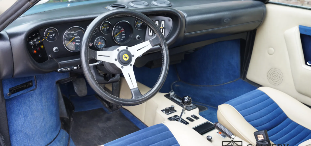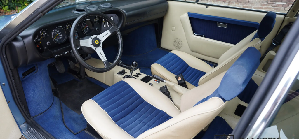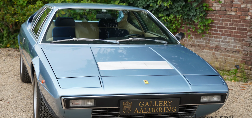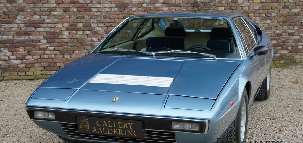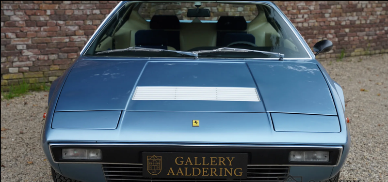 Price reduction!! from €64.950,- now €52.500,- This vehicle is part of Gallery Aaldering’s temporary Price Reduction Campaign. For a limited time, a carefully curated selection of our most distinguished classic and collector cars is being offered at specially reduced prices. Each vehicle embodies the spirit of motoring excellence chosen for its authenticity, heritage, and character. This campaign offers a unique opportunity for enthusiasts and collectors to acquire their next timeless automobile at an exceptional value, while enjoying the uncompromising quality and passion that define Gallery Aaldering since 1975. Don’t wait too long! This sale is only valid for one month and ends on December 15. Contact our team now and discover how this (classic) car could be yours. Your dream car is waiting. In the early 70’s Ferrari was working on a successor to the Dino 246. The brilliant, Pininfarina designed, compact mid-engined two-seater design has been superseded by the competition, who massively were going for shaper lines. That meant a complete change of tact. Bertone was invited to Ferrari headquarters and a deal for the new project was quickly struck. Gandini, working at Bertone, made the draught for the 308 GT4. None of the lines remained the same as it predecessor but the concept stayed the same: a compact mid-engined sportscar. Where the 206 and 246 Dino’s were fitted with a six-cylinder, the 308 GT4 and later 208 GT4 housed an eight-cylinder behind the 4 seats. Initially the car features the Dino badge with no sign of the prancing horse emblem. From 1976 the 2+2 was finally marketed as a Ferrari with Ferrari-logos on its bodywork, wheels and steering wheel. For many years 208 GT4 and 308 GT4 were undervalued, a situation that fortunately has completely changed. More and more people now value this beautiful Gandini creation, which is reflected in its increasing worth. We have a new addition to our stock in this very fine 208 GT4, with an Azzuro finish and stylish natural hide and blue detailing inside. Being a July 1976 car it carries the Ferrari-logos. Having been fully restored and overhauled in the past this car presents particularly well. Since then the car has been cherished and selectively used, leaving us with its current very fine condition. The Dino’s bodywork has a lovely coat of paint with a deep lustre and virtually no signs of use. The door close neatly and the alignment is spot on. The panel edges are all equal and straight. Both the brightwork as the alloys are in excellent, undamaged condition. A look inside does not meet us with any unpleasant surprises. The more or less original upholstery is in an admirable condition, with the blue centre pieces perfectly matching the original blue carpets. It all has a typical 70’s atmosphere. The fully functioning dashboard looks lovely, decked with its many gauges and instruments. All of the switching gear is also in great working order with many of them seated on the dashboard and those Ferrari could not fit there housed on the middle console, where we also find the original factory-fitted Borletti air-conditioning. This Dino has a V8 with a mere 1,990 cc engine volume. It was especially intended for the Italian market in order to avoid hefty tax on engines over 2 litres. With 180 hp it may not be the fastest Ferrari ever but it makes it up with a sensational experience of handling and road holding. A dino 208 GT4 always drives well and this one is no exception. Because of its light weight it is none the less a very quick car, its performance is however simply trumped by the driving pleasure. Following its restoration the car always enjoyed the excellent maintenance it rightly deserved. This means this 208 GT4 is mechanically perfectly sound, with nothing requiring attention. After years of standing in the shadow it is now the Dino’s time in the limelight and that is most certainly true for this very fresh-faced 208 GT4! Gallery Aaldering is Europe’s leading Classic Cars specialist since 1975! Always 400 Classic and Sportscars in stock, please visit www.gallery-aaldering.com for the current stock list (all offered cars are available in our showroom) and further information. We are located near the German border, 95 km from Düsseldorf and 90 km from Amsterdam. So easy traveling by plane, train, taxi and car. Transport and worldwide shipping can be arranged. No duties/import costs within Europe. We buy, sell and provide consignment sales (selling on behalf of the owner). We can arrange/provide registration/papers for our German (H-Kennzeichen, TÜV, Fahrzeugbrief, Wertgutachten usw.) and Benelux customers. Gallery Aaldering, Arnhemsestraat 47, 6971 AP Brummen, The Netherlands. Tel: 0031-575-564055. Quality, experience and transparency is what sets us apart. We look forward to welcoming you in our showroom