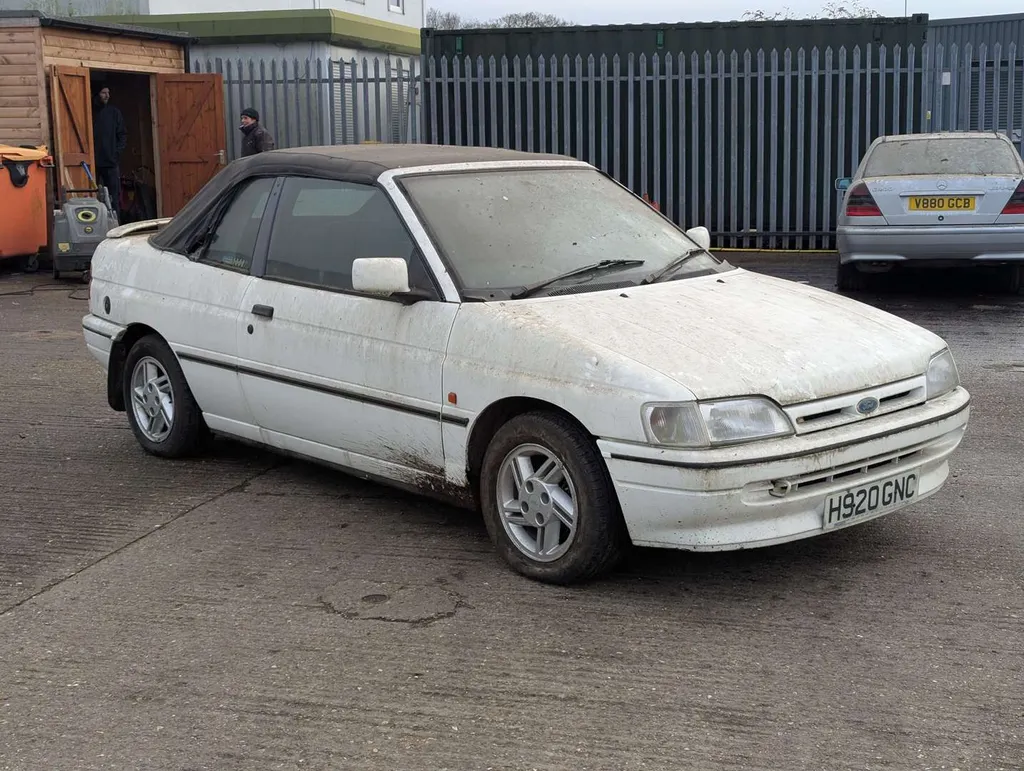 This white Ford Escort Cabriolet 1.6i is showing 40,415 miles on its odometer. It has been...