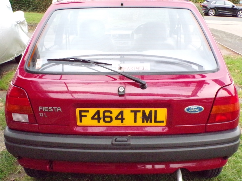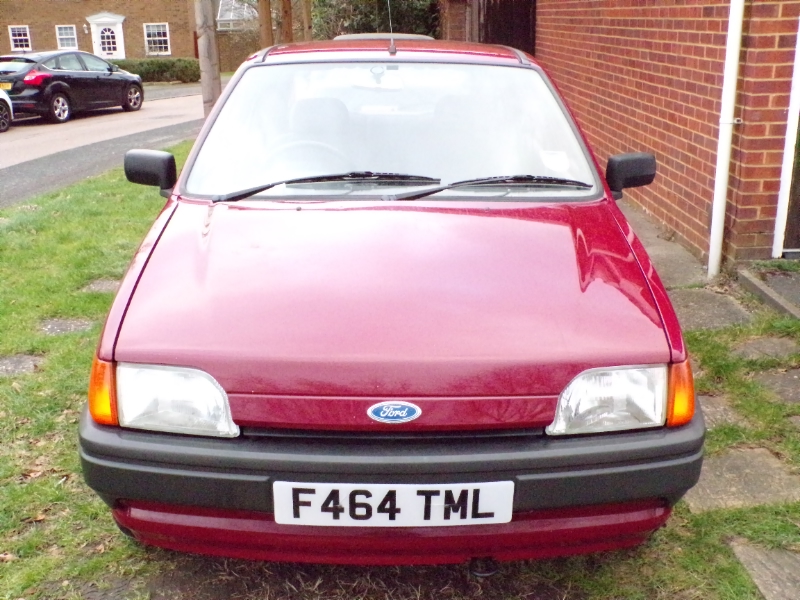 Ford Fiesta 1.1 litre 1989, Dark Red. MoT expires 27/02/2026, 47,500 miles with service history. Good little car that runs well with no corrosion issues, ovno.