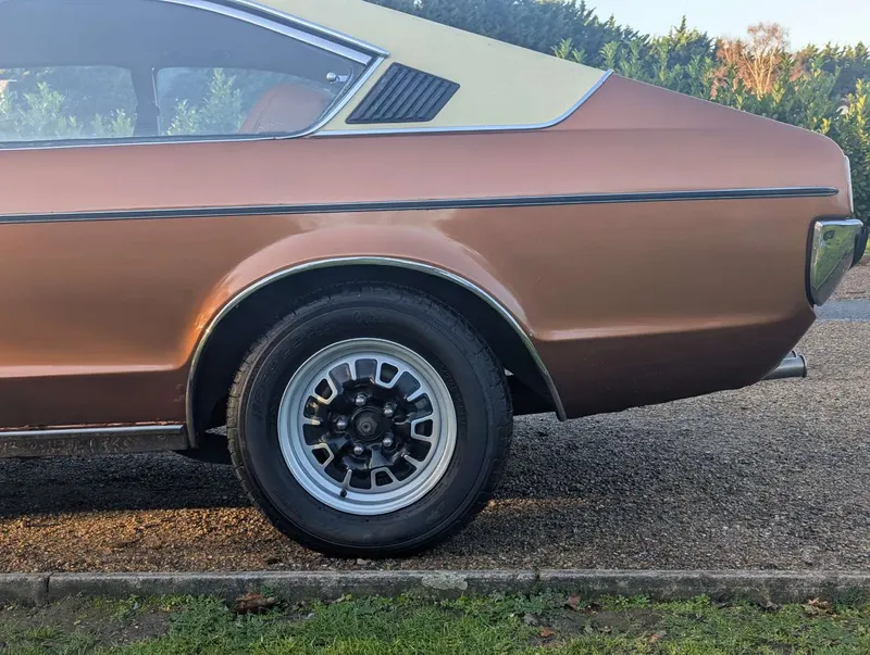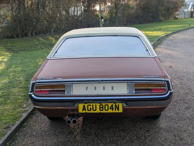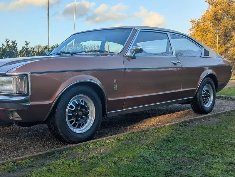 This Ford Granada Coupe has a brown and cream interior to match its metallic gold paintwork and vinyl roof. It is equipped with air conditioning, and is believed to be a South African import, first registered in the UK in March 2017. The vendor describes it as running well.The odometer is showing 1544 miles, and the V5C indicates that there have been only two keepers in the UK. Not specified