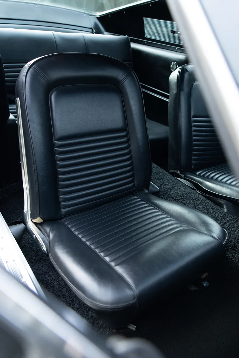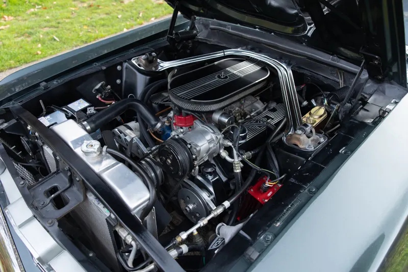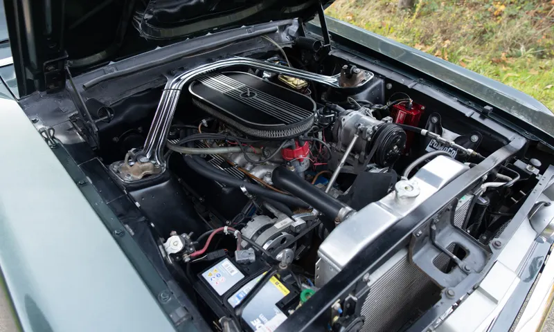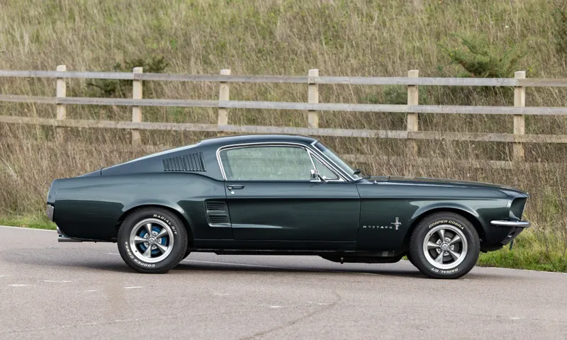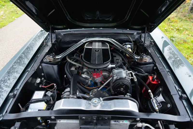 This fantastic looking Mustang Fastback was built at Ford's Metuchen plant, New Jersey on 30th August 1966, as a '67 model. Built as a genuine 'S' code, the car was originally finished in Nightmist Blue with matching vinyl bucket seats and was despatched to Steuart Motor Co. in New York, Washington State. It was shipped to the UK in 2015 from the dry state of Arizona, registered and subsequently extensively restored by Pomona Cars effectively being rebuilt from the ground upwards - with suspension, interior, chrome, wheels/tyres, and air conditioning system all receiving attention. A fresh 351ci (5,754cc) Ford Cleveland V8 engine was installed and mated to the cars AOD (automatic overdrive) four speed auto gearbox, the fourth gear acting as an overdrive. (The automatic three speed plus overdrive gearbox being a very rare factory option which was fitted to this example from new!). This engine boasts roller rockers; a Crane camshaft; flat-top pistons; Edelbrock inlet manifold and carburettor, Flowmaster exhaust, Headman headers, billet pulleys and variable-setting ignition system. The car was also repainted in the desirable 'Forest' Green. Since then, further work to the car has included a power brake conversion for the front wheels, modified gearbox rear mount, new prop shaft and diff oil seal, new heater matrix and a wheel camber adjustment with rear ride height adjustable shock absorbers and tune up in 2021. Showing 56,276 miles, this Mustang has only covered circa 2,000 miles since all this work was completed and remains in excellent condition and great running order. It is supplied with a history file of invoices for work completed and a copy of a Marti Report (USA) confirming the car as a genuine 'S' Code model, its current V5 registration document, and various sundry bills. This wonderful example sounds fantastic when on song and is a perfect candidate for any enthusiast or collector. Consigned by Daniel Godin