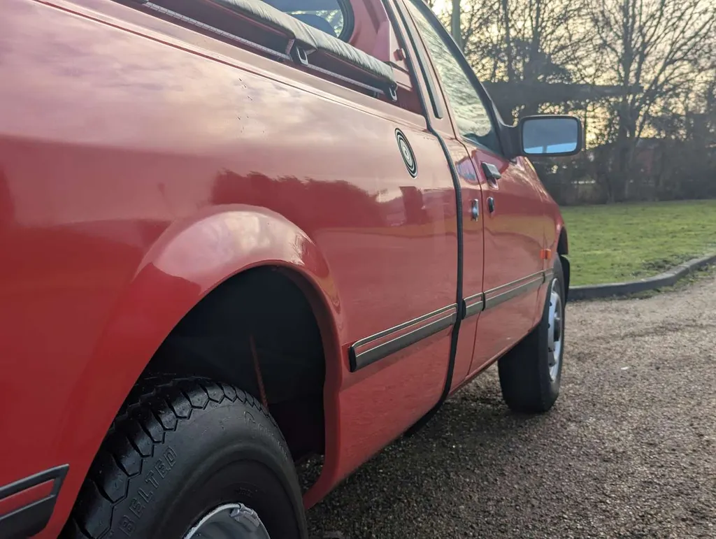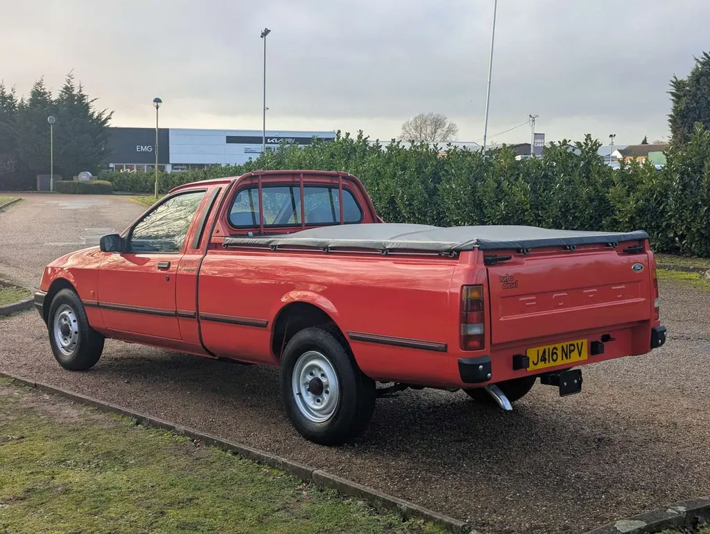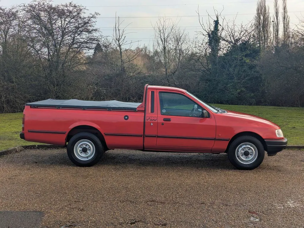 This Ford P100 Turbo Diesel, finished in Radiant Red with correct P100 decals, has been with its latest keeper for 12 years, and it comes with an MoT to 22nd December 2026. The increasingly rare pick-up is equipped with a full tonneau cover and load area rubber mat, and its cab interior is in impressively clean condition. The odometer shows 61,546 miles. It's supplied with owner's handbook pack, sales brochure, old tax discs, spare keys, and the latest V5C, which indicates 3 former keepers. It was first registered on 9th May 1992. Not specified