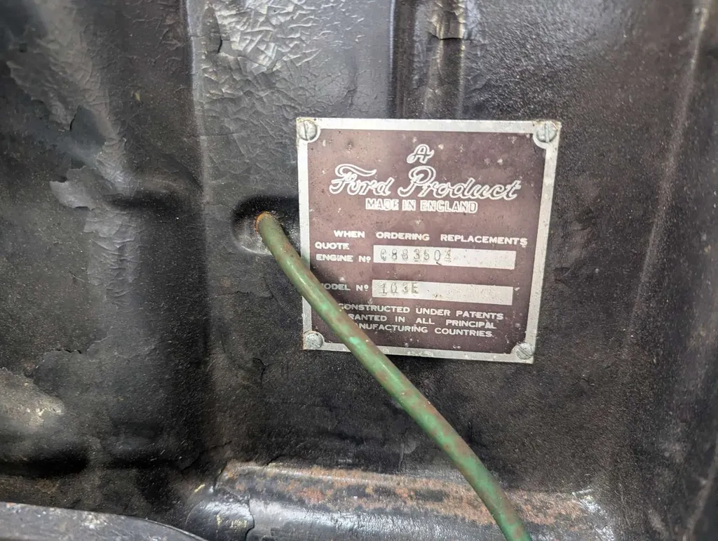 1172cc, manual. This Ford Popular 103E was registered on 1st March 1956 and its V5C records just two former keepers. The first owner held onto the car for 25 years and the second for another 40. It survives in smart condition inside and out, and has been upgraded with 12-volt electrics and flashing indicators for improved safety. A stainless steel exhaust is fitted.The car had an advisory-free MoT which expired in August. The vendor tells us that it had been driving well until he recently changed the head gasket, at which point it developed what he believes is a timing problem that he has not been able to resolve. As a result, the Popular is currently a non-runner and is being offered as a project requiring mechanical attention. Not specified