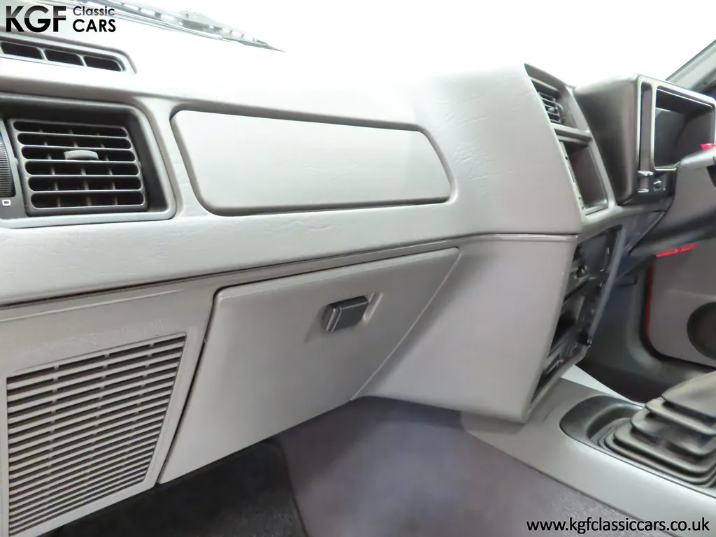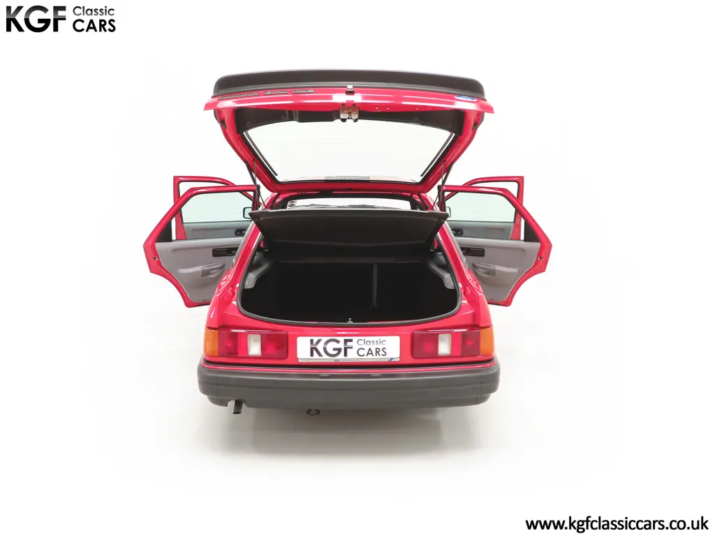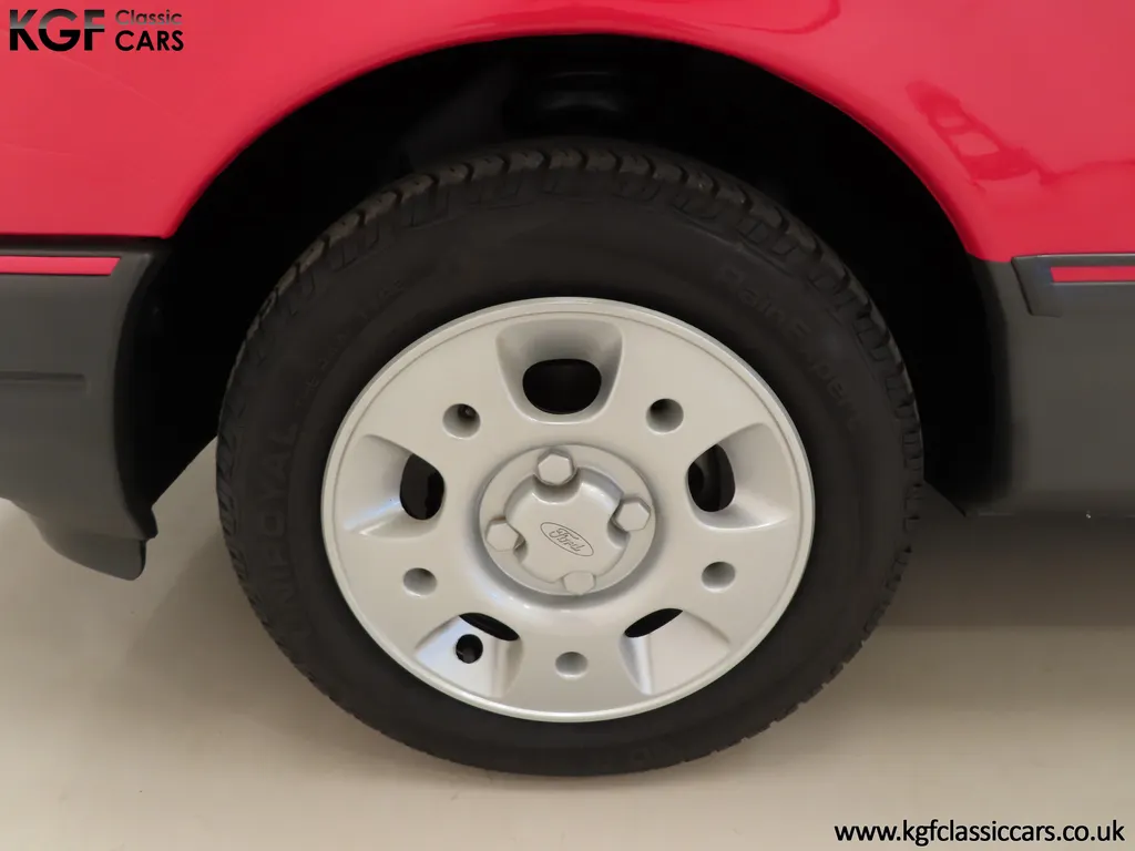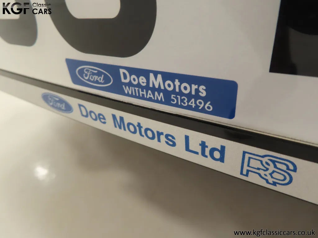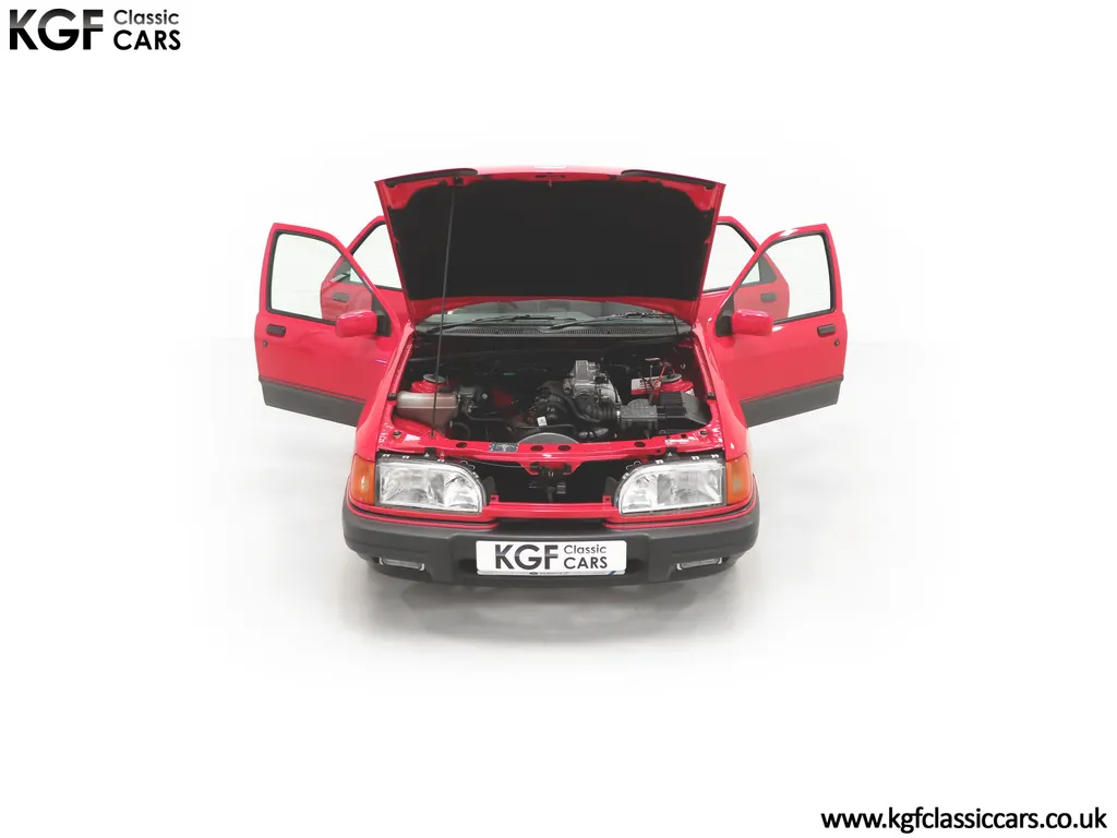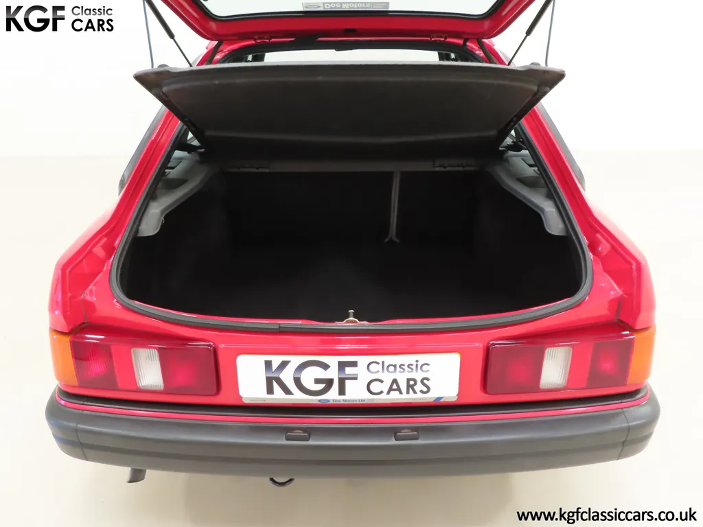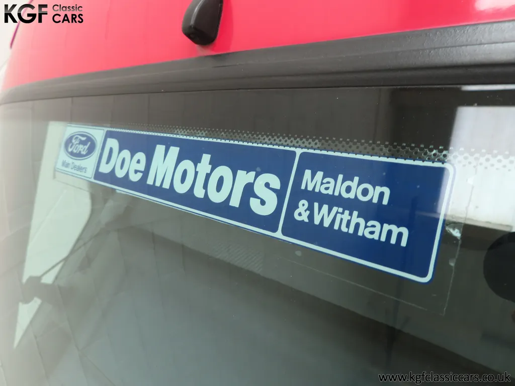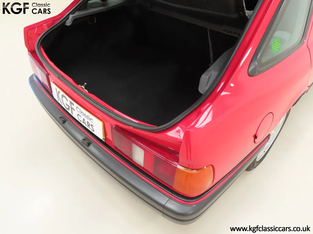 FOR SALE A spectacular original Ford Sierra 2.0i GLS with just 49,196 miles from new. EQUIPMENT Fully independent sports suspension, unique GLS wheel covers, Black tailgate spoiler, Cobra red inserts to bumpers and bodyside mouldings, Mid-grey treatment below bodyside mouldings, colour coded remote control heated door mirrors, halogen headlamps, integral front fog lamps, tilt/slide screened glass sunroof, digital clock, tachometer, central locking, electric front windows, Ford ESRT32PS FM radio cassette. Dealer Options: Tailored Ford carpet mats. EXTERIOR The Ford Rosso Red paintwork, (Code R 5) has a stunning deep glossy shine and the correct Mid Grey paintwork to the lower sections of the car remains exactly as Ford intended. Close scrutiny reveals noting other than a few frontal stone chips and markings, utterly insignificant and forgiven considering the originality. Garaged from new, the body panels are factory fitment and often prone weak areas such as wheel arches and sills are amazing and have never been repaired. The underside is absolutely original, unmolested and structural integrity is perfect with even factory stamps to suspension component still visible. Factory etched glass, genuine Ford lenses throughout, Carello headlamps and supplying dealer number plates and rear screen sticker all present. INTERIOR The Strobe trim in Shadow Grey colour scheme, (Code LD), is spotlessly clean and the seats have firm bolsters and bases retaining correct shape. There is a small seam repair to the driver’s seat and the door cards have slight shrinkage to the fabric, a common occurrence. A small nick to the driver’s door card is visible. The colour-keyed velour carpet is immaculate and free from wear and the neutral tone headlining is perfect. The pristine dashboard has no cracks, distortion or fading. All switchgear and equipment operates perfectly, as does the original Ford ESRT32PS radio with joystick control. The immaculate luggage area has unmarked carpeting, an undamaged circular ply-board wheel cover, Ford jack and factory build sticker to the pristine boot floor. ENGINE & TRANSMISSION The 2.0 EFi engine developing 118bhp and 160Nm of torque, achieving a top speed of 118mph and 0-60mph in 9.3 seconds. Lifting the bonnet reveals a beautifully clean engine bay, completely standard and unmolested. The VIN and data plates and original stickers and labels remain. Factory fitted wings show clearly defined Ford emblem and date stamps owing to first paint credentials, as does the slam panel with factory seam sealer. Genuine Motorcraft service items and consumables are plentiful. The engine breathes through a completely standard genuine Ford exhaust system and the car runs and performs beautifully. The five-speed Type-9 gearbox is light and precise. WHEELS, TYRES & BRAKES The 14” X 5½” steel wheels wear the correct pristine GLS trims. Matching replacement premium Uniroyal 195/60 R14 tyres have plenty of tread and the spare wheel wears the original 1988 Uniroyal Rallye tyre, unused and still with coloured banding! The dual line servo assisted G-Valve brakes with ventilated 10.5” front discs and rear drums operate perfectly having enjoyed conscientious maintenance. HISTORY FILE This Sierra has been owned by Steve, Operations Manager at KGF Classic Cars, for the last seven years. Over the years, the car has appeared on our social media channels. The car was supplied new by Ford Main Dealer, Doe Motors of Maldon in Essex, and registered new on the 18th April 1988. The first owner, Mr Gillman, owned the car for around a year when in 1989 it returned to the supplying dealer to be sold again. The used vehicle order form and sales invoice from Doe Motors made out to second owner, Mr Cameron, is in the history file. The car was put into dry storage in around the year 2000 following the owner passing and his wife feeling unable to part with her late husband’s car. It was only in 2018 and upon Mrs Cameron’s passing that the car was discovered with just over 40,000 miles on the clock. At this point, KGF Classic Cars were offered the car and upon its arrival, Steve insisted it was not to be put on sale, because he was having it! After full recommissioning, the car was used regularly in dry weather and has been thoroughly enjoyed for the last seven years. The car was also displayed at the 40th anniversary celebration at the Ford of Britain Dunton Campus. A major service was carried out in March 2025 and cambelt renewal in September 2025. The original Doe Motors document wallet houses the service book with 11 stamped entries, handbooks, guides and dealership literature as well as two keys. A large history folder holds many invoices and receipts for servicing as well as all MOT certificates since the first in 1991 to 2000 when the car went into storage. All further MOT certificates and service invoices from 2018 to present fully verify the 49,196 miles from new. MOT October 2026, HPI Clear.
