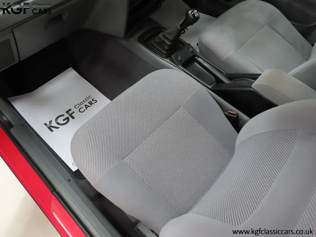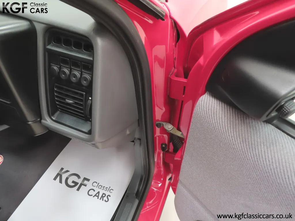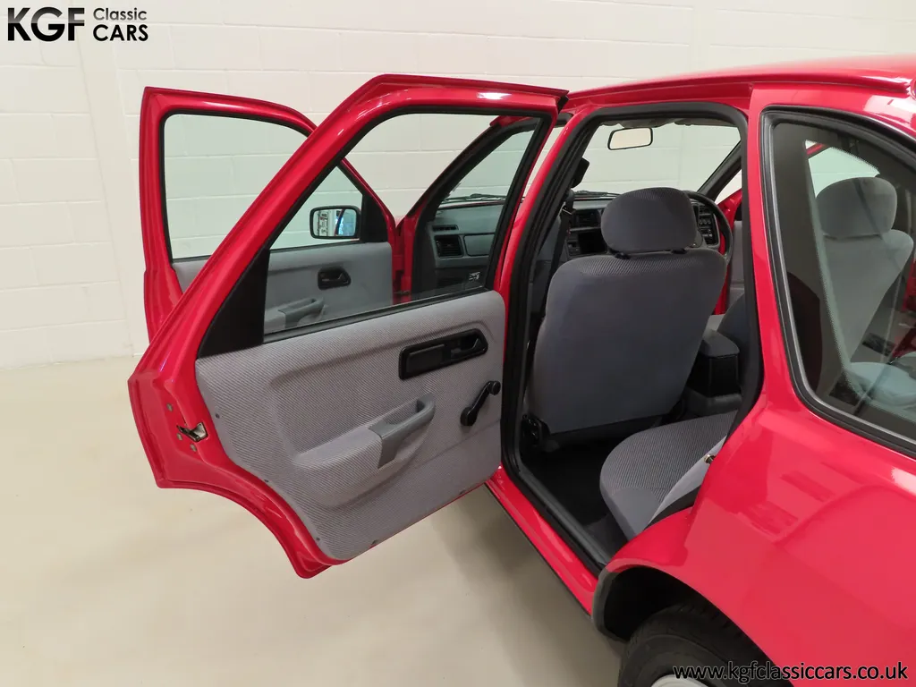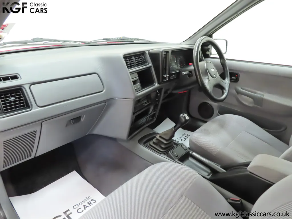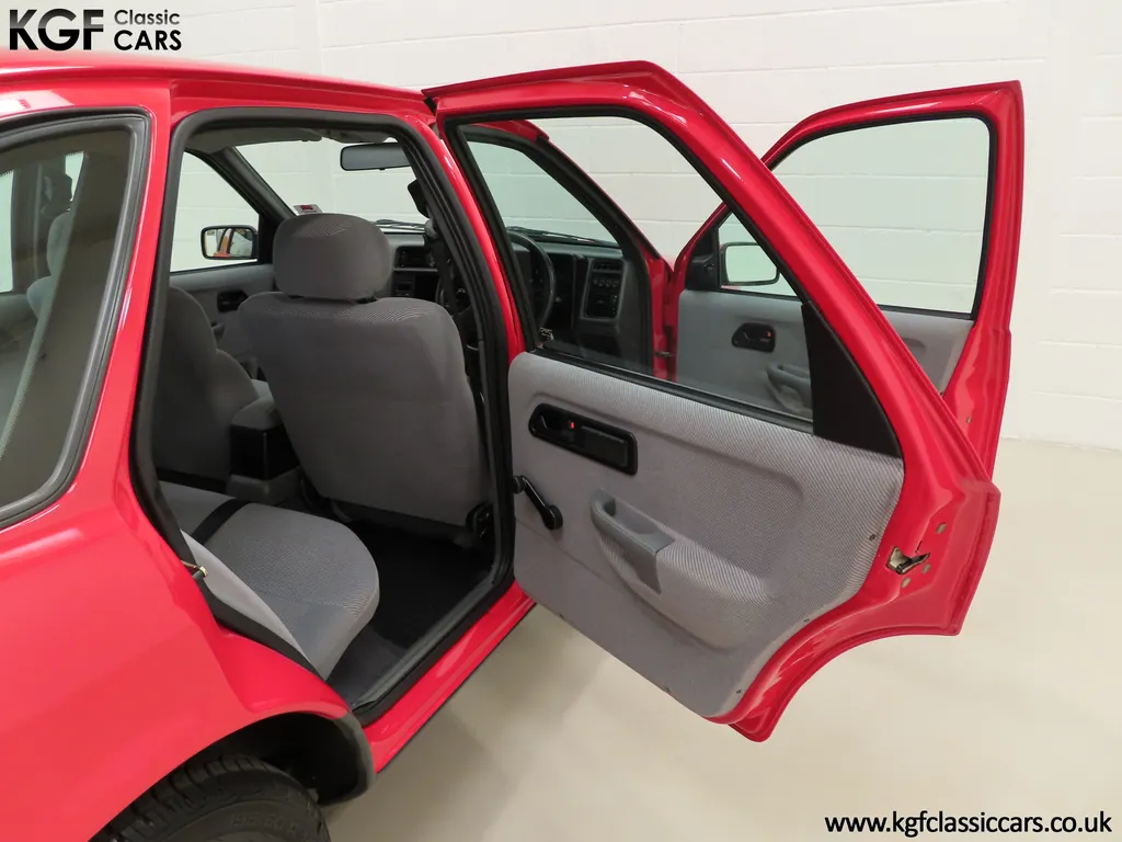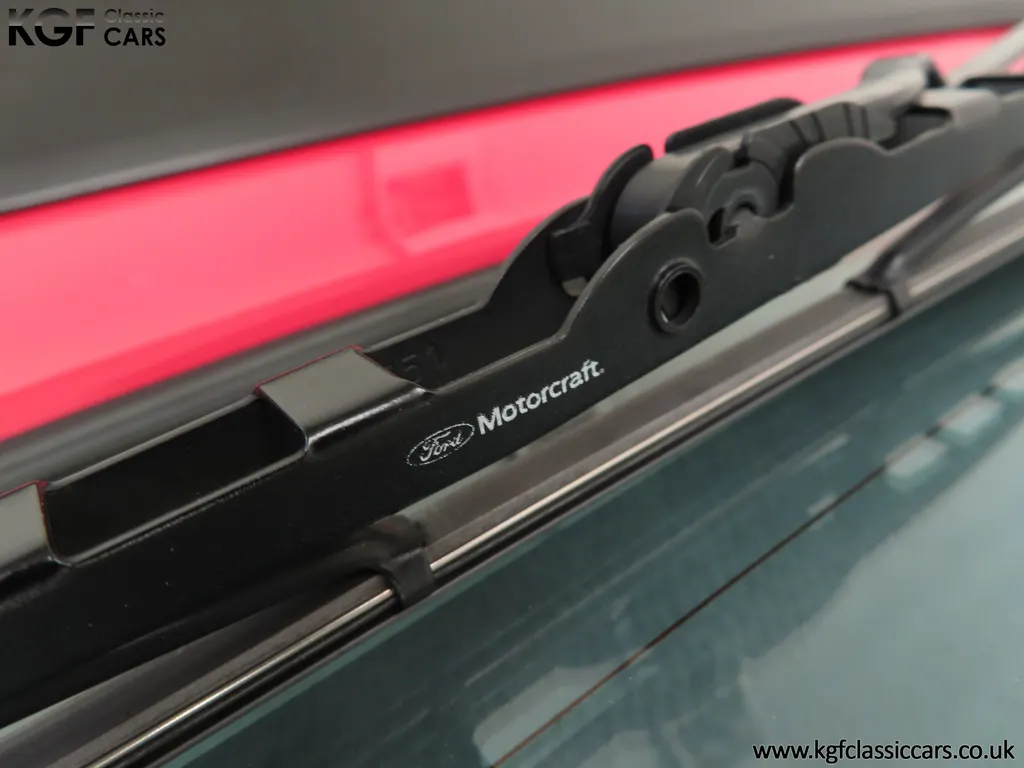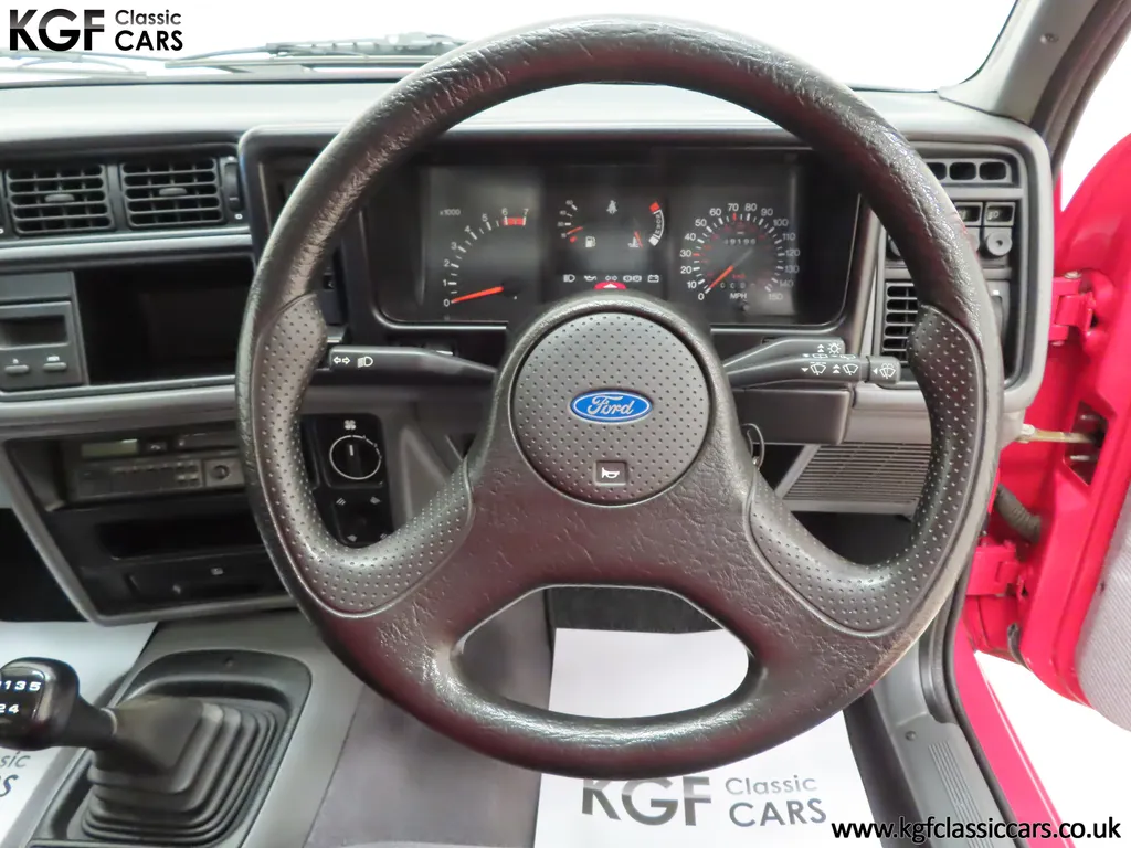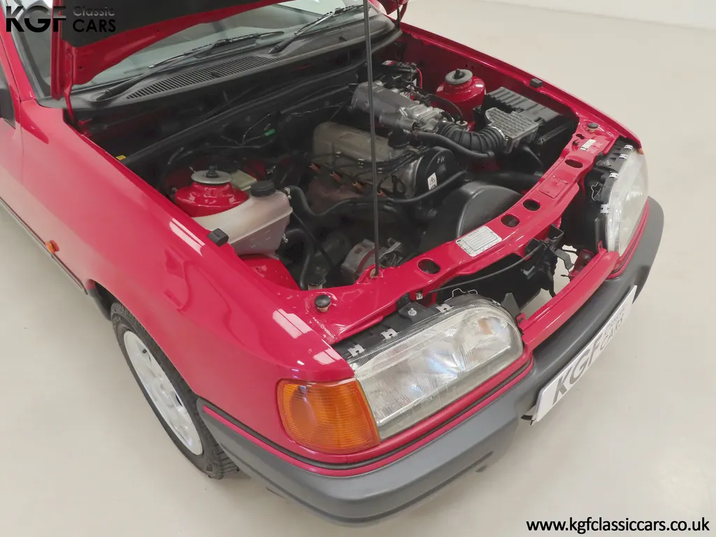 FOR SALE A spectacular original Ford Sierra 2.0i GLS with just 49,196 miles from new. EQUIPMENT Fully independent sports suspension, unique GLS wheel covers, Black tailgate spoiler, Cobra red inserts to bumpers and bodyside mouldings, Mid-grey treatment below bodyside mouldings, colour coded remote control heated door mirrors, halogen headlamps, integral front fog lamps, tilt/slide screened glass sunroof, digital clock, tachometer, central locking, electric front windows, Ford ESRT32PS FM radio cassette. Dealer Options: Tailored Ford carpet mats. EXTERIOR The Ford Rosso Red paintwork, (Code R 5) has a stunning deep glossy shine and the correct Mid Grey paintwork to the lower sections of the car remains exactly as Ford intended. Close scrutiny reveals noting other than a few frontal stone chips and markings, utterly insignificant and forgiven considering the originality. Garaged from new, the body panels are factory fitment and often prone weak areas such as wheel arches and sills are amazing and have never been repaired. The underside is absolutely original, unmolested and structural integrity is perfect with even factory stamps to suspension component still visible. Factory etched glass, genuine Ford lenses throughout, Carello headlamps and supplying dealer number plates and rear screen sticker all present. INTERIOR The Strobe trim in Shadow Grey colour scheme, (Code LD), is spotlessly clean and the seats have firm bolsters and bases retaining correct shape. There is a small seam repair to the driver’s seat and the door cards have slight shrinkage to the fabric, a common occurrence. A small nick to the driver’s door card is visible. The colour-keyed velour carpet is immaculate and free from wear and the neutral tone headlining is perfect. The pristine dashboard has no cracks, distortion or fading. All switchgear and equipment operates perfectly, as does the original Ford ESRT32PS radio with joystick control. The immaculate luggage area has unmarked carpeting, an undamaged circular ply-board wheel cover, Ford jack and factory build sticker to the pristine boot floor. ENGINE & TRANSMISSION The 2.0 EFi engine developing 118bhp and 160Nm of torque, achieving a top speed of 118mph and 0-60mph in 9.3 seconds. Lifting the bonnet reveals a beautifully clean engine bay, completely standard and unmolested. The VIN and data plates and original stickers and labels remain. Factory fitted wings show clearly defined Ford emblem and date stamps owing to first paint credentials, as does the slam panel with factory seam sealer. Genuine Motorcraft service items and consumables are plentiful. The engine breathes through a completely standard genuine Ford exhaust system and the car runs and performs beautifully. The five-speed Type-9 gearbox is light and precise. WHEELS, TYRES & BRAKES The 14” X 5½” steel wheels wear the correct pristine GLS trims. Matching replacement premium Uniroyal 195/60 R14 tyres have plenty of tread and the spare wheel wears the original 1988 Uniroyal Rallye tyre, unused and still with coloured banding! The dual line servo assisted G-Valve brakes with ventilated 10.5” front discs and rear drums operate perfectly having enjoyed conscientious maintenance. HISTORY FILE This Sierra has been owned by Steve, Operations Manager at KGF Classic Cars, for the last seven years. Over the years, the car has appeared on our social media channels. The car was supplied new by Ford Main Dealer, Doe Motors of Maldon in Essex, and registered new on the 18th April 1988. The first owner, Mr Gillman, owned the car for around a year when in 1989 it returned to the supplying dealer to be sold again. The used vehicle order form and sales invoice from Doe Motors made out to second owner, Mr Cameron, is in the history file. The car was put into dry storage in around the year 2000 following the owner passing and his wife feeling unable to part with her late husband’s car. It was only in 2018 and upon Mrs Cameron’s passing that the car was discovered with just over 40,000 miles on the clock. At this point, KGF Classic Cars were offered the car and upon its arrival, Steve insisted it was not to be put on sale, because he was having it! After full recommissioning, the car was used regularly in dry weather and has been thoroughly enjoyed for the last seven years. The car was also displayed at the 40th anniversary celebration at the Ford of Britain Dunton Campus. A major service was carried out in March 2025 and cambelt renewal in September 2025. The original Doe Motors document wallet houses the service book with 11 stamped entries, handbooks, guides and dealership literature as well as two keys. A large history folder holds many invoices and receipts for servicing as well as all MOT certificates since the first in 1991 to 2000 when the car went into storage. All further MOT certificates and service invoices from 2018 to present fully verify the 49,196 miles from new. MOT October 2026, HPI Clear.