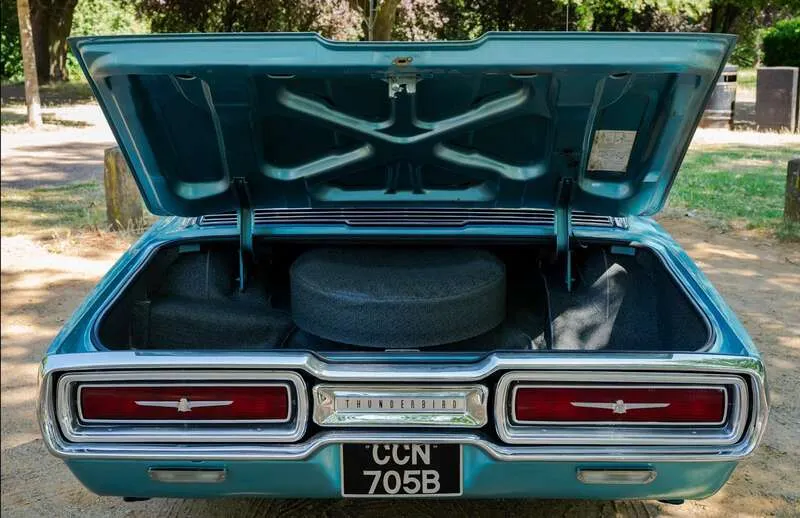 This lot will be auctioned via Iconic Auctioneers, The Classic Sale at the NEC Classic Motor Show 2025 on Sunday the 9th of November, NEC, Birmingham, B40 1NT. Introduced in 1964 as part of Ford’s fourth generation of the Thunderbird range, this stylish personal luxury coupé embodied the American dream, offering effortless cruising and refined design in equal measure Imported by our vendor in 2021, the vehicle has been subject to a five year restoration including a bare-metal respray, new rear quarter panels, rocker ends and floor panels, with paintwork completed by Smithy’s Body and Paint. Extensive recent servicing by Rocketville Classic Cars & Vintage Ltd and Cartune UK includes full fluid changes, new ignition components, rebuilt systems, and detailed underbody protection Finished in its original Patrician Green over a Light Turquoise vinyl-trimmed interior, complemented by teal-coloured carpets and chrome detailing. It rides on 15" steel wheels with chrome ‘roulette’ hubcaps and Vitour Galaxy whitewall tyres Powered by a naturally aspirated 390cu in (6.4-litre) V8 paired to a 3-speed Cruise-O-Matic automatic transmission, delivering smooth power to the rear wheels Fitted with a custom-made Pipecraft dual-exit exhaust system and period correct teal carpets, with the front seats retrimmed in new foam and OEM-spec vinyl. The power steering pump has been rebuilt and new shock absorbers, wiring and lighting installed Supplied with a spare wheel, original jack, Ford Division Bill of Sale dated 1963, the original build sheet, Ford parts catalogue, 1964 shop manual, full import documents, restoration invoices and over 900 photographs A well sorted, elegant American cruiser ready for immediate enjoyment, this Thunderbird offers an authentic blend of mid-century design, relaxed performance and detailed restoration quality