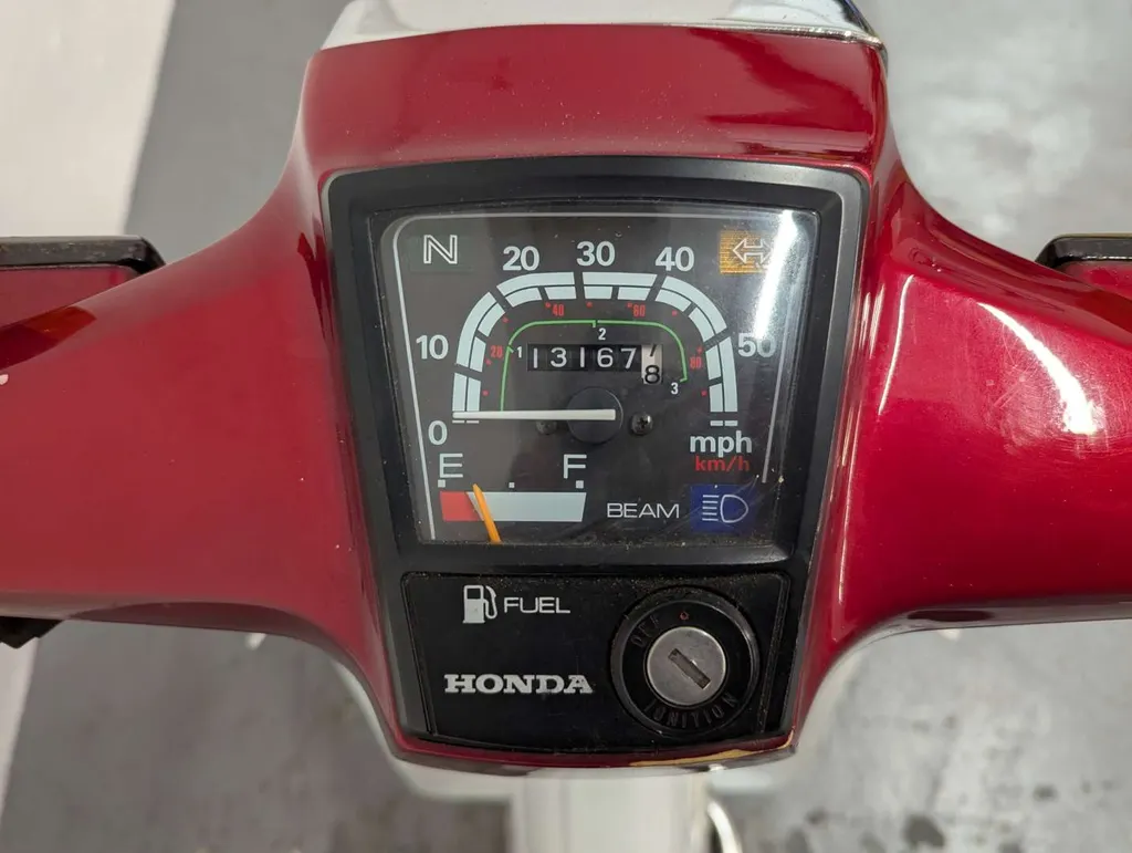 This red-and-white Honda C90 has an MoT to 28th September 2026, and its odometer is showing 13,167 miles. The vendor describes it has starting well, and an oil change was reportedly carried out at the latest MoT. The V5C indicates 4 former keepers since first registration on 20th November 1996.It comes with a Haynes manual and an original tool kit. Not specified