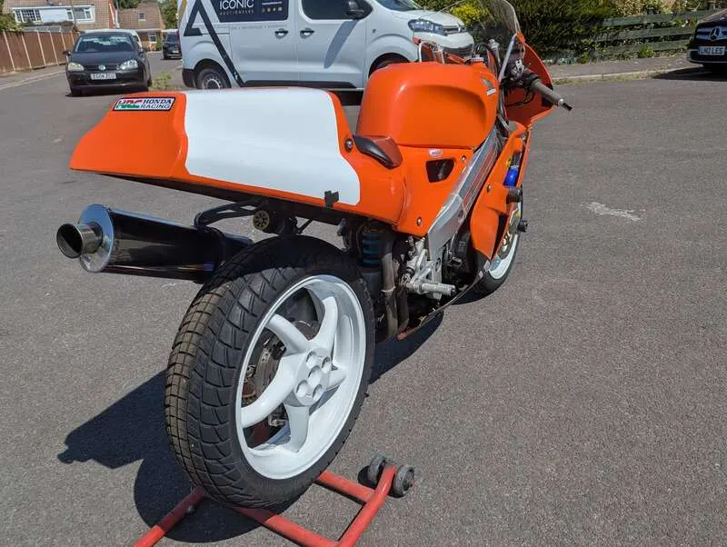 This lot will be auctioned via Iconic Auctioneers, The Iconic Sale at Race Retro 2026 - Motorcycles on Sunday the 22nd of February, Stoneleigh Park, Stoneleigh Rd, Coventry, CV8 2LG. In 1975, changes to motorcycle licensing requirements in Japan resulted in the 400cc class being the main market for Japanese riders At the forefront of the sportsbike class was the Honda VFR400R which, over four generations, created a cult following that thrives to this day This 1991 NC30 became known as the 'mini RC30' due to the bike bearing a striking resemblance to Honda's legendary superbike This example has been converted for track/race-use and has some great track orientated upgrades - K-tech forks, Nitron rear shock absorber and upgraded brakes with a radial master cylinder On offer from long-term storage, the bike is in very good condition but some recommissioning will be required The spares package includes a spare engine, wheels with tyres and various other parts including fork springs and brake parts Supplied with a current V5C and some technical information along with paddock stands Offered without reserve