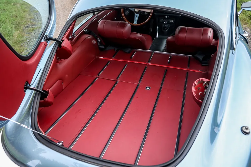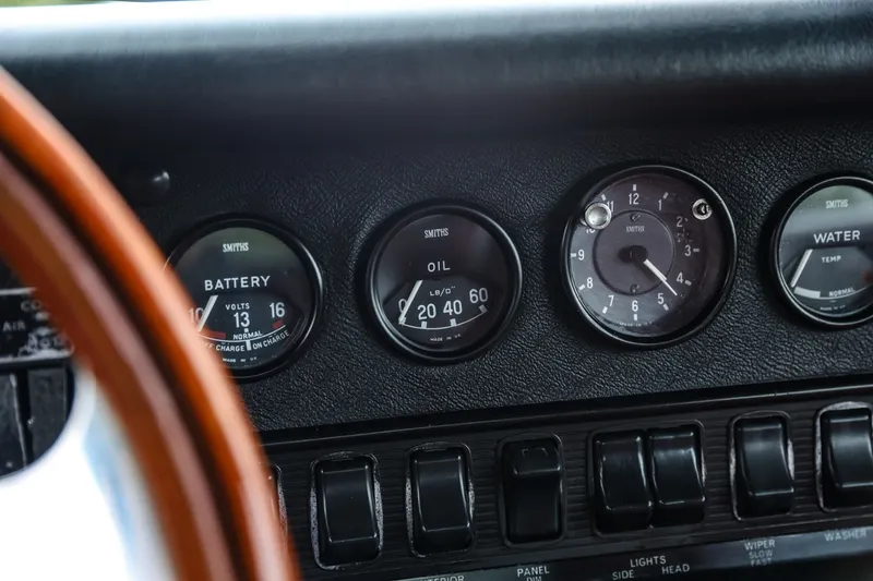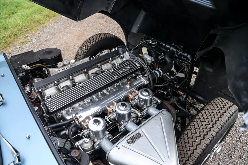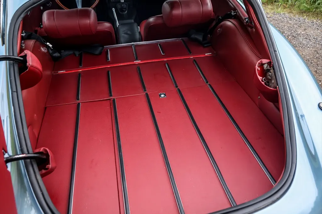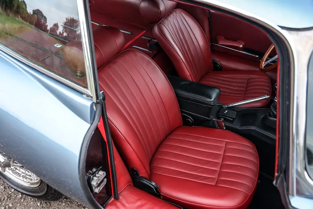 The E-Type Jaguar debuted at the 1961 Geneva Motorshow as a replacement for the hugely successful Jaguar XK150. The new E-Type was nothing short of a revelation, with its heady blend of supercar performance, breath taking styling and low price tag, the newcomer left its rivals reeling and customers desperate to own one. Designed by William Lyons and Malcolm Sayer, the E-Type was launched in 1961 in both fixed head coupe and roadster form with design inspiration taken from the Le-Mans winning D-Type sports racer. Built around a steel monocoque chassis with a front sub-frame to cradle the engine, all-round independent suspension using coil springs and dampers to the rear with torsion bars and wishbones to the front. Brakes were Dunlop discs all round, mounted inboard to the rear alongside the differential to reduce un-sprung weight. Powered by Jaguar’s XK 3.8 litre twin-cam straight six engine, the E-Type offered breath taking performance to rival both Ferrari and Aston Martin. The 3.8 litre engine was increased to 4.2 litres in October 1964. The 4.2 litre engine produced 265bhp and boasted a top speed of 150 mph and a 0-60 mph time of just under 7 secs. A 2+2 version of the coupe was introduced in 1966 with a 9” longer body and offers seating for four occupants. The Jaguar E-Type 4.2 Series II (chassis number 1R26588) offered here at Autostorico is finished in Opalescent Blue metallic with red leather interior. This original LHD example was manufactured on 8th July 1969 and supplied new by British Leyland New York to its first owner. Remaining in the USA until 1995 when it returned to the UK. Spending its early life in the USA before returning to UK shores in 1995. Purchased by its current owner who undertook a sympathetic restoration. Works included removing the engine and gearbox and stripping the whole body, before a respray was carried out. The car was also subject to a full mechanical overhaul including engine, gearbox, and suspension rebuild. Other notable works included overhauling the braking system and interior re-trim. Offered for sale with a current V5 registration document and history file including numerous invoices, heritage certificate and other related material. Viewing strictly by appointment only.