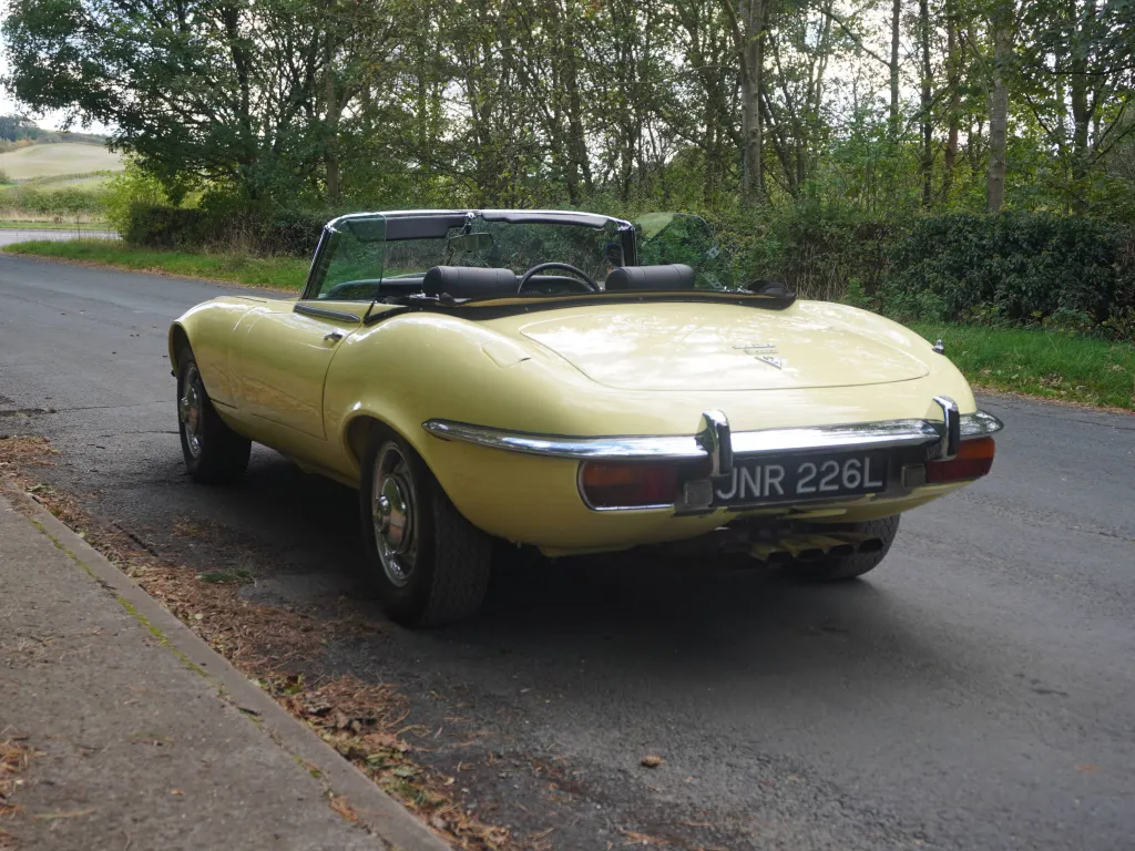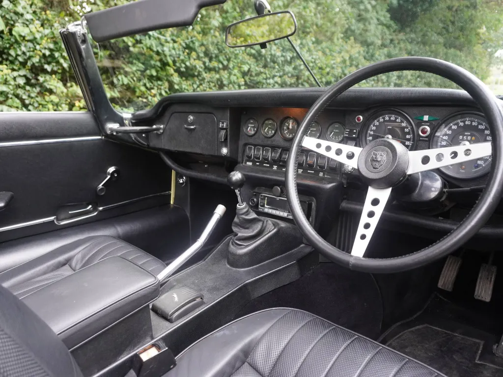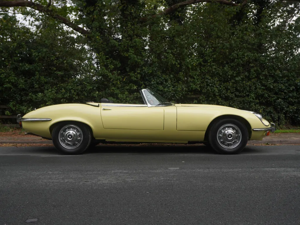 This incredibly correct Jaguar E-Type Series III V12 is a matching numbers UK Home Market car. Manufactured on the 4th October 1972, finished in Primrose with Black trim and manual transmission, the V12 was supplied new by Auto Centre. After 42 years on UK soil, the E-Type was exported to Modena, a beacon of racing and motoring heritage in Italy. When in Italy, the V12 was subject to a high level of mechanical recommissioning to include rebuilding the cylinders heads. A photo record and extensive file of invoices from its time in Italy record a significant program of work on a very original car. On the cars return to the U.K. it was put through a major program of work with our sister company Malton Coachworks. The E-Type was essentially stripped back to bare shell and any evident corrosion was removed. The sills were replaced, a new floor assembly fitted and various panel work carried out. The bare tub was then prepared for painting in the cars original colour and as result the E-Type has a pristine beautifully painted underbody finish. The front space frame was replaced and re-fitted to the body tub, the bare bulk head prepared and re-painted and on build up the car fitted with new rubber seals and mechanically overhauled as required with many parts replaced. Mechanical parts a full new fuel pipe kit, new left and right-hand brake ducts, a complete new wiring loom, a new clutch kit along with flexi hoses, slave and master cylinders, new ball joints, ball joint gaiters, radius arm bushes, anti roll bar link bushes, propshaft universal joints, steering rack mounts and new subframe mountings. Following this extensive bodywork and complete full re-paint, the E-Type presents exceptionally with a stunning, gleaming glass finish. The bodywork is first class, panel gaps excellent and the underbody and engine space frame truly outstanding and as new. Gleaming chromework complements the striking body colour and its period steel wheels with early V12 hub caps and raised digit rear plate give the car a very period feel. Welcoming the driver is a superbly prepared interior with lovely Black leather seats, excellent sill covers and smart carpets, dashboard and steering wheel. All gauges and switch gear work perfectly and the Black mohair hood is superb. The Jaguar E-Type Series 3 V12 manual is the final and most powerful iteration of one of the most iconic grand tourers ever produced, blending Enzo Ferrari's legendary praise for its beauty with a sophisticated V12 powertrain that elevated its performance and refinement. Introduced in 1971 to showcase Jaguar's new 5.3-liter DOHC V12 engine, the Series 3 marked a shift from the earlier inline-six models, offering enhanced speed and luxury while retaining the E-Type's timeless, curvaceous silhouette designed by Malcolm Sayer. Visually, the V12 stands out with flared front wheel arches, a larger chrome grille, plus a prominent "V12" badge on the rear. Behind the wheel, the V12 manual offers a refined grand touring experience: the engine's silky smoothness and torquey low-end pull make it ideal for long hauls, while the manual gearbox adds a mechanical tactility that's pure analogue joy. The 5.3 litre V12 engine is super fit and healthy with excellent oil pressure, the four speed gearbox is smooth with excellent syncro's and the car handles perfectly with superb steering, braking and general handling.