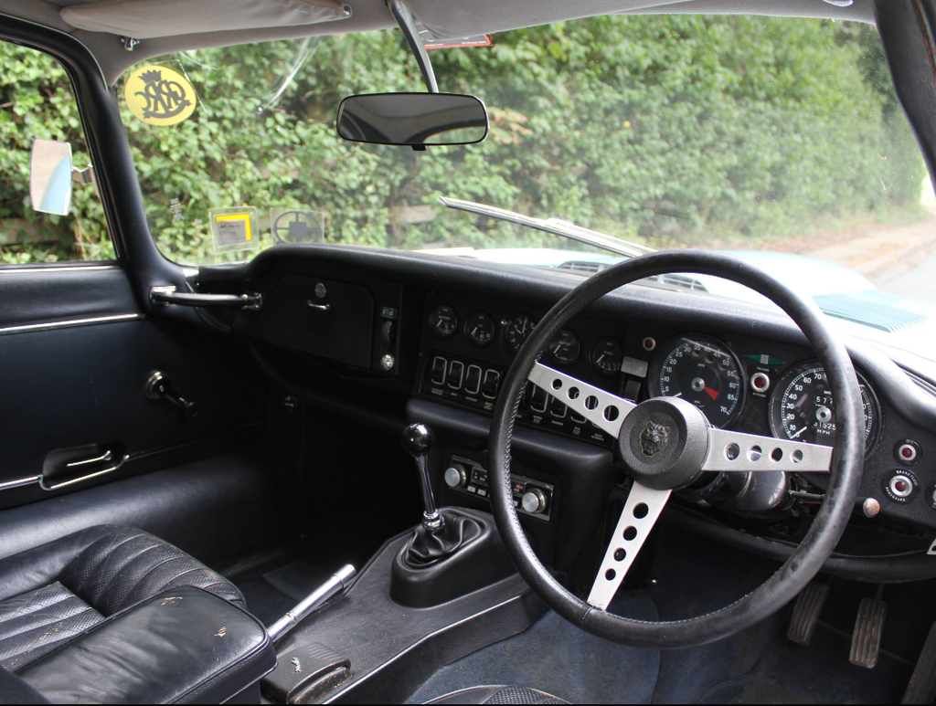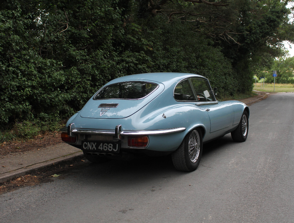 This Jaguar E-Type Series III V12 FHC is a fabulous find, it's a desirable manual transmission car, supplied new in the UK with its original bill of sale still present, original colours and has covered just 52000 miles from new. CNX 468J was supplied new by Henlys (Coventry) Ltd, invoiced on the 13th May 1971 to Elisha Mander Limited in Sutton Coldfield. The Series III V12 was supplied new in Light Blue with Dark Blue leather and charged out including collection charges and road fund license at £3503.03. The original buff log book is present confirming the car changed hands for the first time in 1976, staying in Sutton Coldfield and six years later the E-Type sold to a Doctor, still in Sutton Coldfield. MOT certificates dating back to 1976 are also with the E-Type, mileage recorded at 5 years old was 32304 miles. A handwritten letter confirms that during the early 1970's the owner ran a big end bearing and Jaguar fitted a brand new engine free of charge at around 16000 miles. Interestingly, the letter also confirms the E-Type was being serviced by the Jaguar Works service department during its early life. CNX 468J has never required a major restoration and original cars like this are difficult to find. There is just something special about a car that has never been taken apart before and whilst it has signs age and bodywork blemishes here and there, it is a very solid car with an excellent underside. The E-Type has been maintained well right throughout its life, a huge file of invoices accompanies the car and its clear its been maintained with no expense spared. This V12 drives just right, the engine is outstanding and has only covered 35000 since being supplied and fitted new by Jaguar in the early 1970's, the manual transmission is slick with perfect changes, the power steering ensures the car is effortless to drive and the Series III handles superbly and is absolutely on the button, and ready to go. We can trace exactly where this E-Type has spent its cherished life, having spent its early years in the West Midlands, by 1988 the car was in Ruislip, Middlesex before making its way over to Essex in 1995 where it was until September 2019. We collected the E-Type in Maldon, Essex and quickly sold the car to a local regular customer. Since the late 1990's the car has been maintained by one Essex based specialist and the most significant invoice relates to around 3500 miles back when the rear subframe assembly was removed and the rear brakes completely overhauled. This manual V12 presents well but isn't without its imperfections. It is clear the car has been re-painted in its original Light Blue at some stage and it retains an older, but decent finsih throughout. The body is excellent, it has good gaps, quality straight panels and the underside is structurally excellent, as is the bonnet and spare wheel well. The chrome work is of a good standard and the interior has nicely aged with so much originality. The leather is totally original and has lovely patina, the gauges and dials are all original, in excellent condition and door cards, carpets and headlining are all in nice condition. This is such a genuine, honest car, its ready to drive and enjoy and whilst it has covered ultra-low mileage from new, it has been in regular annual use as proven by 34 MOT certificates with the car. Original, low mileage manual V12's with history dating back to new do not come available very often, this is a rare, special find and a car to be enjoyed.