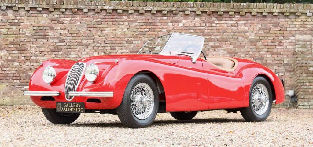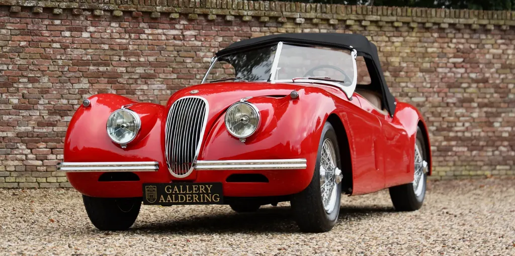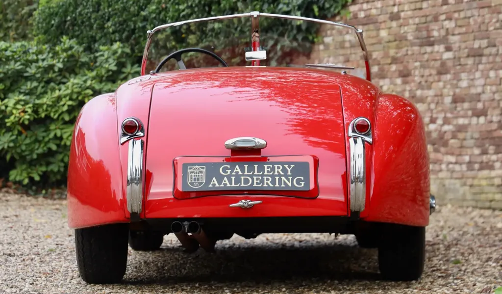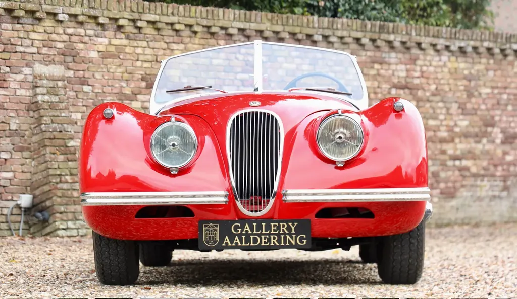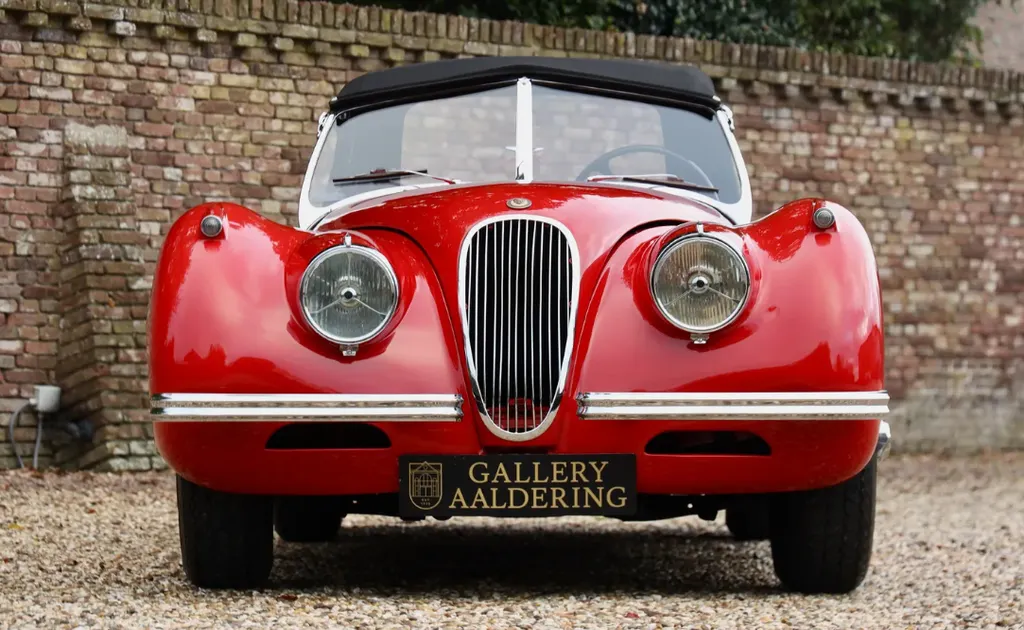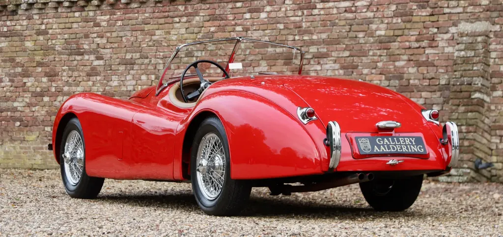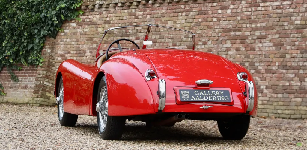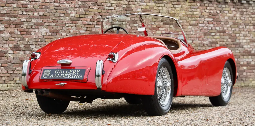 This Jaguar XK120 Open Top Speedster was originally supplied by the Californian, Los Angles based Hornburg Jaguar dealership in 1954. The car still sports the same colour it left the factory with as well as having retained its original engine. In other words, this is a matching colour and numbers example. The car has already been restored and is in good shape. Let us start underneath with our description. The chassis is of course completely rust-free and looks good. The bodywork has been very well looked after with only slight signs of use. The correctly aligned panelwork is nice and thin. The recently replaced and well-fitting hood is easy to operate. The hood frame is also up to standard. The red finish was expertly reapplied and still presents neatly with only a few blemishes detected. The chrome wire wheels, bumpers and other brightwork all look very presentable. Inside the car, we find nicely and ever so slightly worn beige leather upholstery. The seats are comfortable. The walnut burr dash looks stunning. The original gauges are clear to read and all the original controls are in a good state. The engine and transmission have been rebuilt. The car has the use of a 3.4-litre straight-six engine, producing 160 bhp transferred to the rear wheels via a manual 4-speed gearbox. The gear shift is smooth with ratios supremely suited to the engine. Both the well-maintained brakes and suspension perform their respective jobs more than adequately. The good quality tyres with ample tread also contribute to the car’s overall good driving calibre. The accompanying Jaguar Heritage Certificate confirm the matching colours and numbers. This Jaguar XK 120 OTS, ready to be enjoyed for many more miles, is from a time when Jaguar ruled the British car industry supremely, whilst the whole world queuing up to lay their hands on the fast wild cats from Coventry! Gallery Aaldering is Europe’s leading Classic Cars specialist since 1975! Always 400 Classic and Sportscars in stock, please visit www.gallery-aaldering.com for the current stock list (all offered cars are available in our showroom) and further information. We are located near the German border, 95 km from Düsseldorf and 90 km from Amsterdam. So easy traveling by plane, train, taxi and car. Transport and worldwide shipping can be arranged. No duties/import costs within Europe. We buy, sell and provide consignment sales (selling on behalf of the owner). We can arrange/provide registration/papers for our German (H-Kennzeichen, TÜV, Fahrzeugbrief, Wertgutachten usw.) and Benelux customers. Gallery Aaldering, Arnhemsestraat 47, 6971 AP Brummen, The Netherlands. Tel: 0031-575-564055. Quality, experience and transparency is what sets us apart. We look forward to welcoming you in our showroom