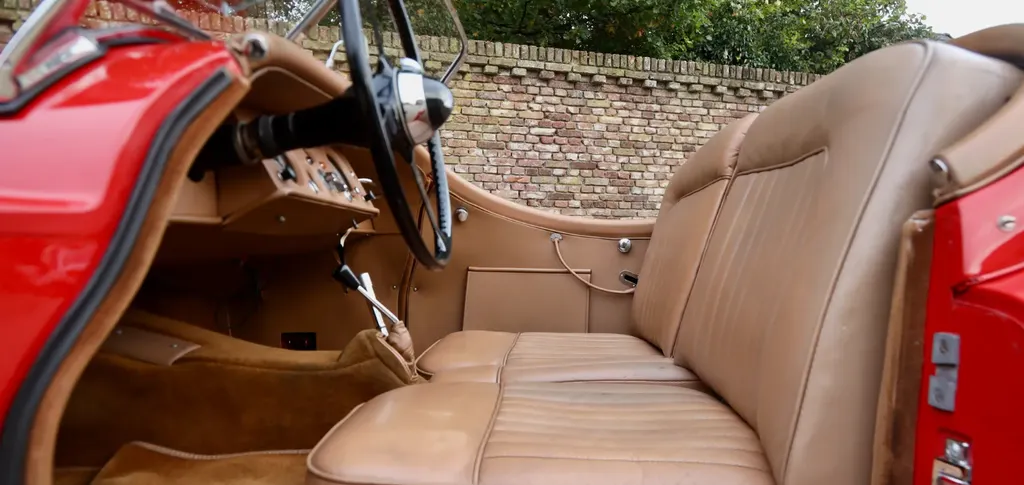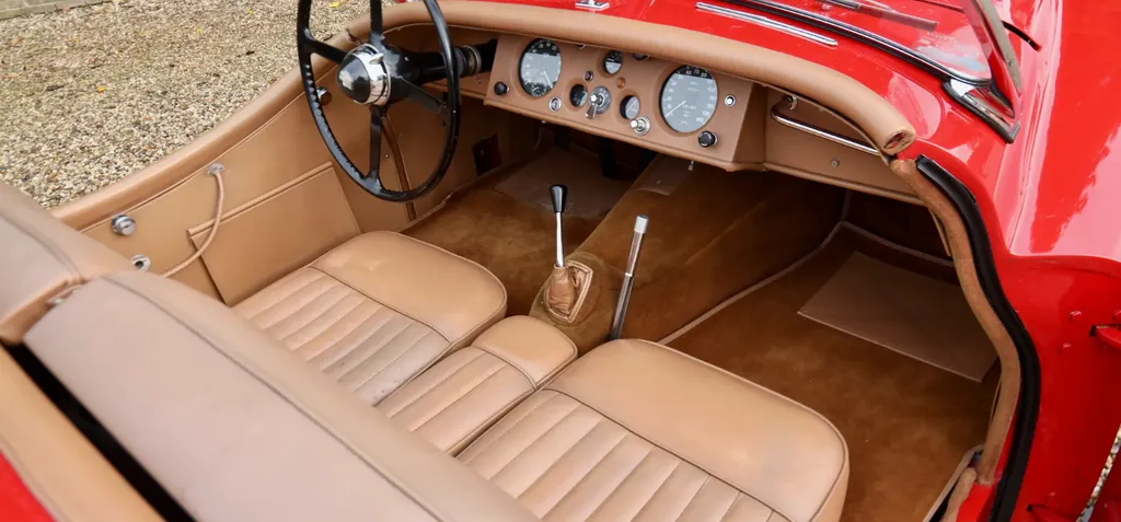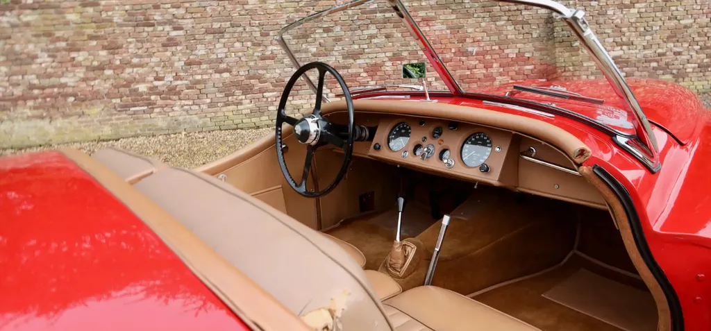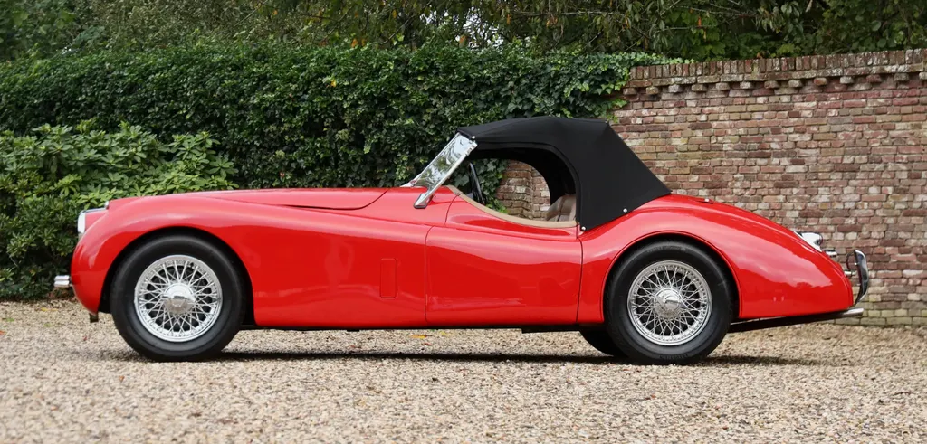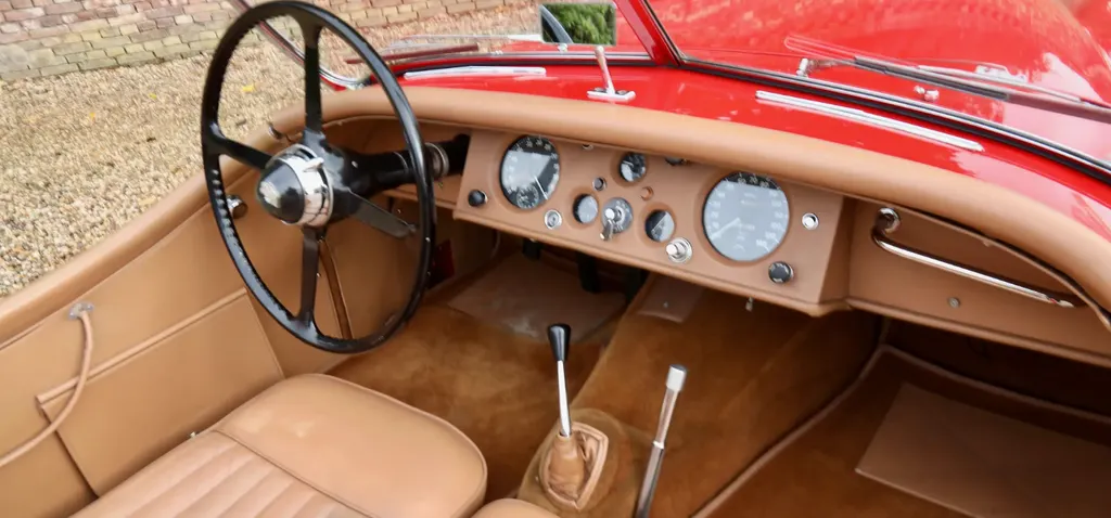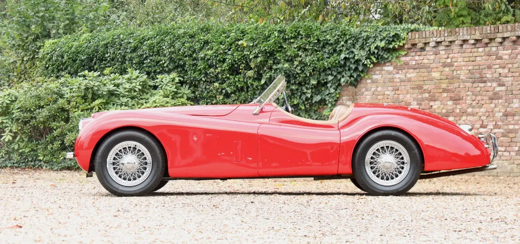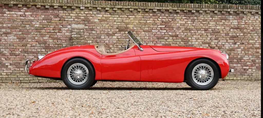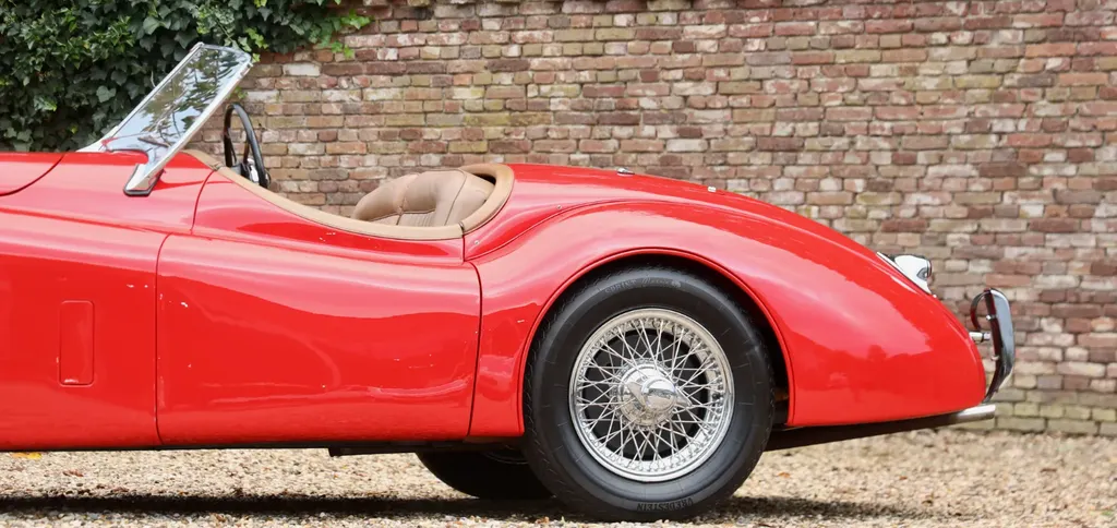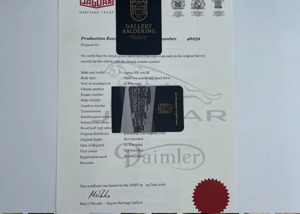 This Jaguar XK120 Open Top Speedster was originally supplied by the Californian, Los Angles based Hornburg Jaguar dealership in 1954. The car still sports the same colour it left the factory with as well as having retained its original engine. In other words, this is a matching colour and numbers example. The car has already been restored and is in good shape. Let us start underneath with our description. The chassis is of course completely rust-free and looks good. The bodywork has been very well looked after with only slight signs of use. The correctly aligned panelwork is nice and thin. The recently replaced and well-fitting hood is easy to operate. The hood frame is also up to standard. The red finish was expertly reapplied and still presents neatly with only a few blemishes detected. The chrome wire wheels, bumpers and other brightwork all look very presentable. Inside the car, we find nicely and ever so slightly worn beige leather upholstery. The seats are comfortable. The walnut burr dash looks stunning. The original gauges are clear to read and all the original controls are in a good state. The engine and transmission have been rebuilt. The car has the use of a 3.4-litre straight-six engine, producing 160 bhp transferred to the rear wheels via a manual 4-speed gearbox. The gear shift is smooth with ratios supremely suited to the engine. Both the well-maintained brakes and suspension perform their respective jobs more than adequately. The good quality tyres with ample tread also contribute to the car’s overall good driving calibre. The accompanying Jaguar Heritage Certificate confirm the matching colours and numbers. This Jaguar XK 120 OTS, ready to be enjoyed for many more miles, is from a time when Jaguar ruled the British car industry supremely, whilst the whole world queuing up to lay their hands on the fast wild cats from Coventry! Gallery Aaldering is Europe’s leading Classic Cars specialist since 1975! Always 400 Classic and Sportscars in stock, please visit www.gallery-aaldering.com for the current stock list (all offered cars are available in our showroom) and further information. We are located near the German border, 95 km from Düsseldorf and 90 km from Amsterdam. So easy traveling by plane, train, taxi and car. Transport and worldwide shipping can be arranged. No duties/import costs within Europe. We buy, sell and provide consignment sales (selling on behalf of the owner). We can arrange/provide registration/papers for our German (H-Kennzeichen, TÜV, Fahrzeugbrief, Wertgutachten usw.) and Benelux customers. Gallery Aaldering, Arnhemsestraat 47, 6971 AP Brummen, The Netherlands. Tel: 0031-575-564055. Quality, experience and transparency is what sets us apart. We look forward to welcoming you in our showroom