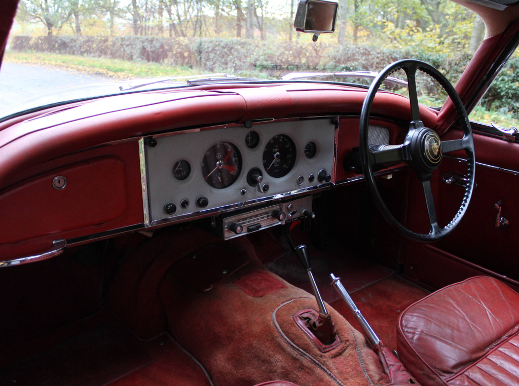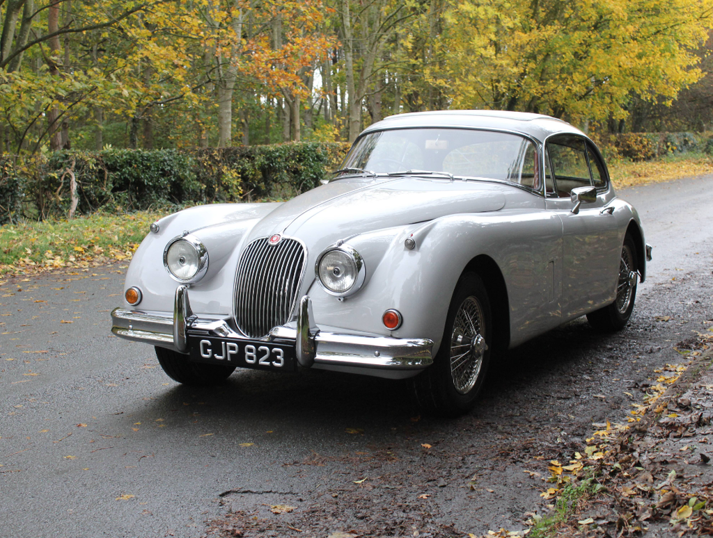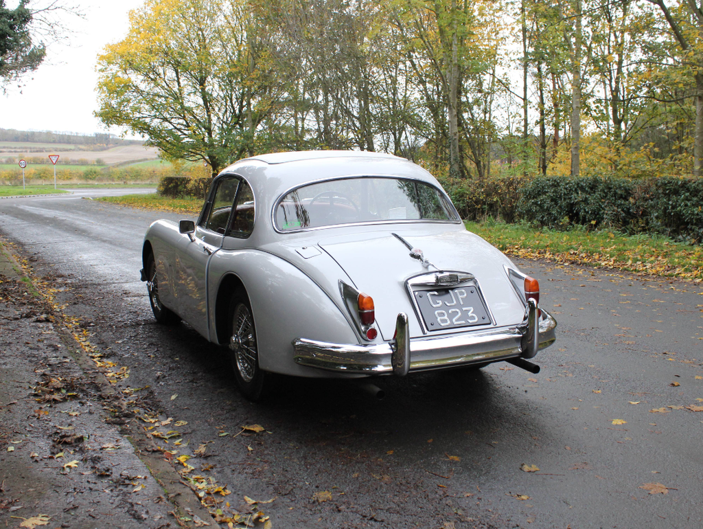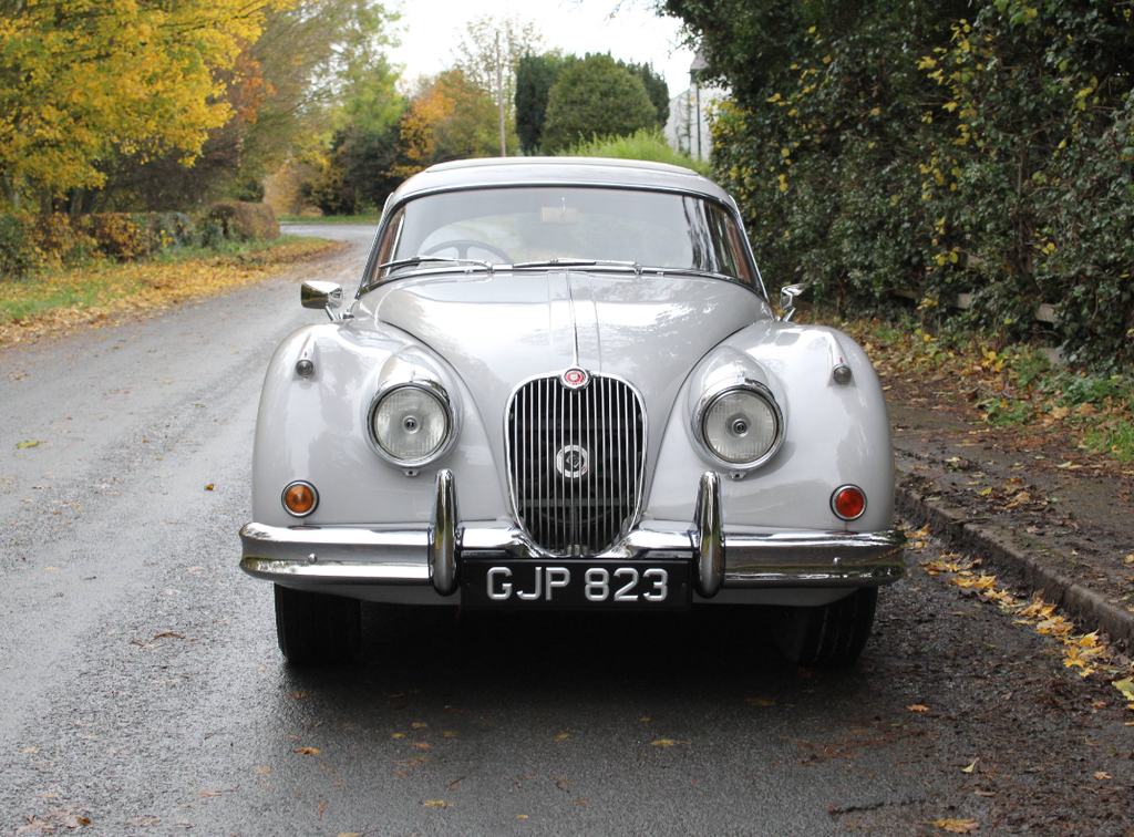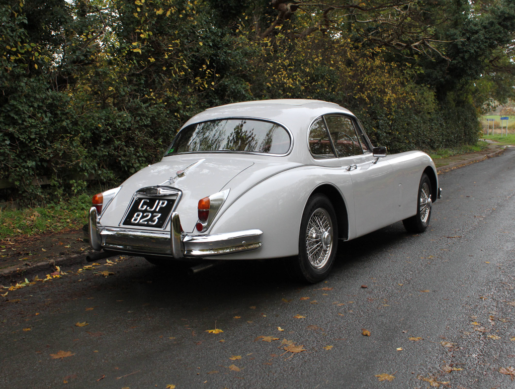 The Jaguar XK150, the final evolution of the legendary XK sports car line (1957–1961), received its largest powerplant in October 1959: the 3.8-litre version of the XK twin-cam straight-six. This bored-out engine (87 mm bore, 106 mm stroke, 3,781 cc) , developed form the 3.4, produced 220 hp in standard tune (twin SU HD6 carbs) giving the XK150 a top speed of over 130 mph, a power and top speed that embarrassed many contemporary exotics. This very late car was registered in Wigan on March 14th 1961, on the eve of the sensational launch of the E-Type Jaguar in Geneva the following day. Production of all XK150s ended in November 1960, with the very last 3.8-litre cars rolling off the Browns Lane line. These late examples were SE models with both overdrive and wire wheels. They are the most coveted XKs because they combine the widest, most modern XK body with a one-piece windscreen, thinner doors, more interior room, and four-wheel Dunlop disc brakes, a first for a production sports car. The last 3.8 XK150 wasn't just the end of a model, it was Jaguar waving goodbye to the 1950s with the 3.8 litre engine which would power the the E-Type already waiting in the wings when this car was brand new. Our beautiful Pearl grey example has the most wonderful original interior. It's rather a shame that a web description doesn't allow you to smell the originality! With just 94,000 miles from new, there's a great deal of history including some interesting correspondence from a previous owner in Cornwall. The car was bought by her father in the early 1970s, not as everyday transport but to add to a small classic car collection. At the time it had done 65,000 miles from new. Her father rebuilt the engine in the early 1980s, replaced the petrol tank and fitted a stainless-steel exhaust system. After subjecting the car to a satisfactory full RAC report, the next owner took the car to Shropshire where it remained for 19 years. Whilst in Shropshire, the car was regularly used, competing in many runs and rallies with fellow Jaguar enthusiasts and there are several rally plaques in the history file. There are many old MOTSs showing that it covered 28000 miles during that ownership. Always kept garaged when not in use, there's a good file of invoice showing regular upkeep and wax oiling. A new set of chrome wire wheels were fitted in 2007 along with the Kenlowe fan and battery isolator switch. The last owner, based York has owned the car for the last seven years. He commissioned our company, Malton Coachworks to repaint the car that year and has continued to improve the car with major rechroming work and other detailed improvement works, invoices for which are in the car's history file for inspection. Over £20,000 has been spent on this work. On the road, the car performs well, with a lusty growl for the 3.8 engine. It has an excellent Moss gearbox, a smooth overdrive and a quite rear axle. It really is a lot of fun to drive. This is the first XK we've had for many years which still has its original seats, carpets and headlining. Whilst not perfect, the patina of the interior is just irreplaceable. The period coach built fabric sunroof is a great bonus on a fixed-head coupe, prefect for semi-open summer motoring. The car comes complete with service manual and a substantial maintenance record.